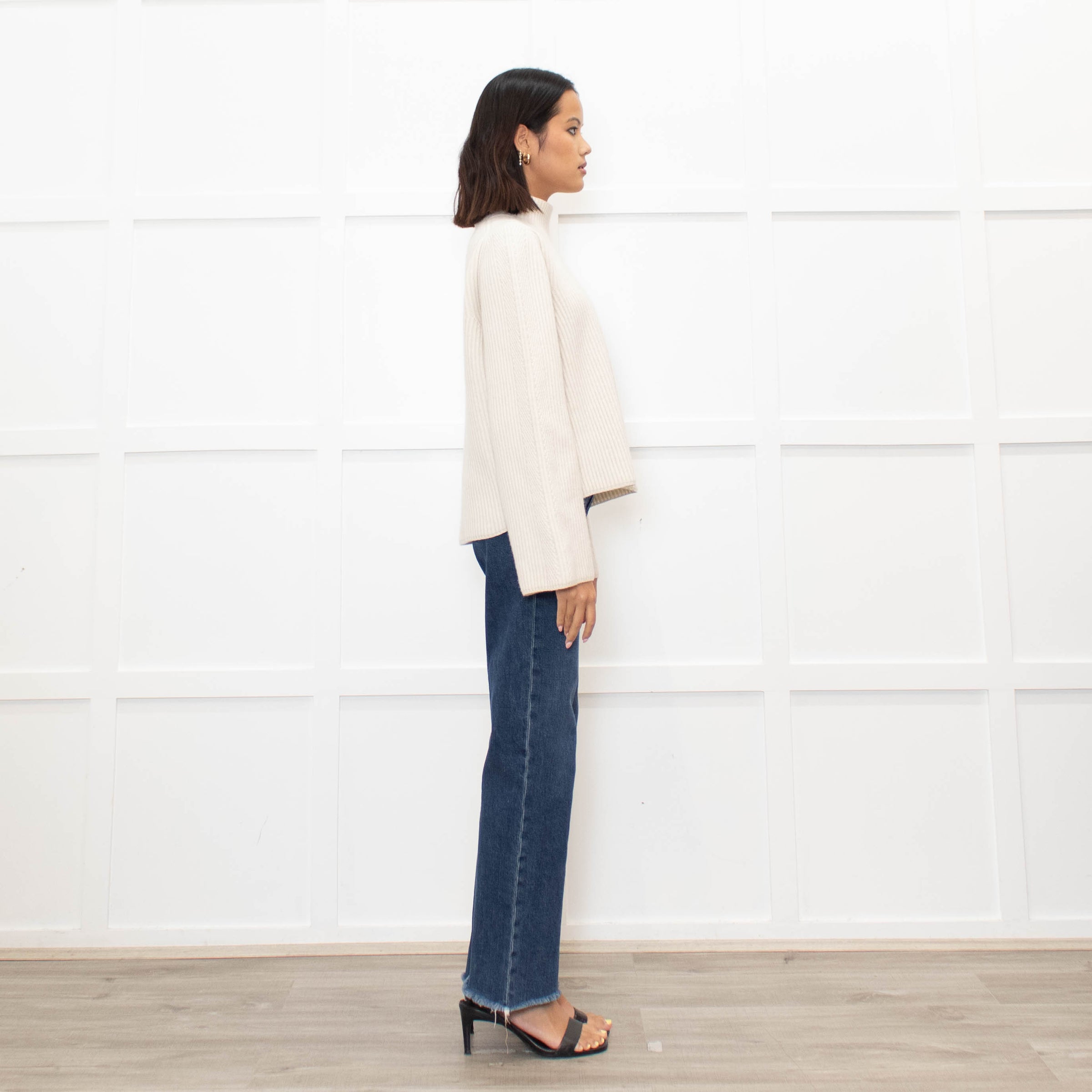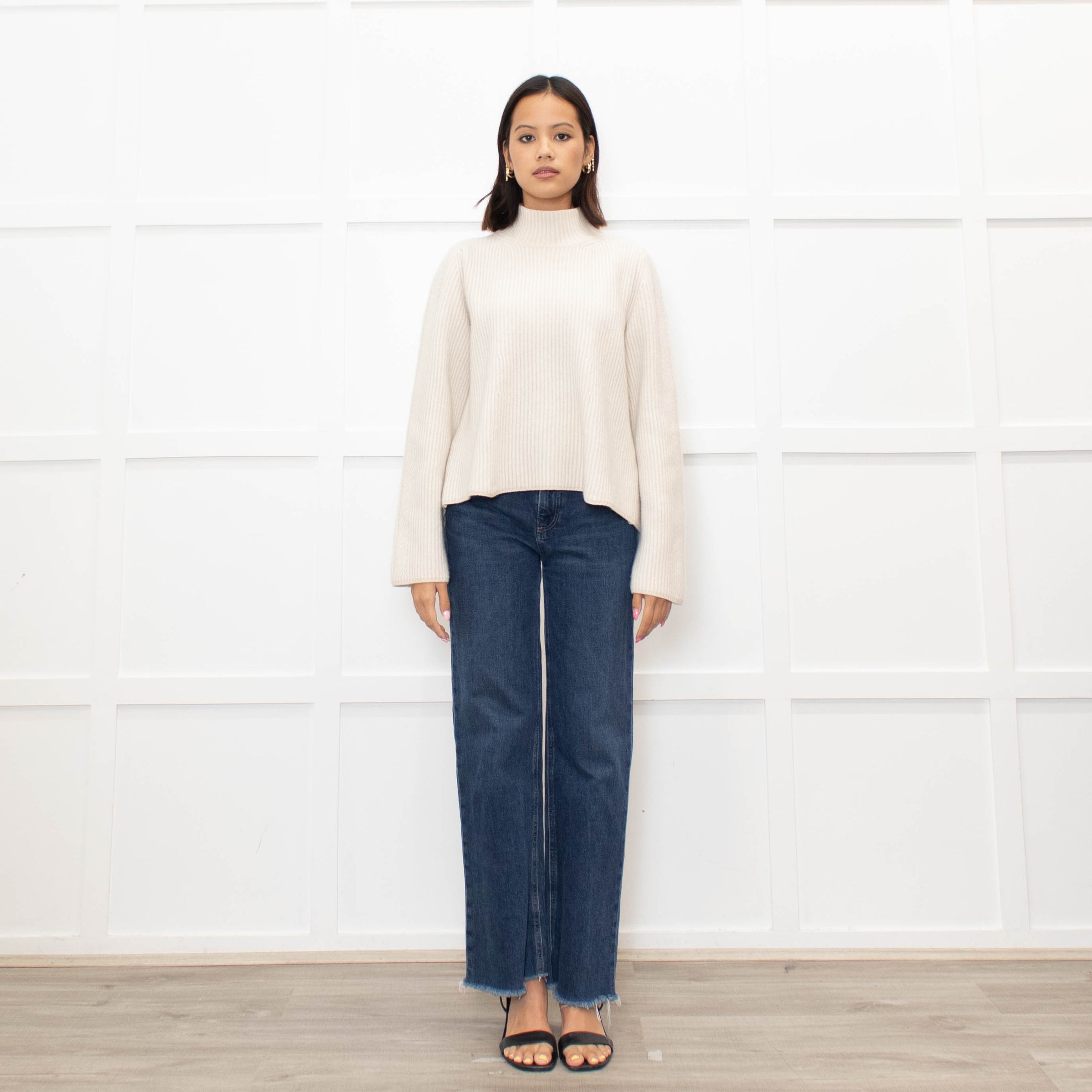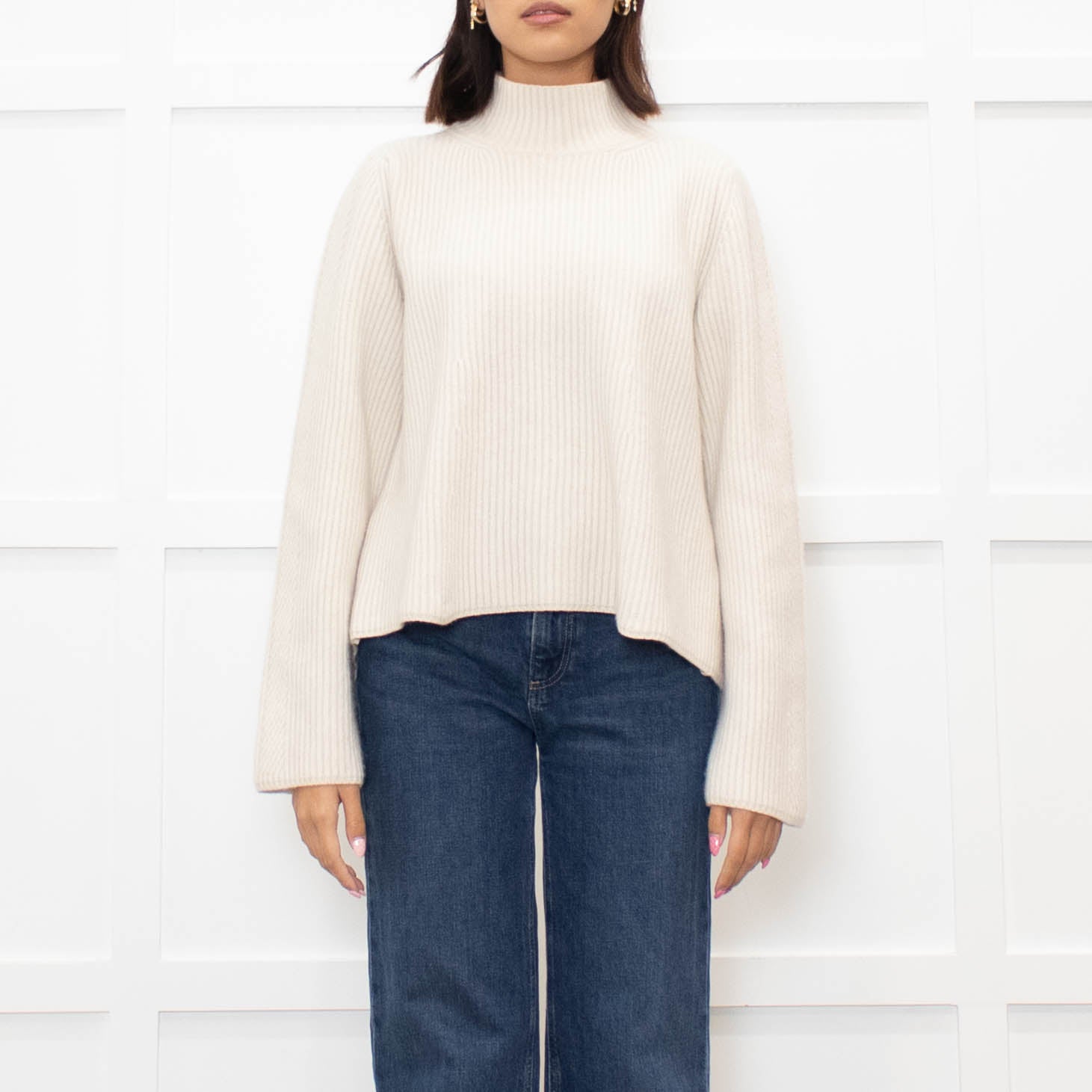 Me + Em cream chunky rib knit jumper with wide sleeve cuffs and a high-neck.