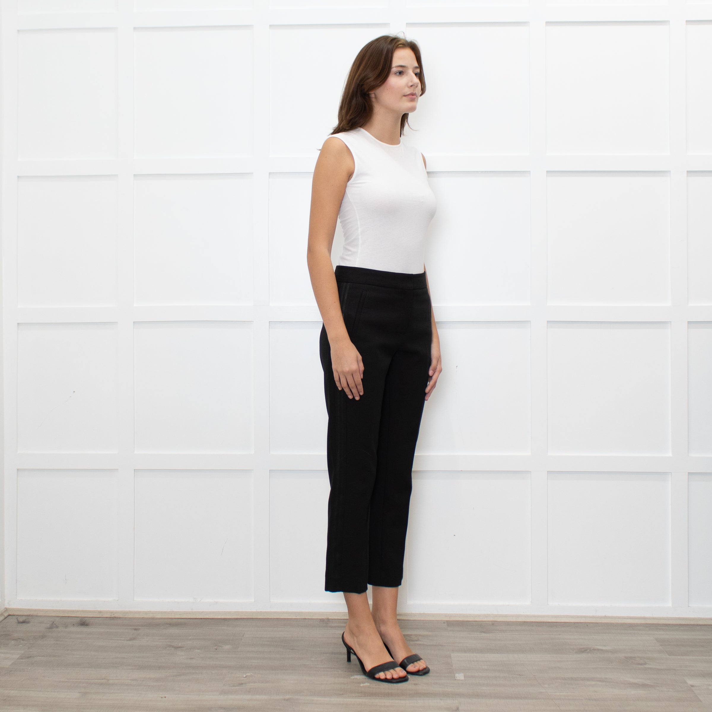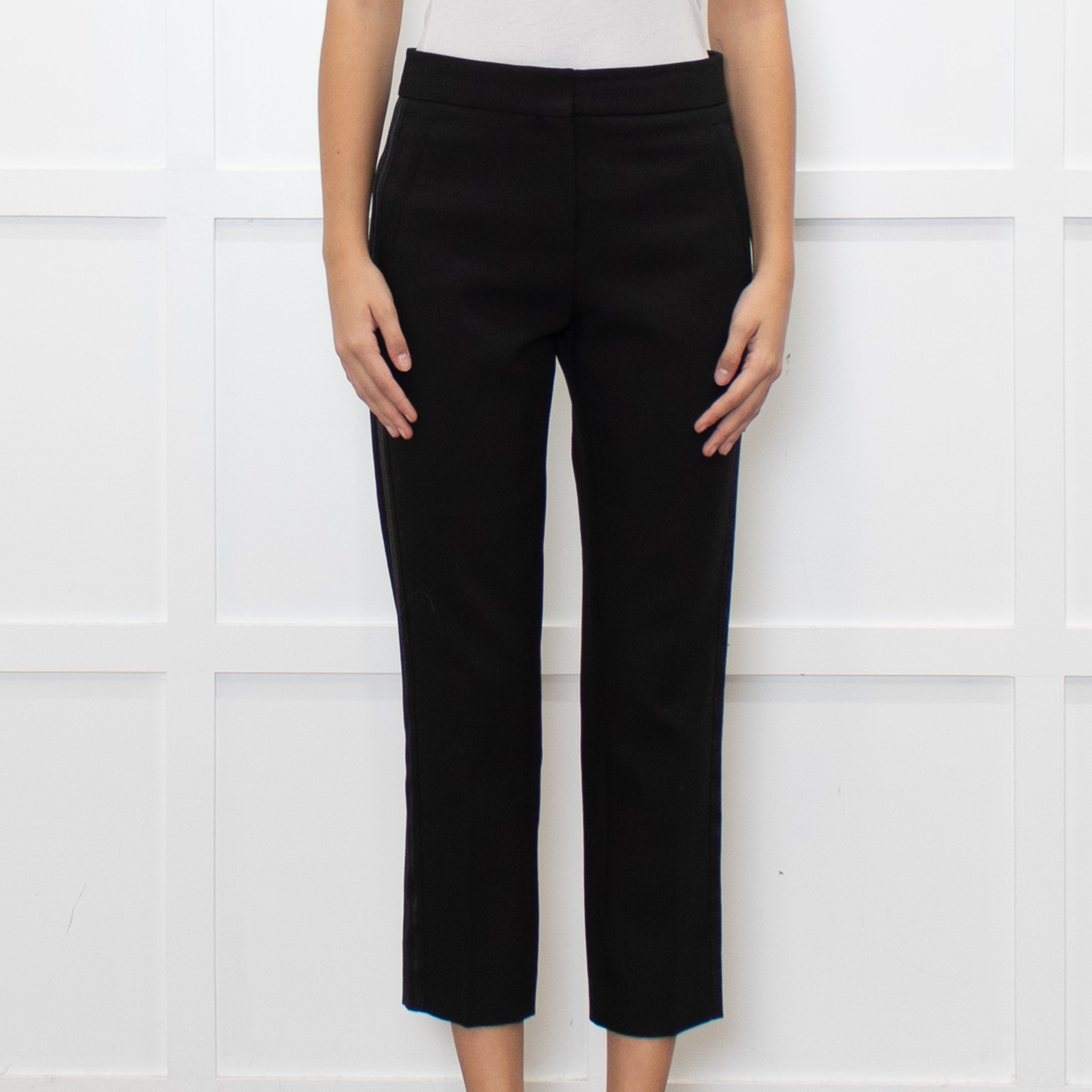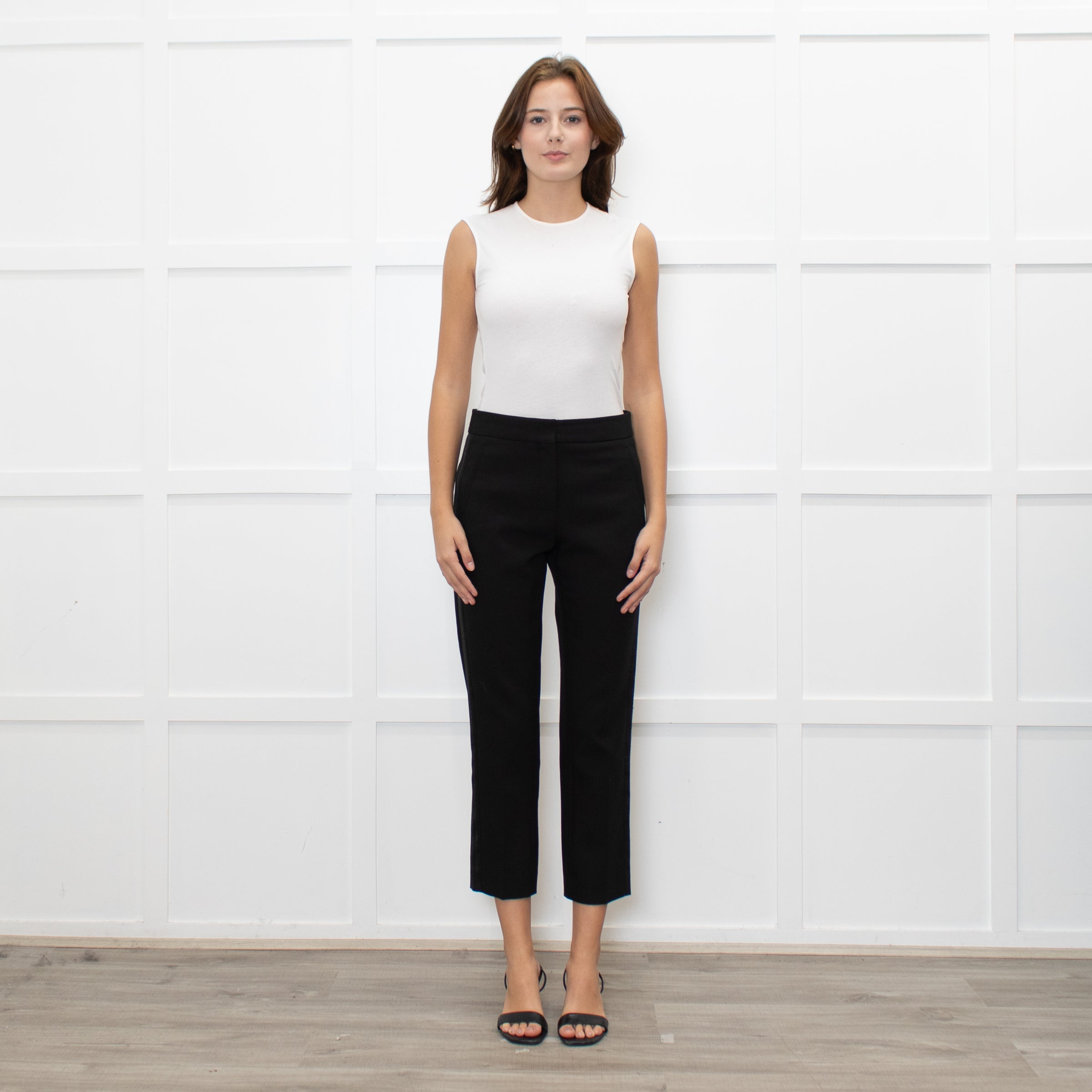 Me + Em black stretch cigarette style trousers with a side strip detail, a tailored waistband, two side slip pockets, and two rear slip pockets (not functional).