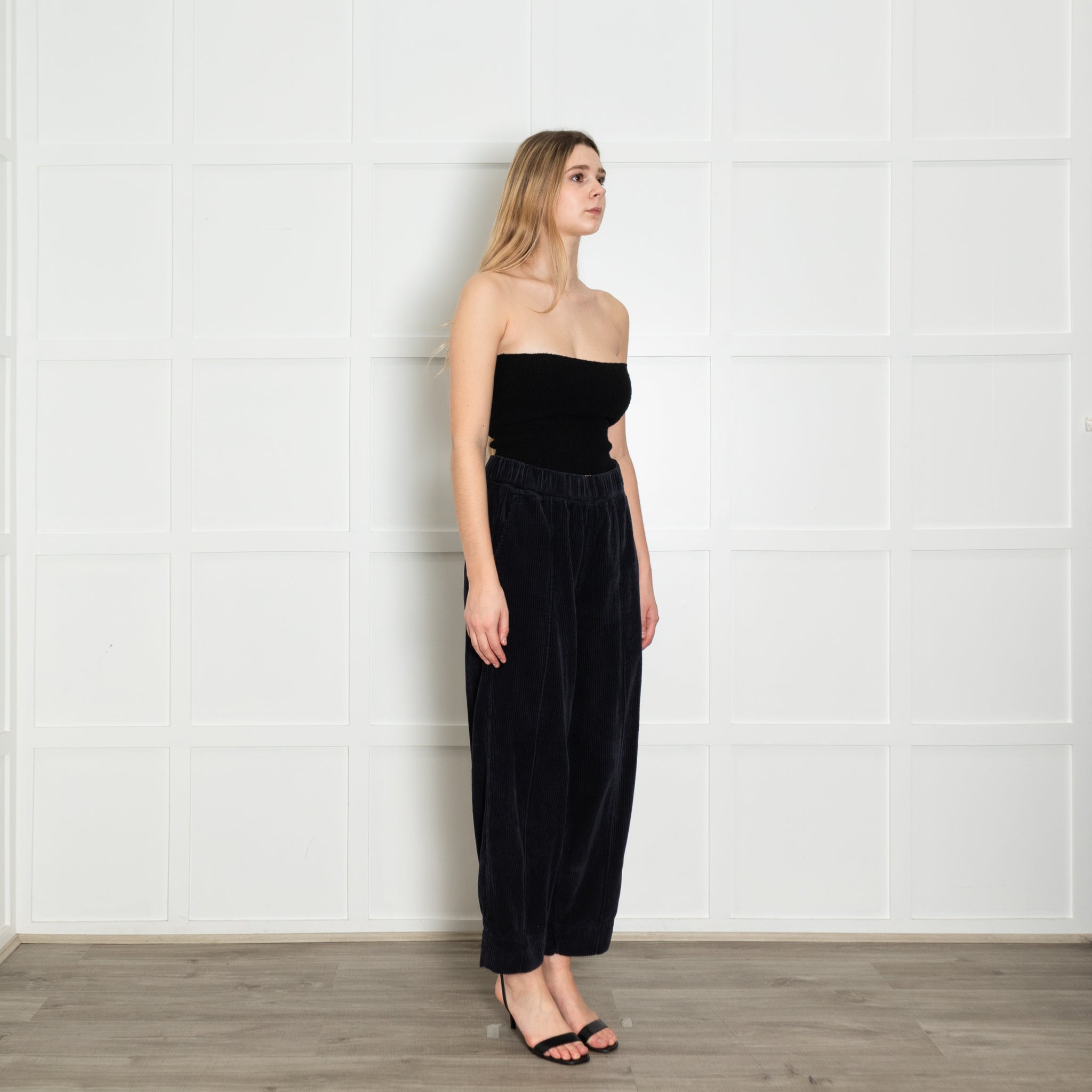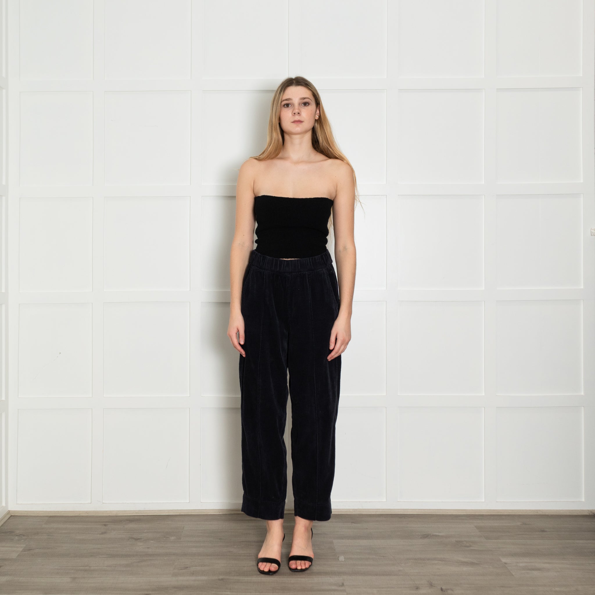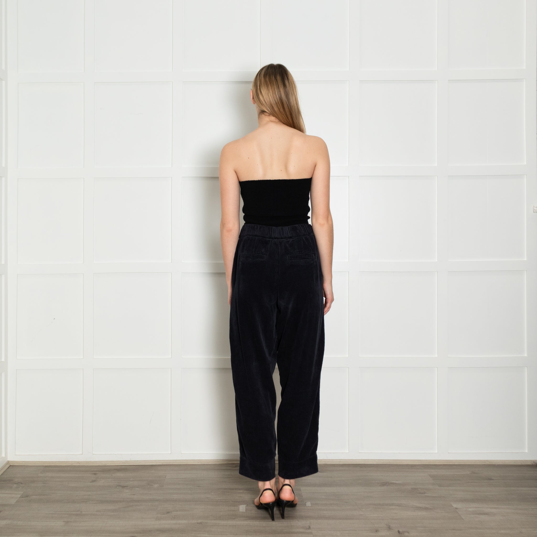 Me+Em straight-leg navy corduroy trousers with an elasticated waist.