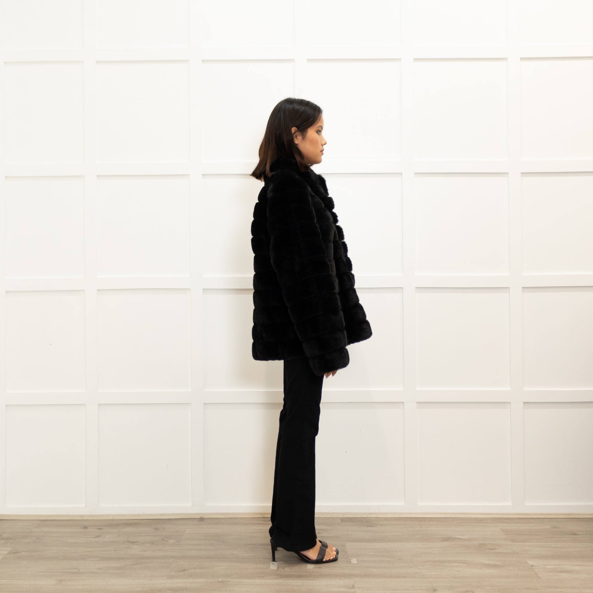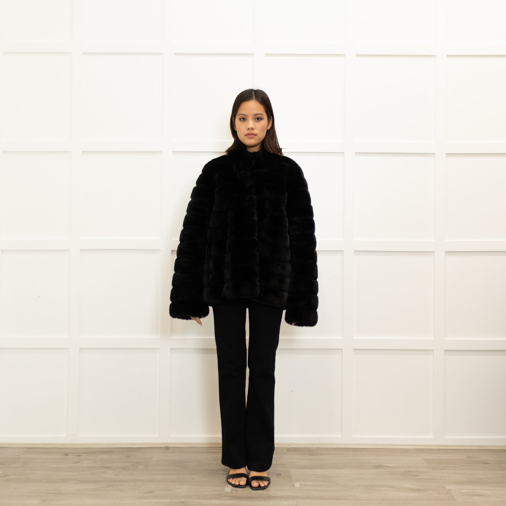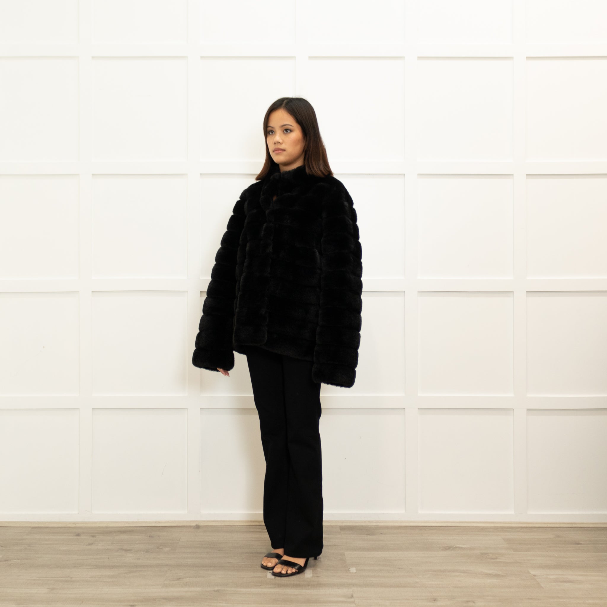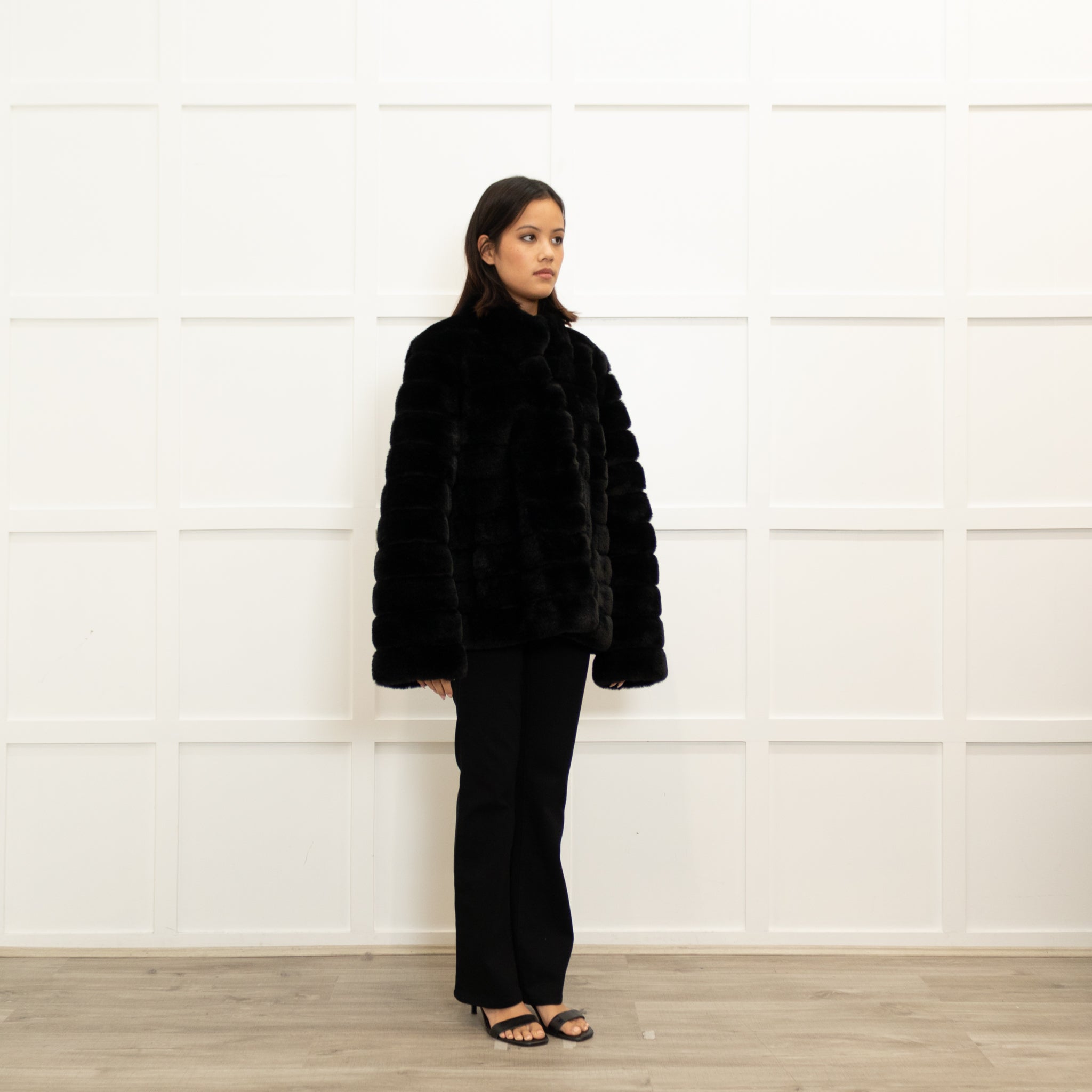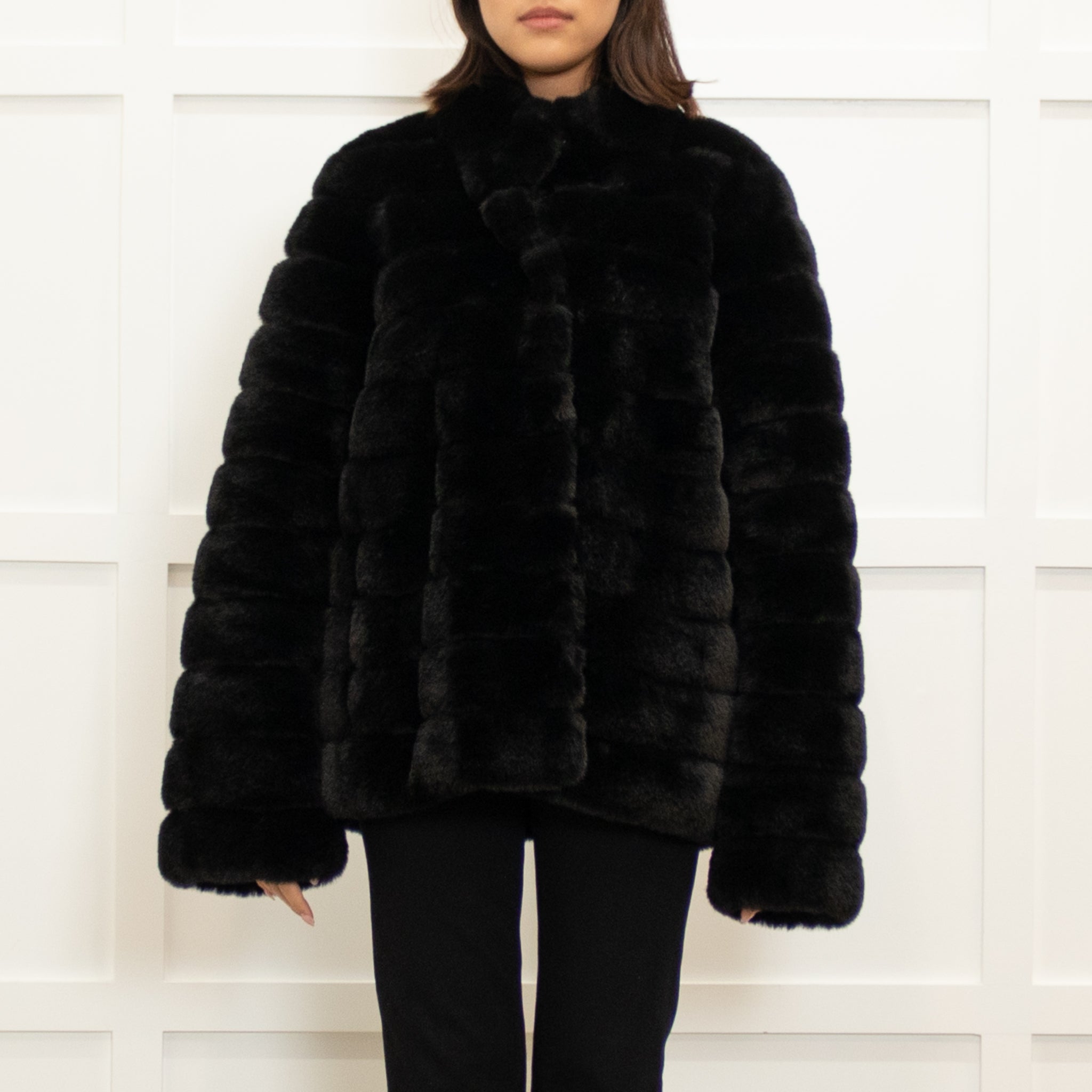 Michael By Michael Kors stunning black jacket, featuring a gorgeous ribbed faux fur with a press-stud button-up.