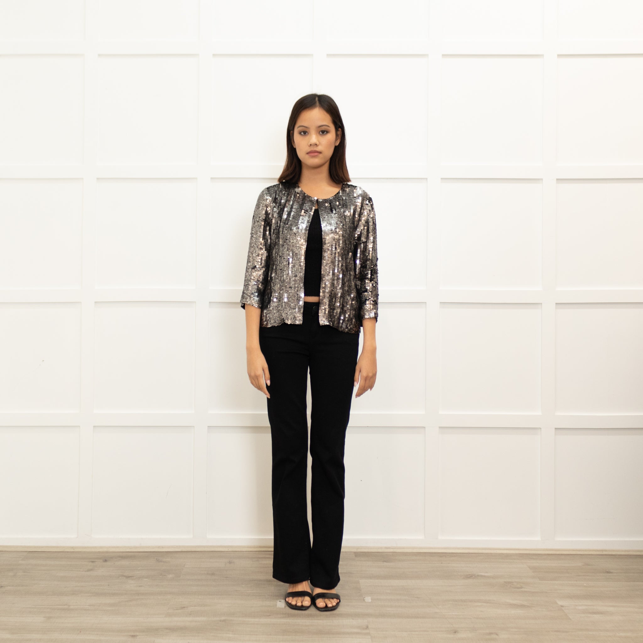 Milly Silver Sequin 3/4 Sleeve Jacket