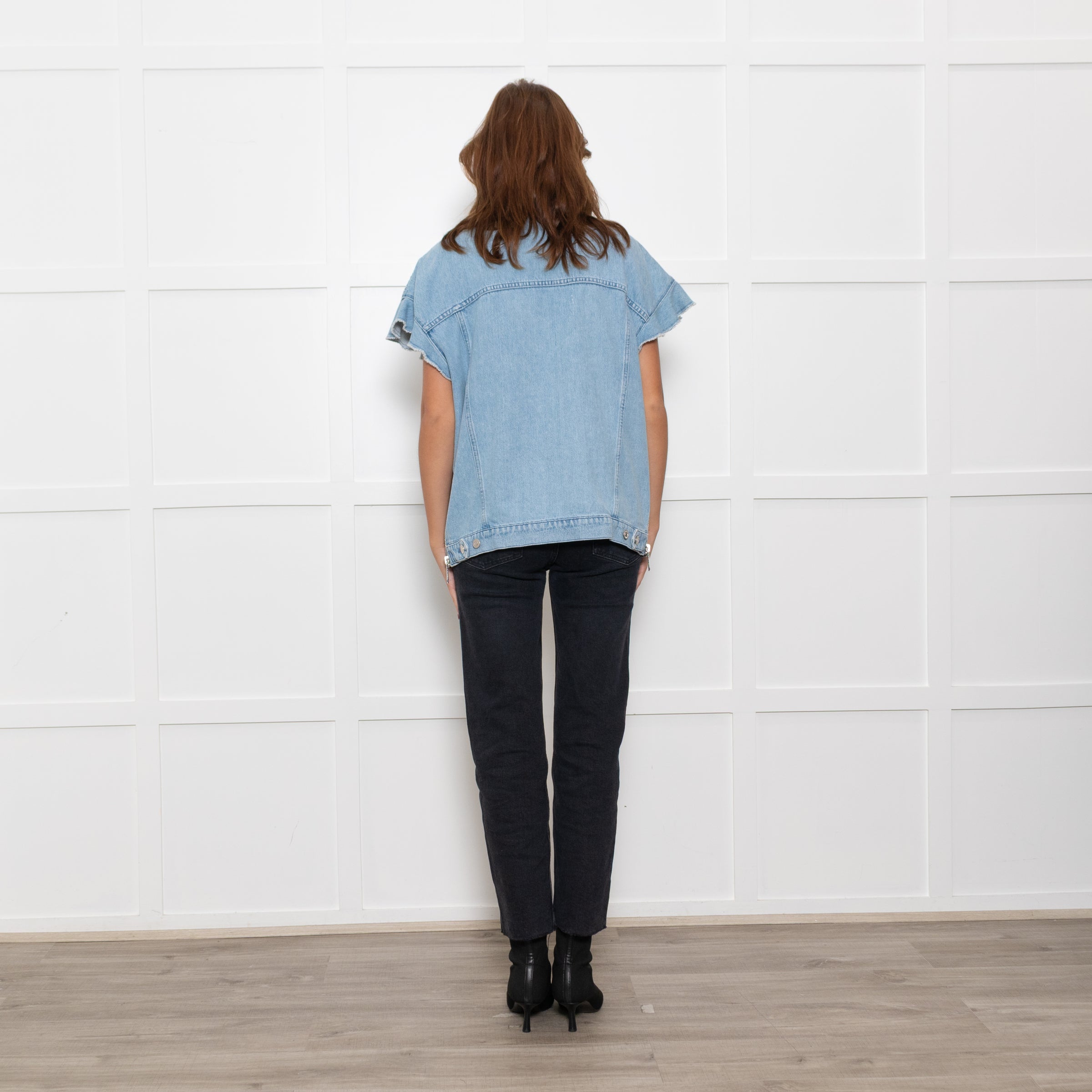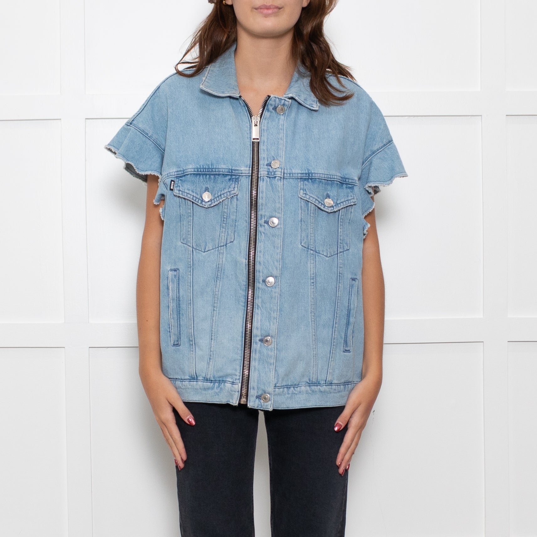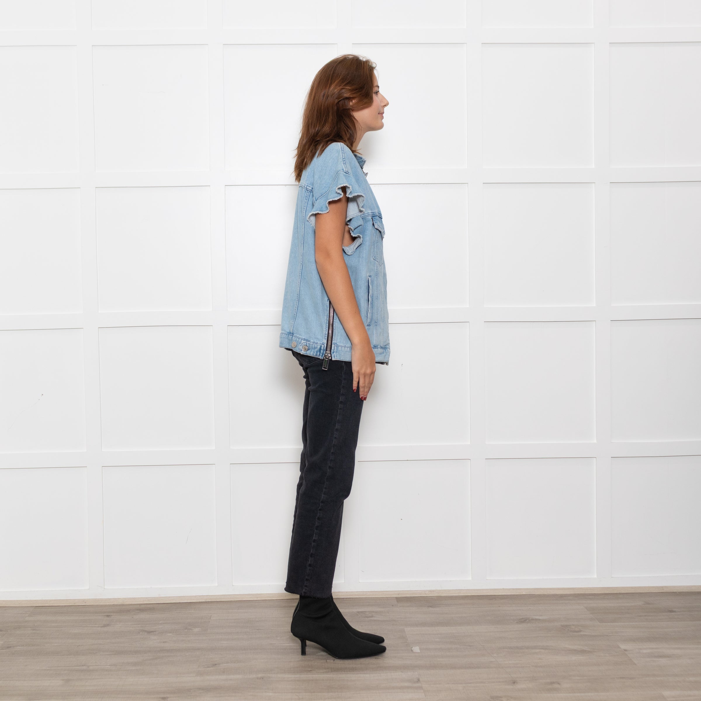 MSGM Milano Blue Denim Ruffle Sleeve Jacket