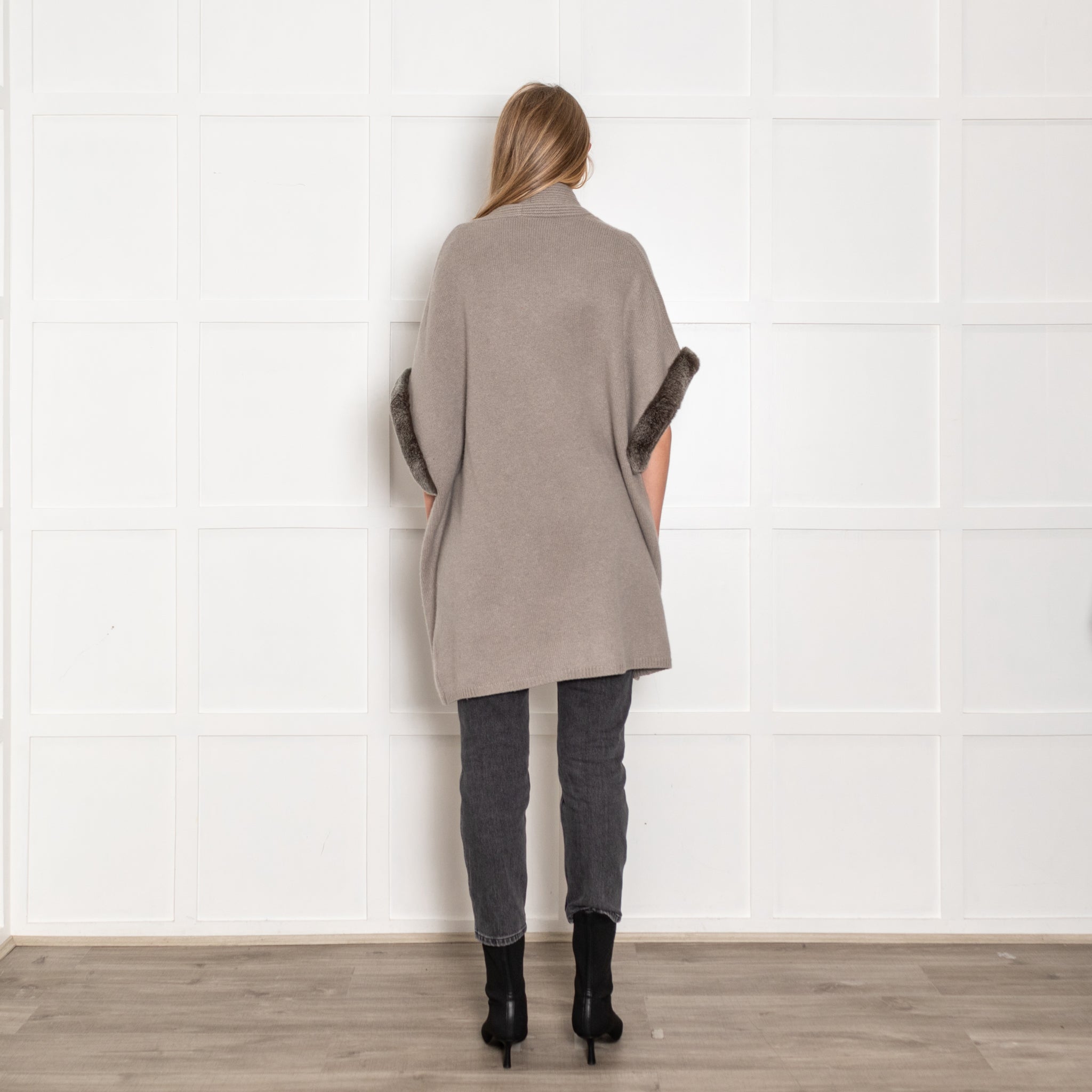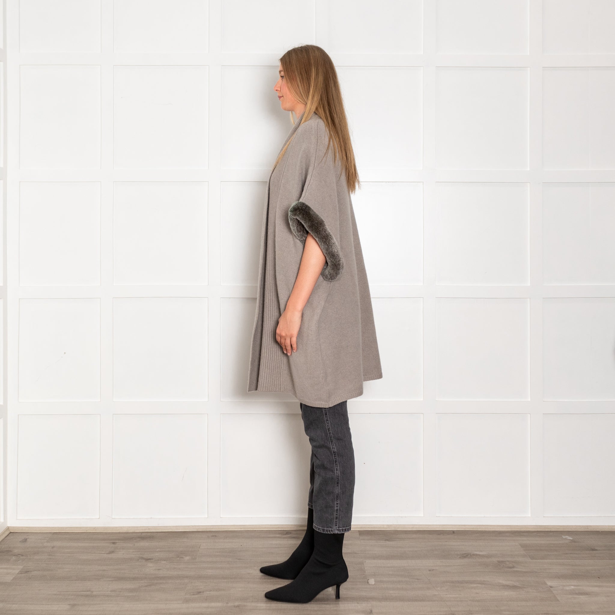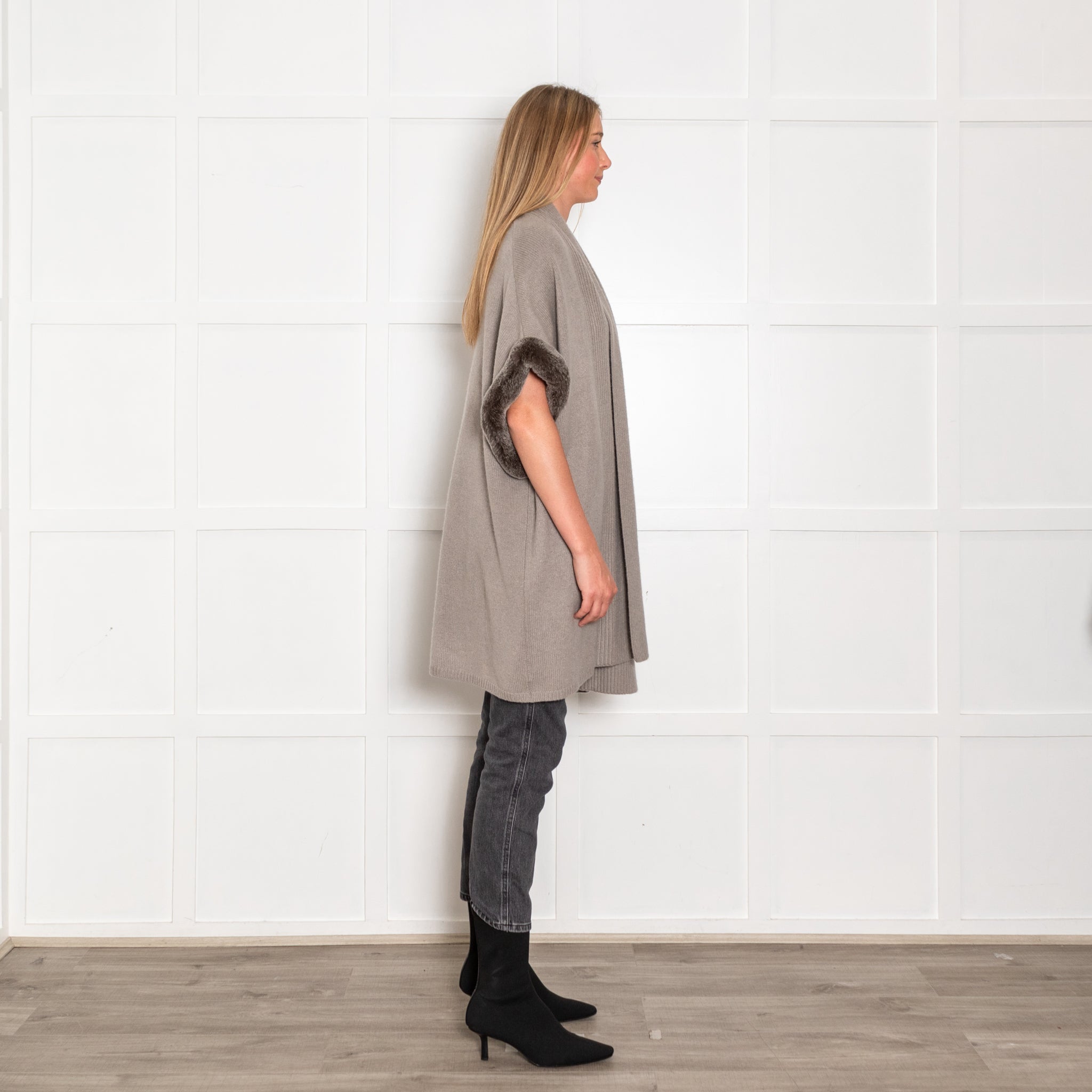 N.Peal Taupe Grey Cashmere Rabbit Fur Trim Sleeveless Cardigan