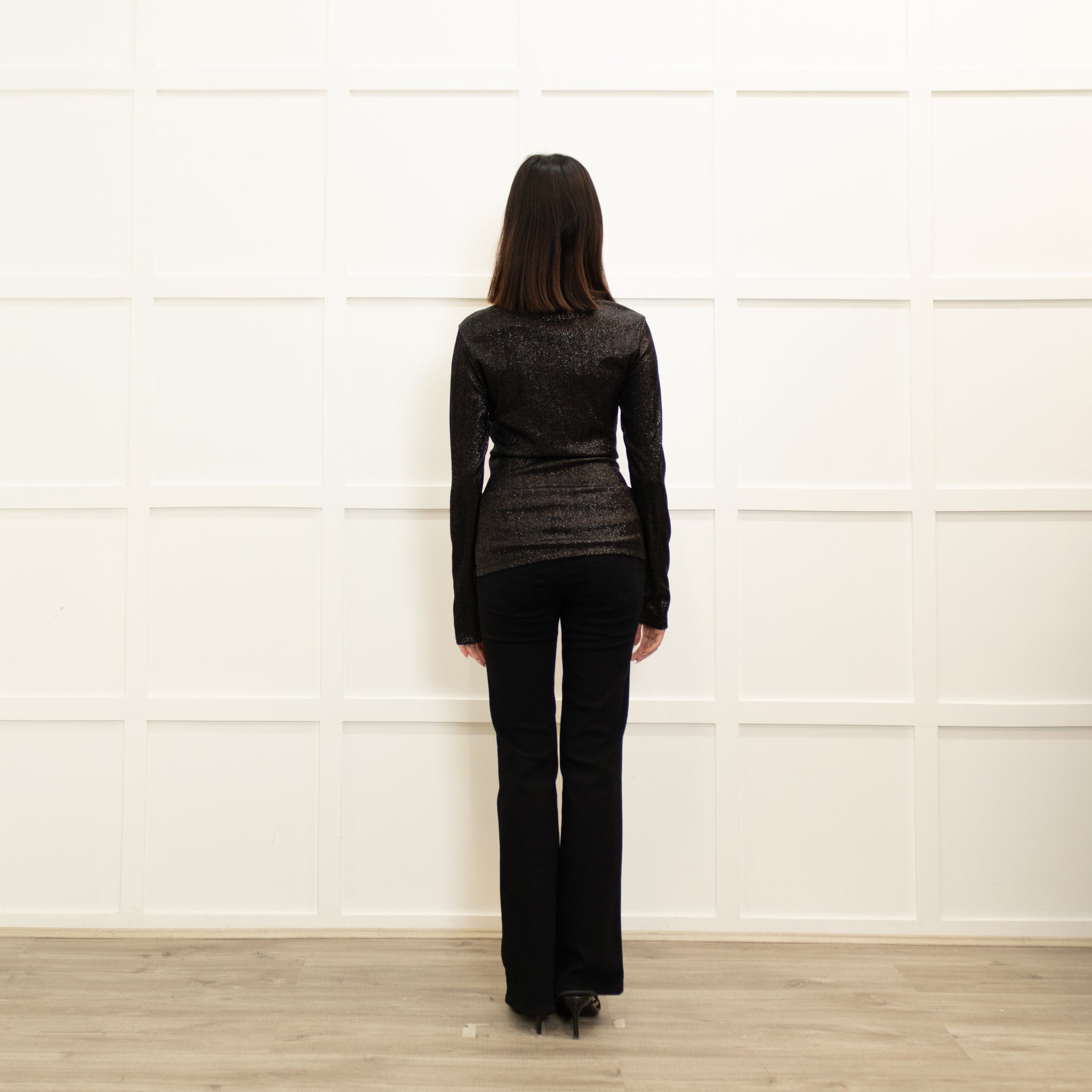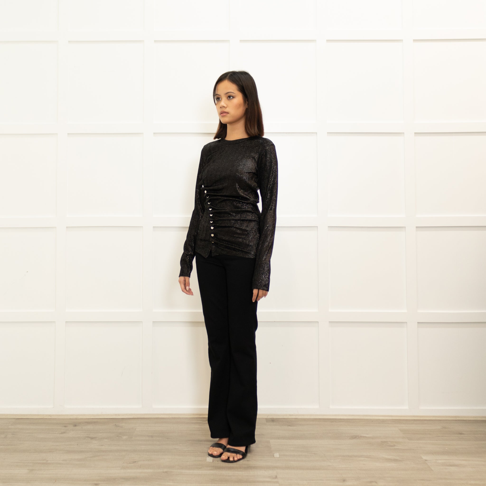 Paco Rabanne Black Shimmer Lurex Long Sleeve Button Detail Top