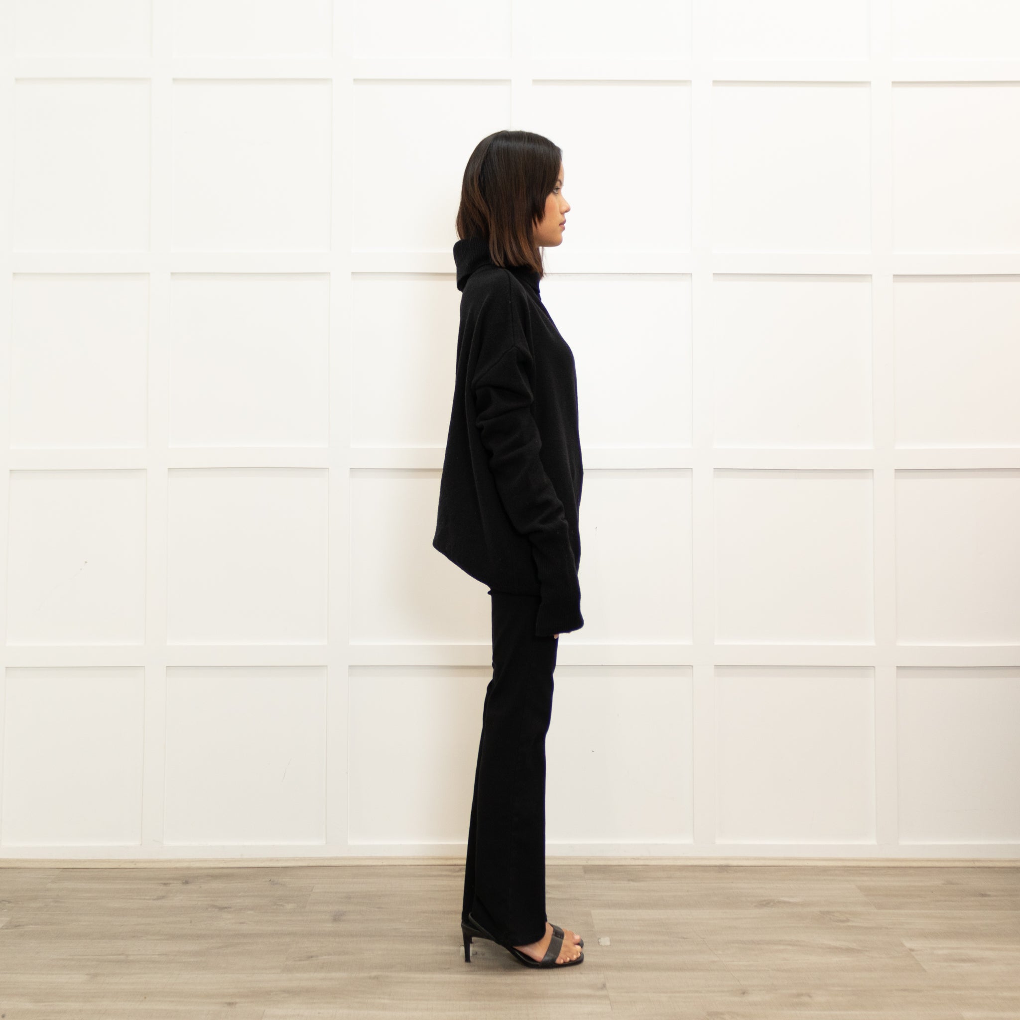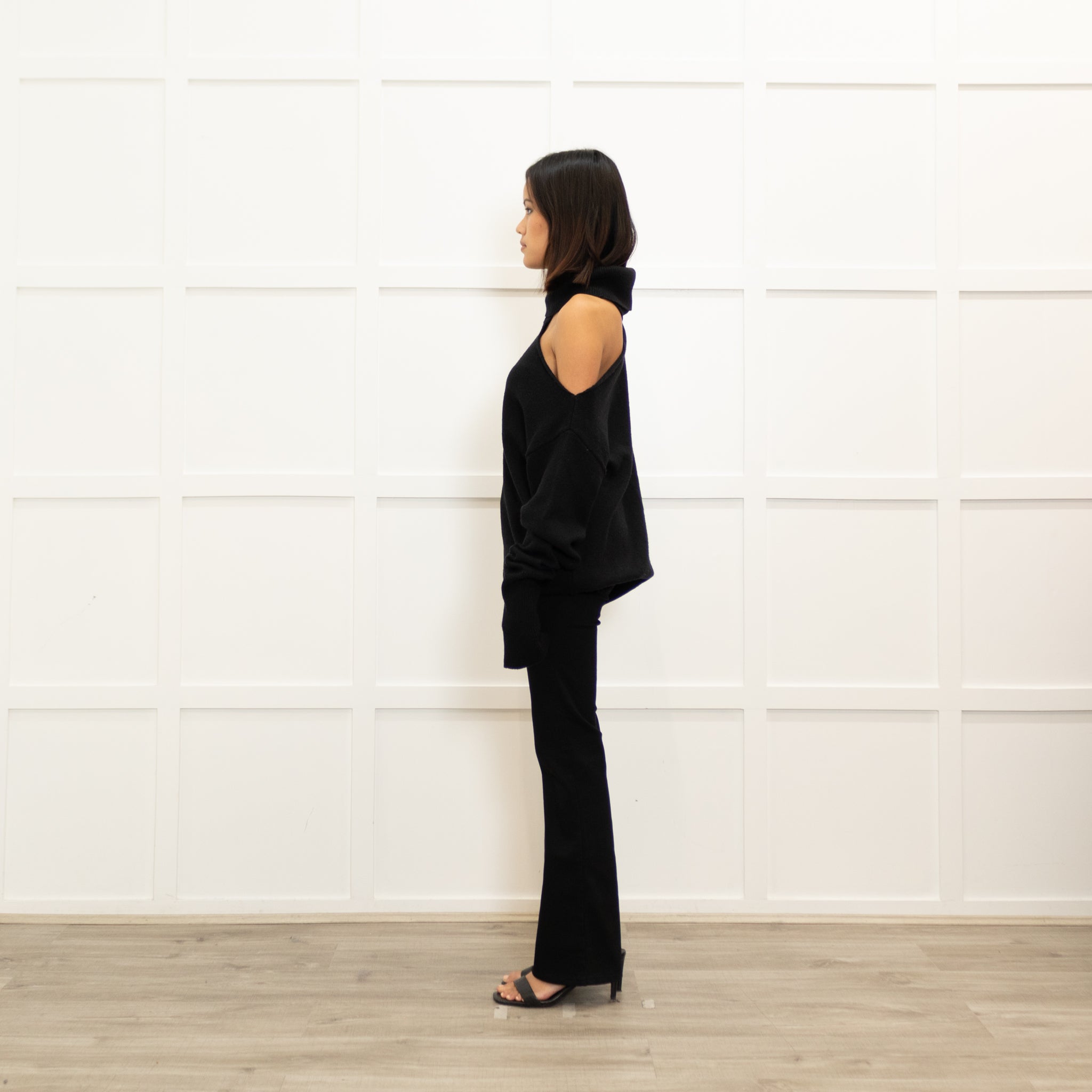 Paige Black Wool Blend Open Shoulder Oversized Rollneck