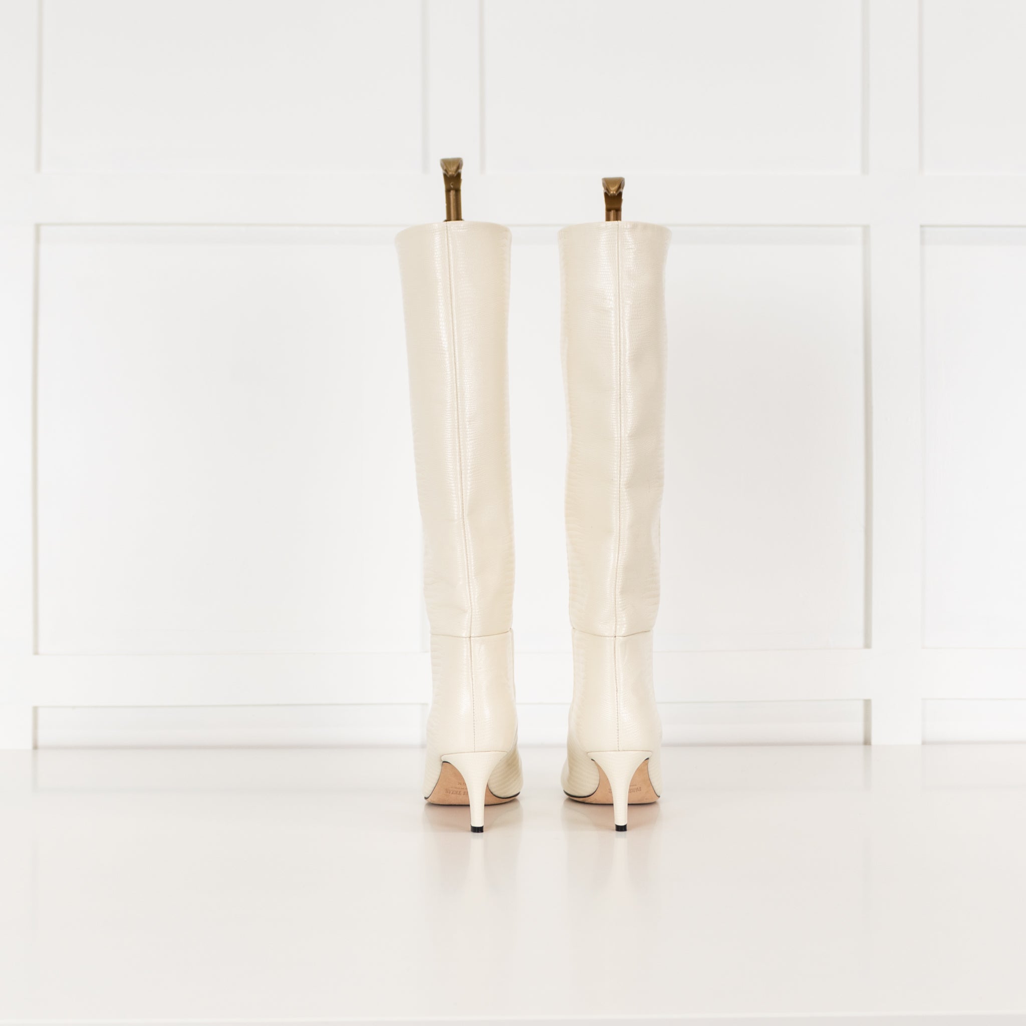 Paris Texas tall white boots, featuring a stunning leather mock snake design print, with a 6.5cm heel.
