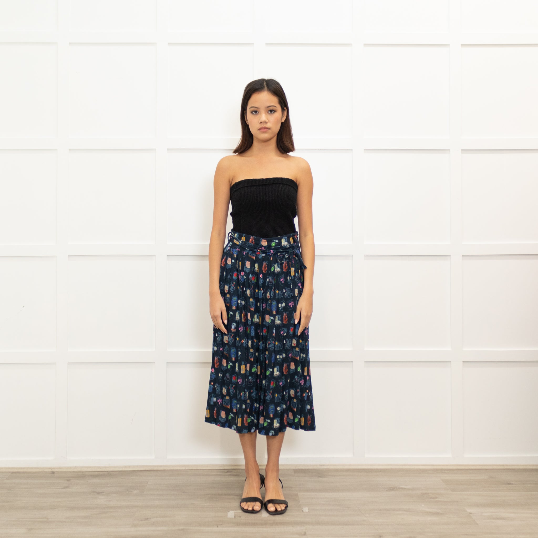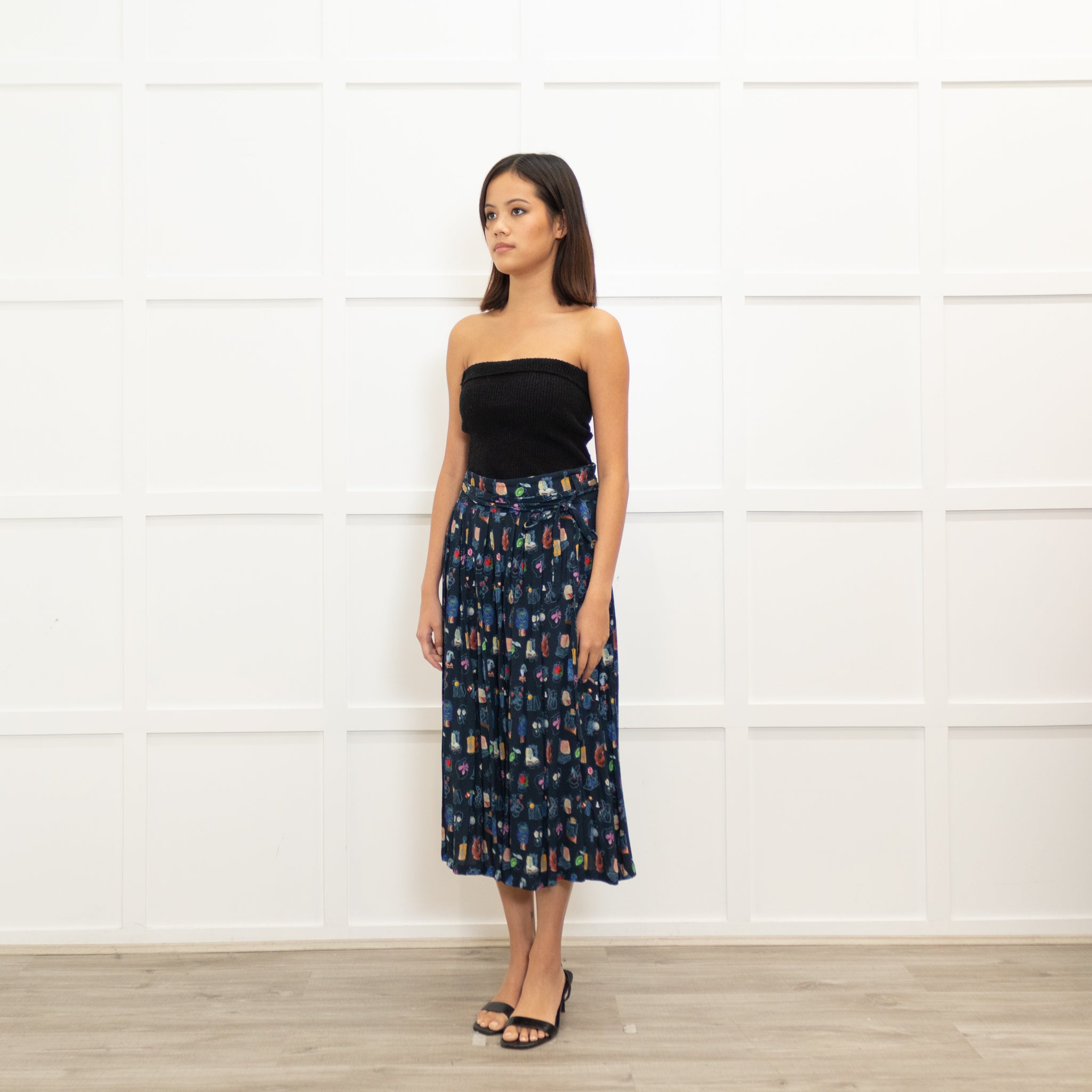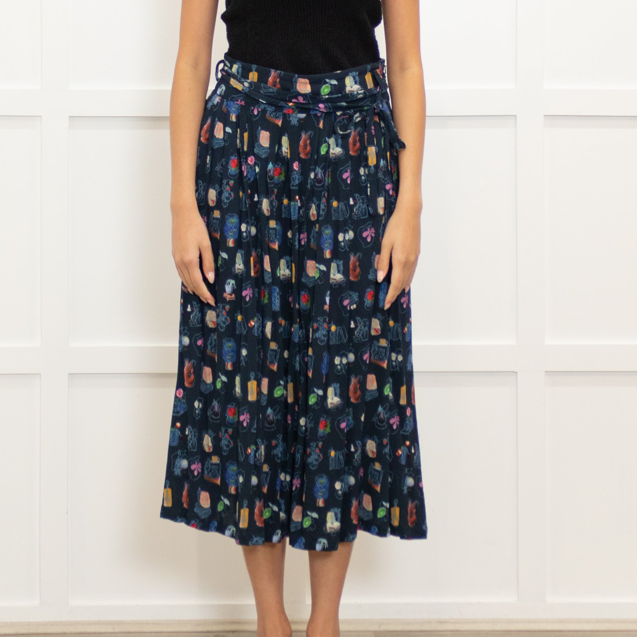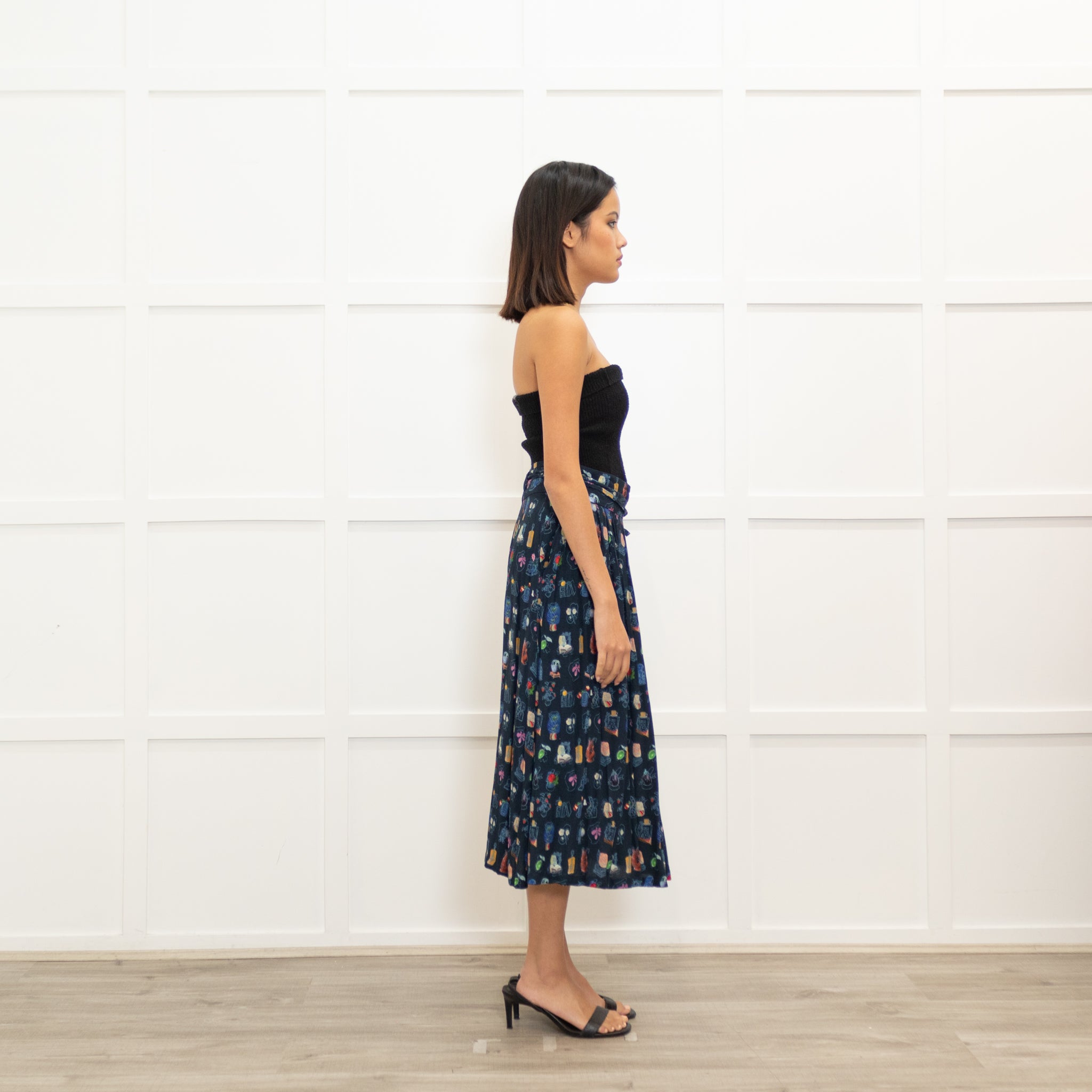 Paul Smith blue hand-drawn motif midi skirt with a matching waist tie.