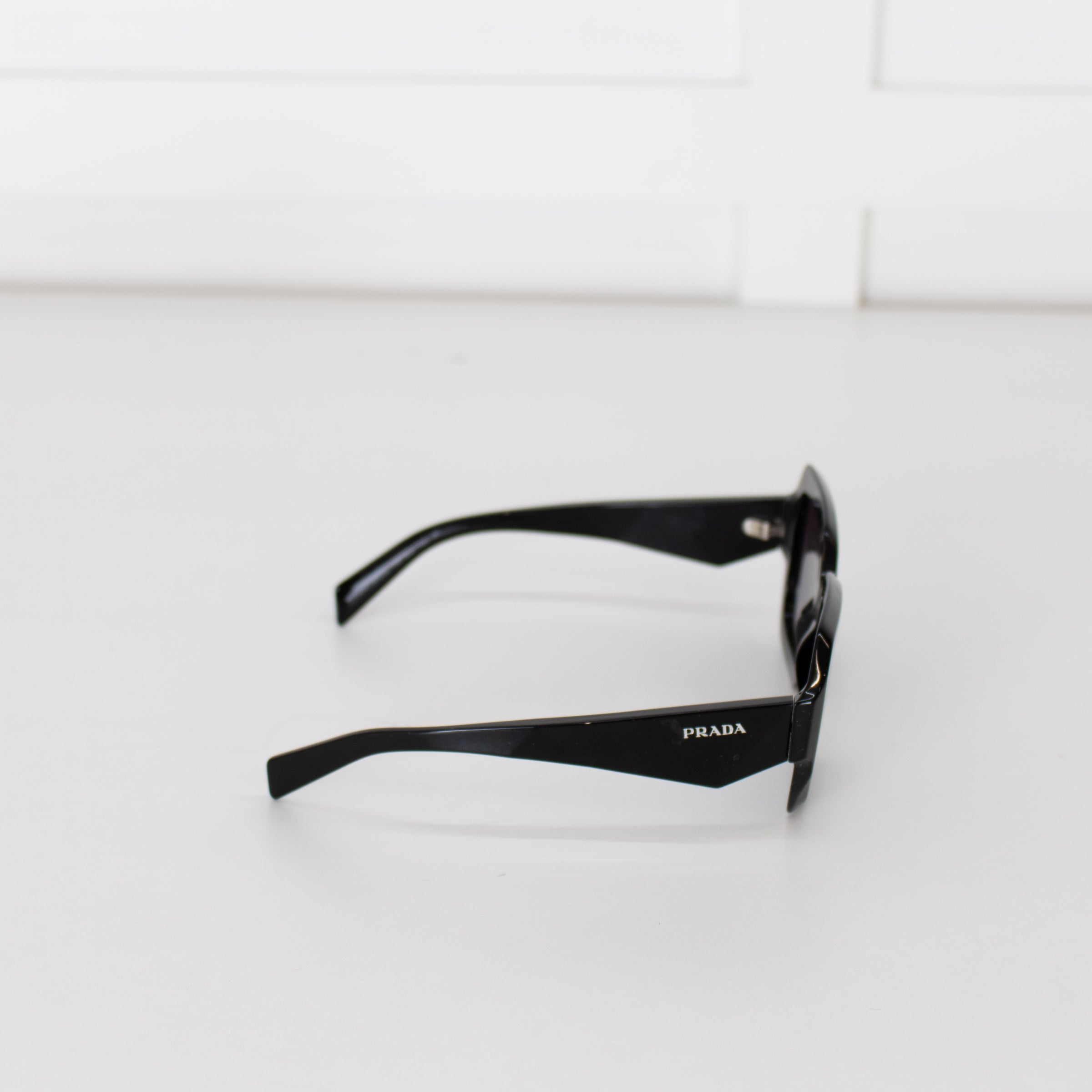Prada black acetate oversized square sunglasses with logo embellishment on the arms.