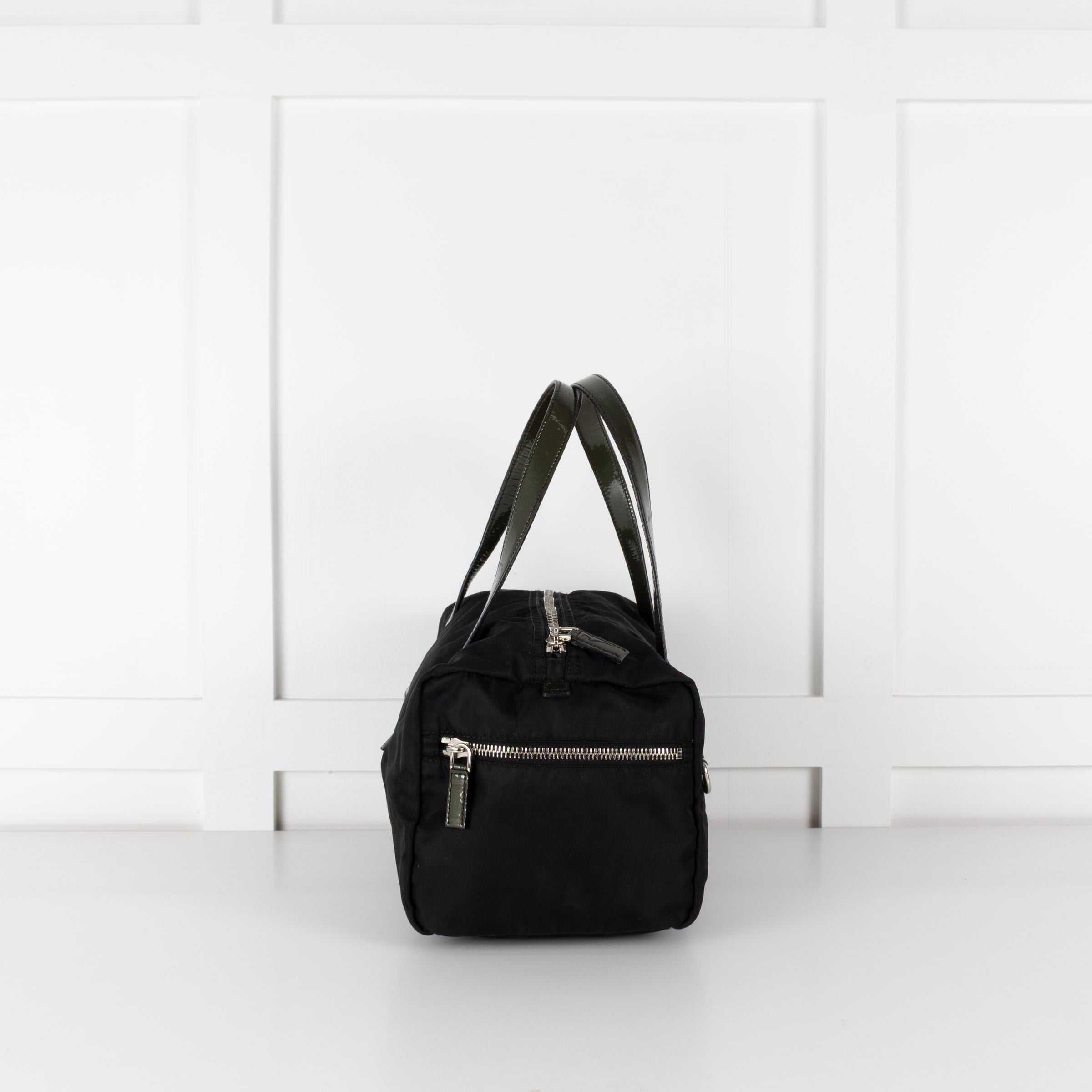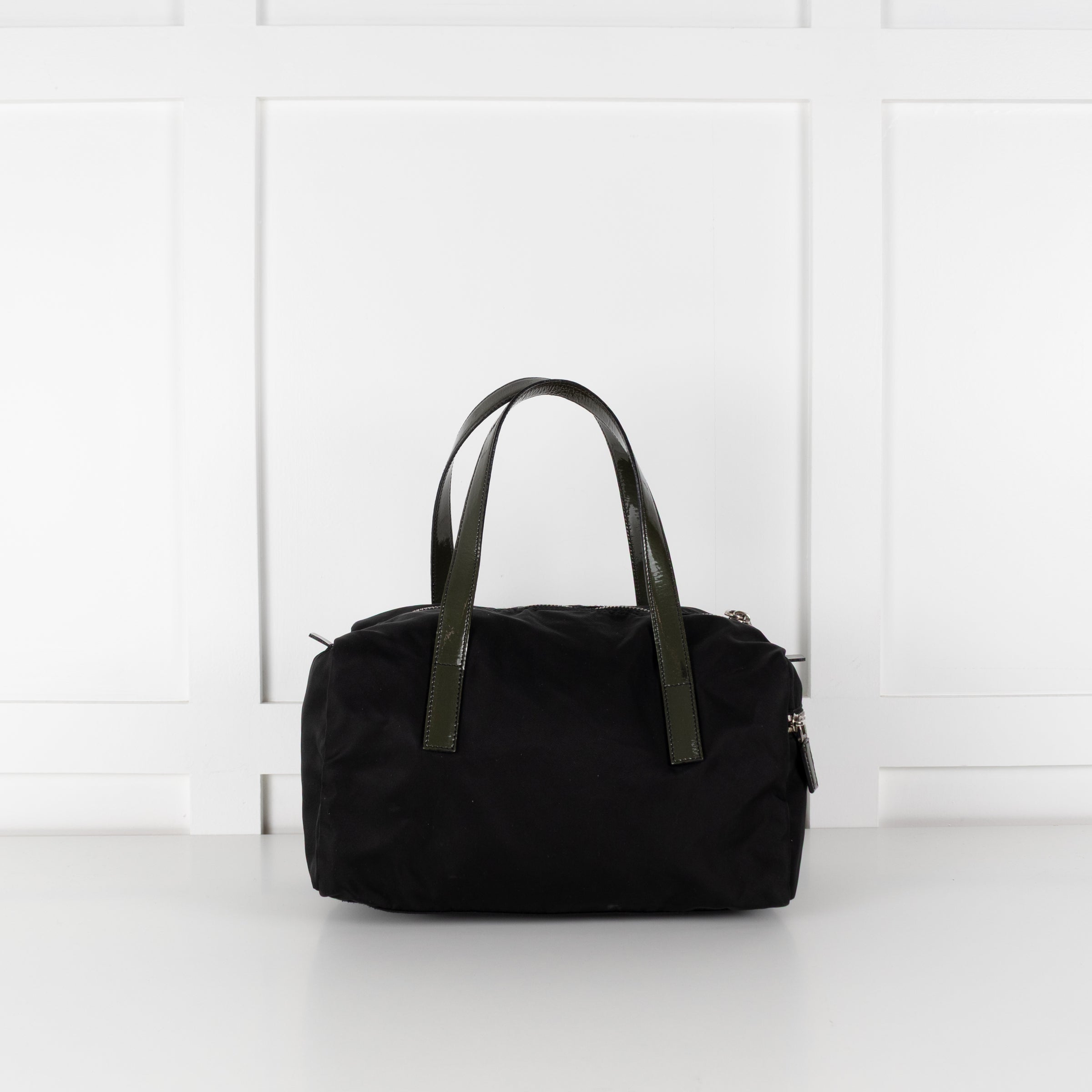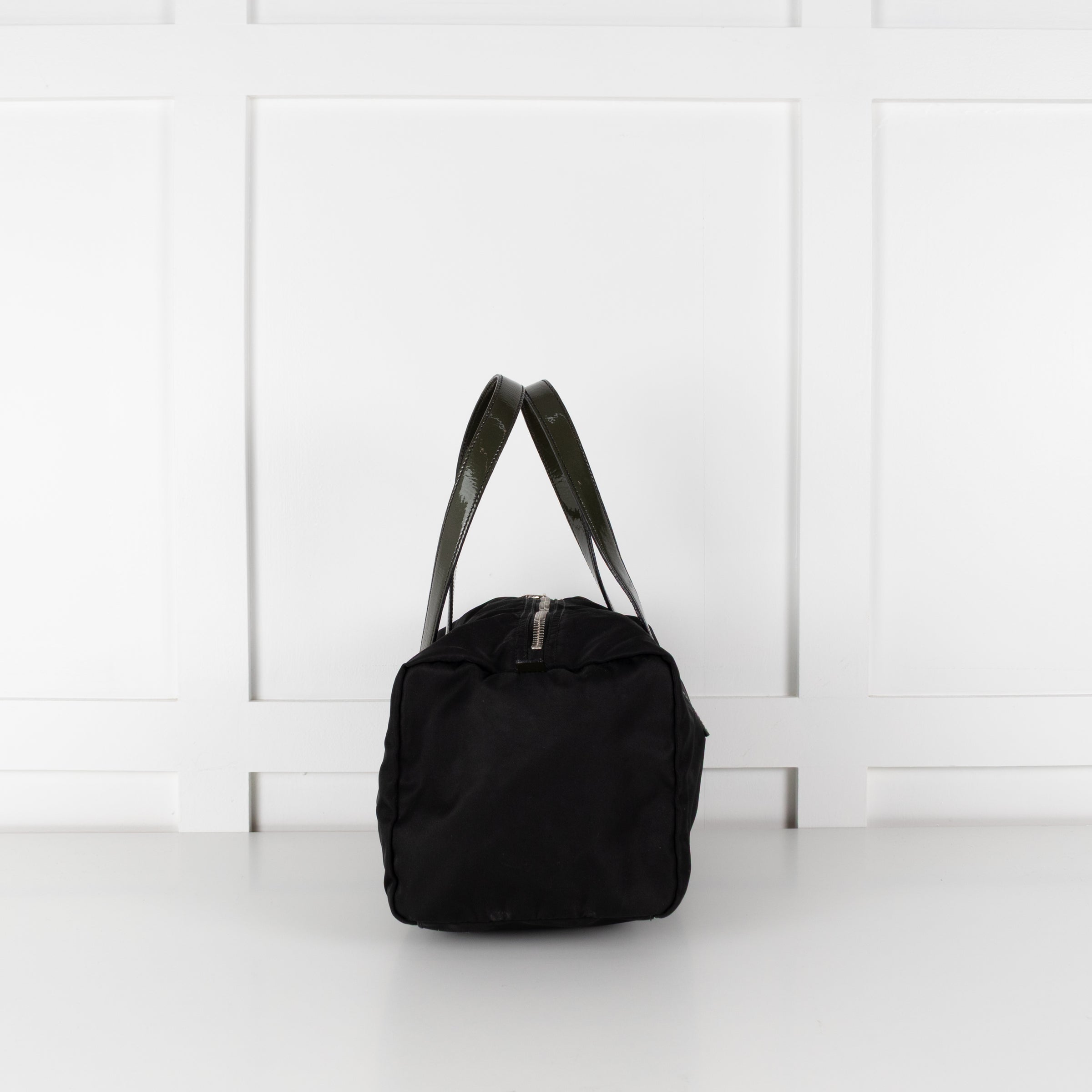 Prada Black Boston Nylon With Green Patent Leather Handles Mini Bag