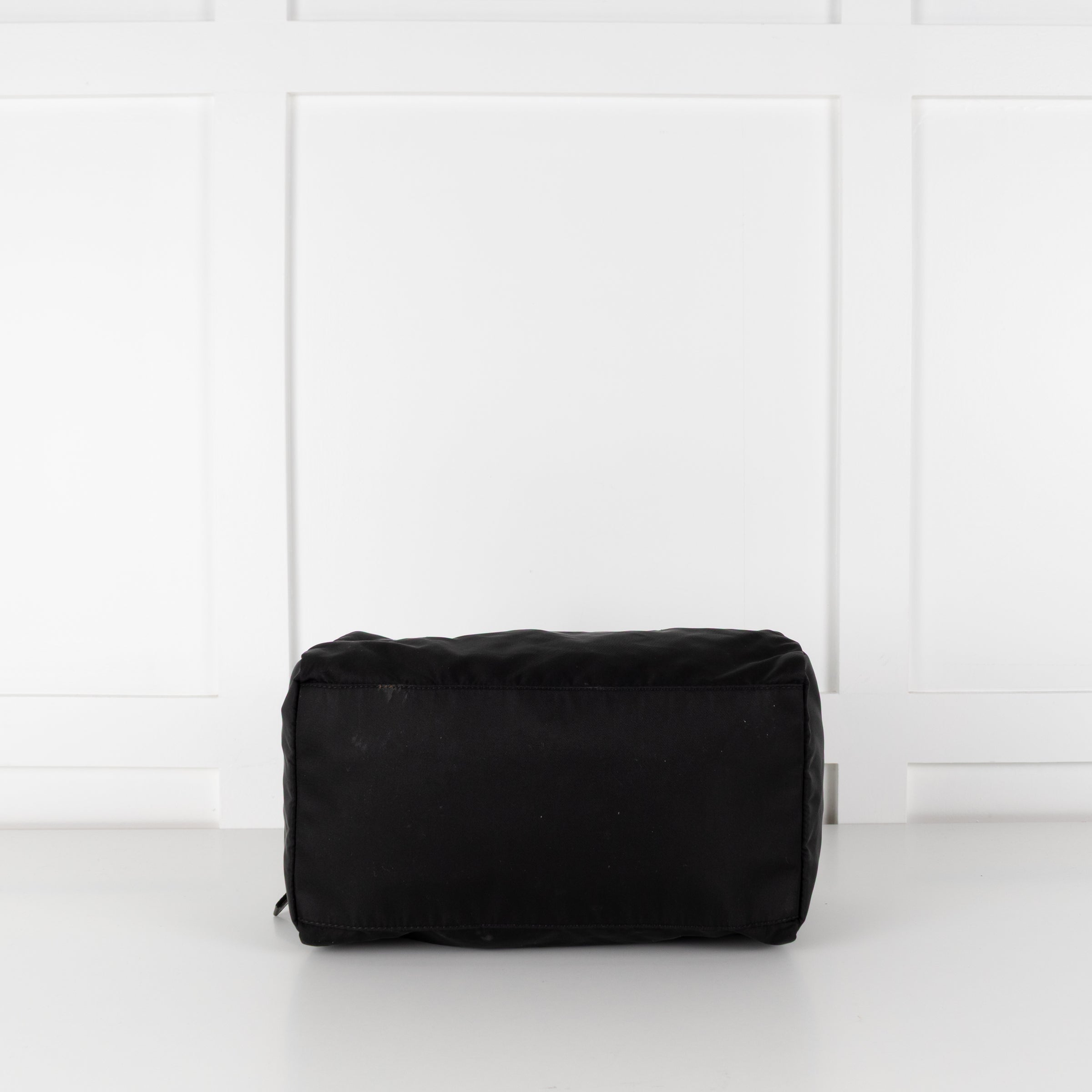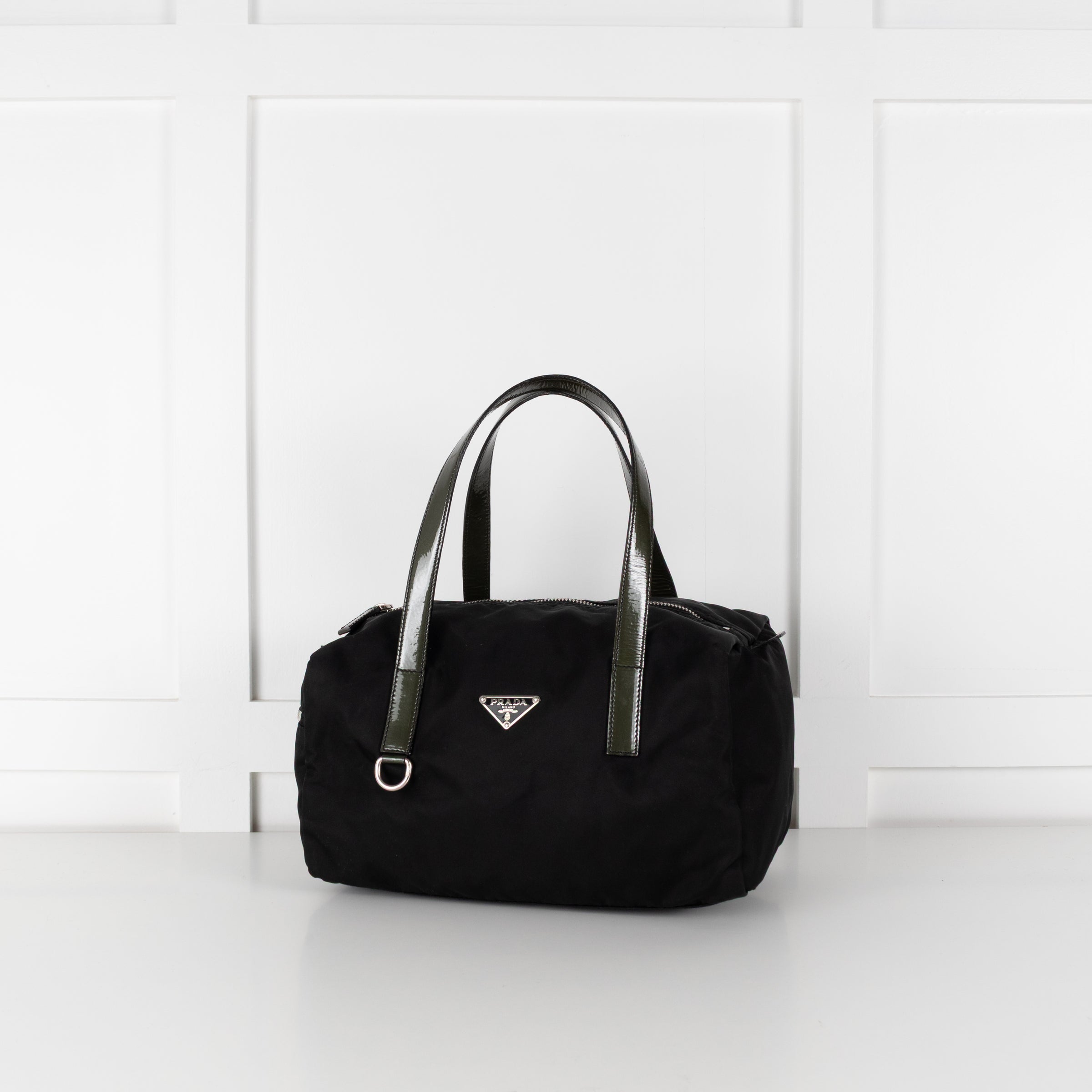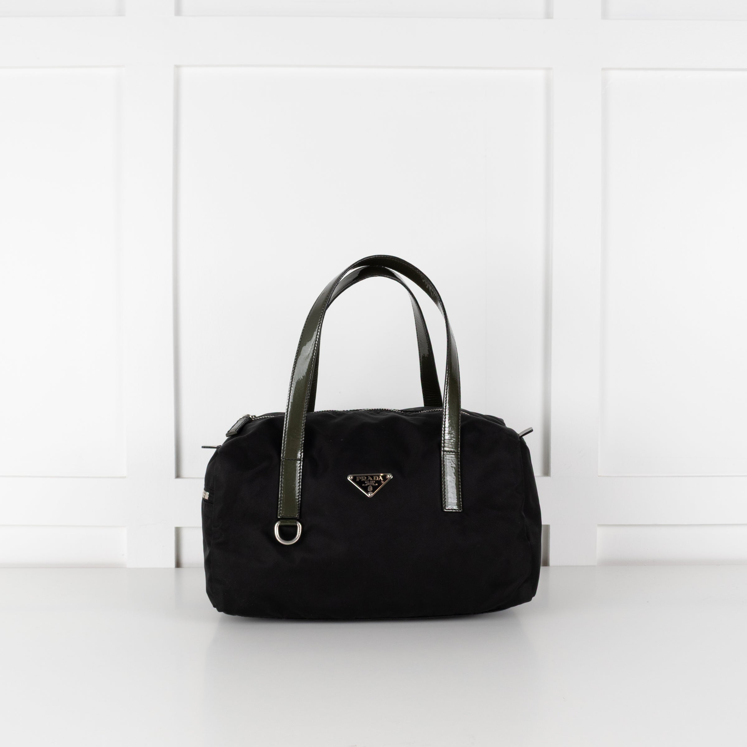Prada Black Boston Nylon With Green Patent Leather Handles Mini Bag