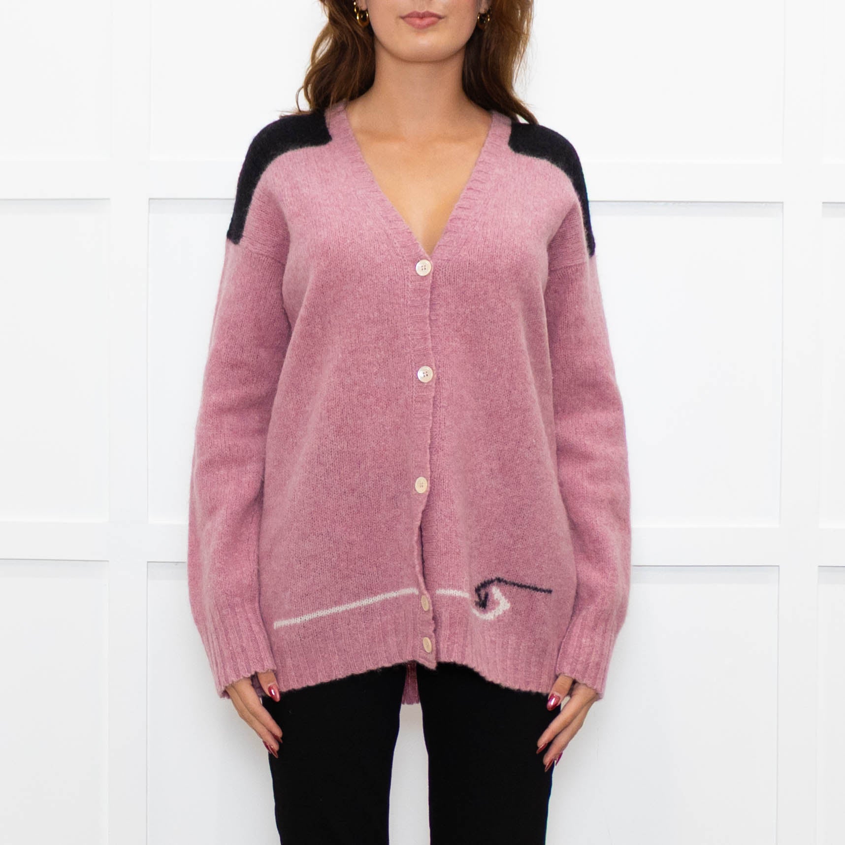 Prada Pink Black Logo Back Wool Oversized Cardigan