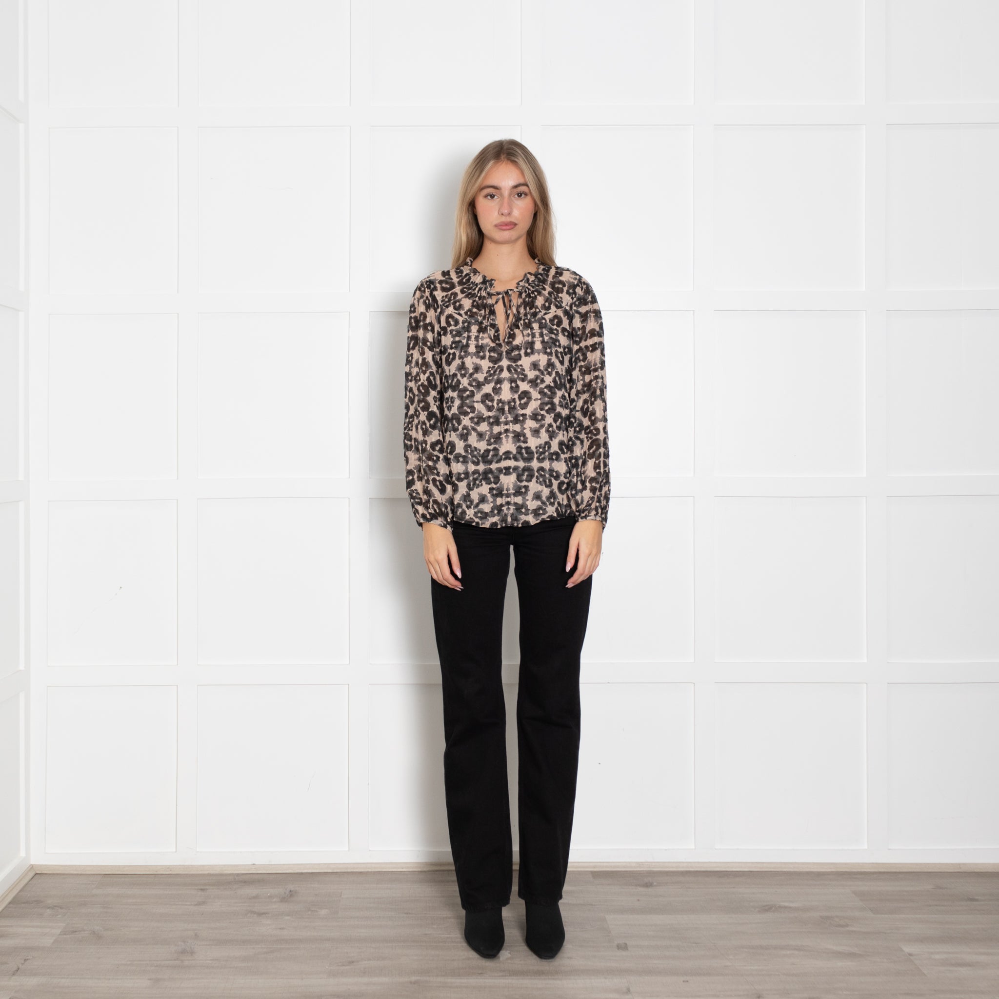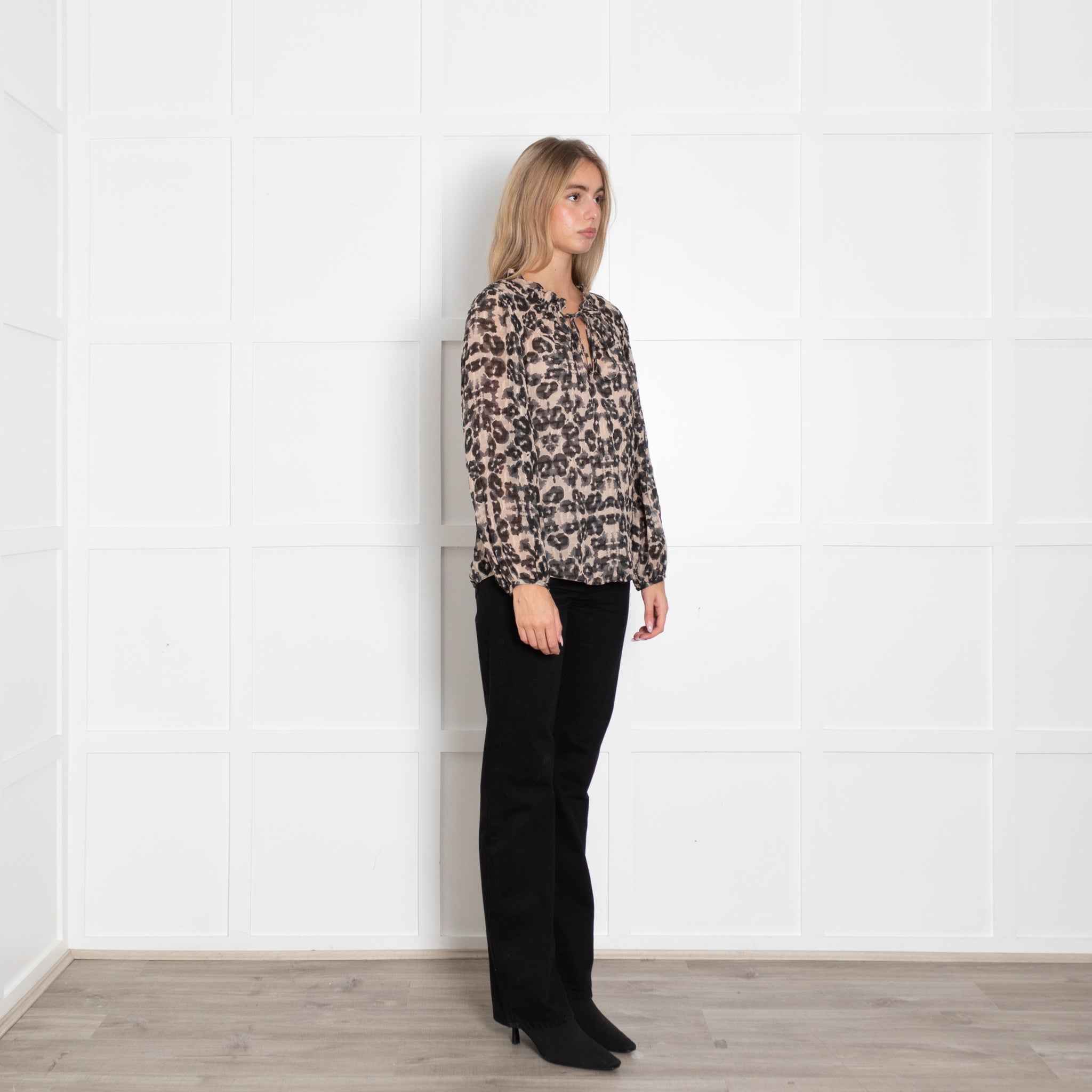 Rebecca Taylor beige and black animal print long sleeve top. Sheer top with beige camisole attached.