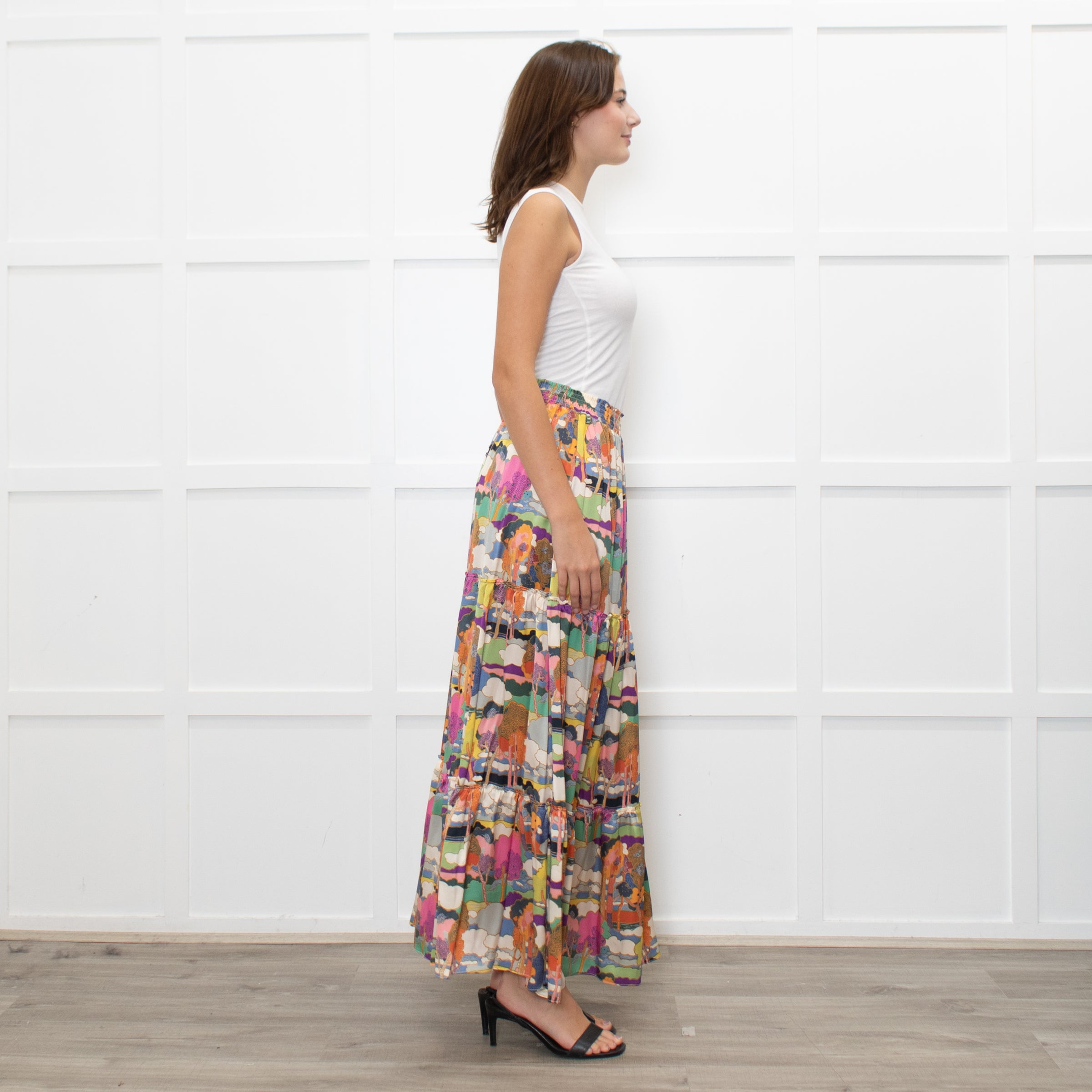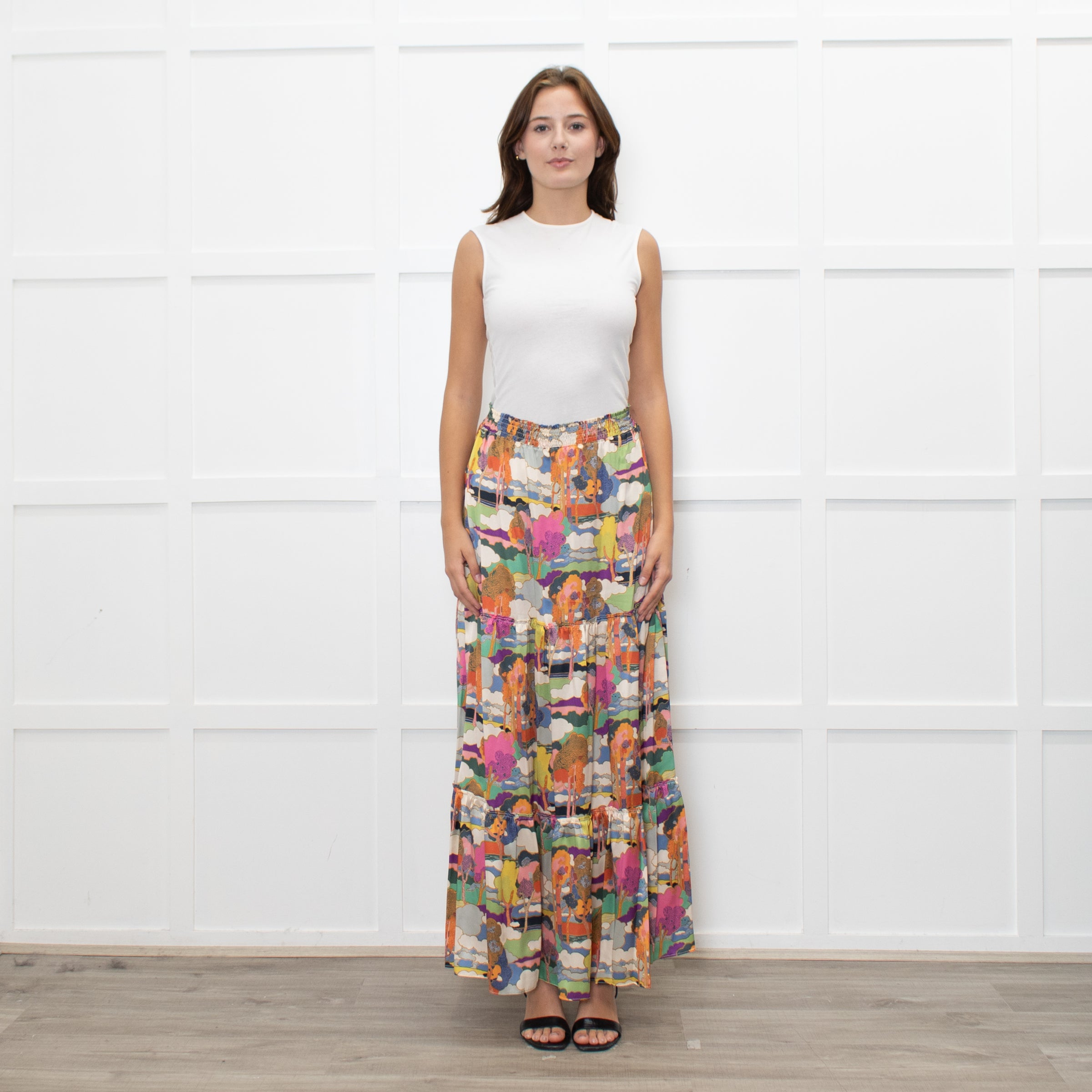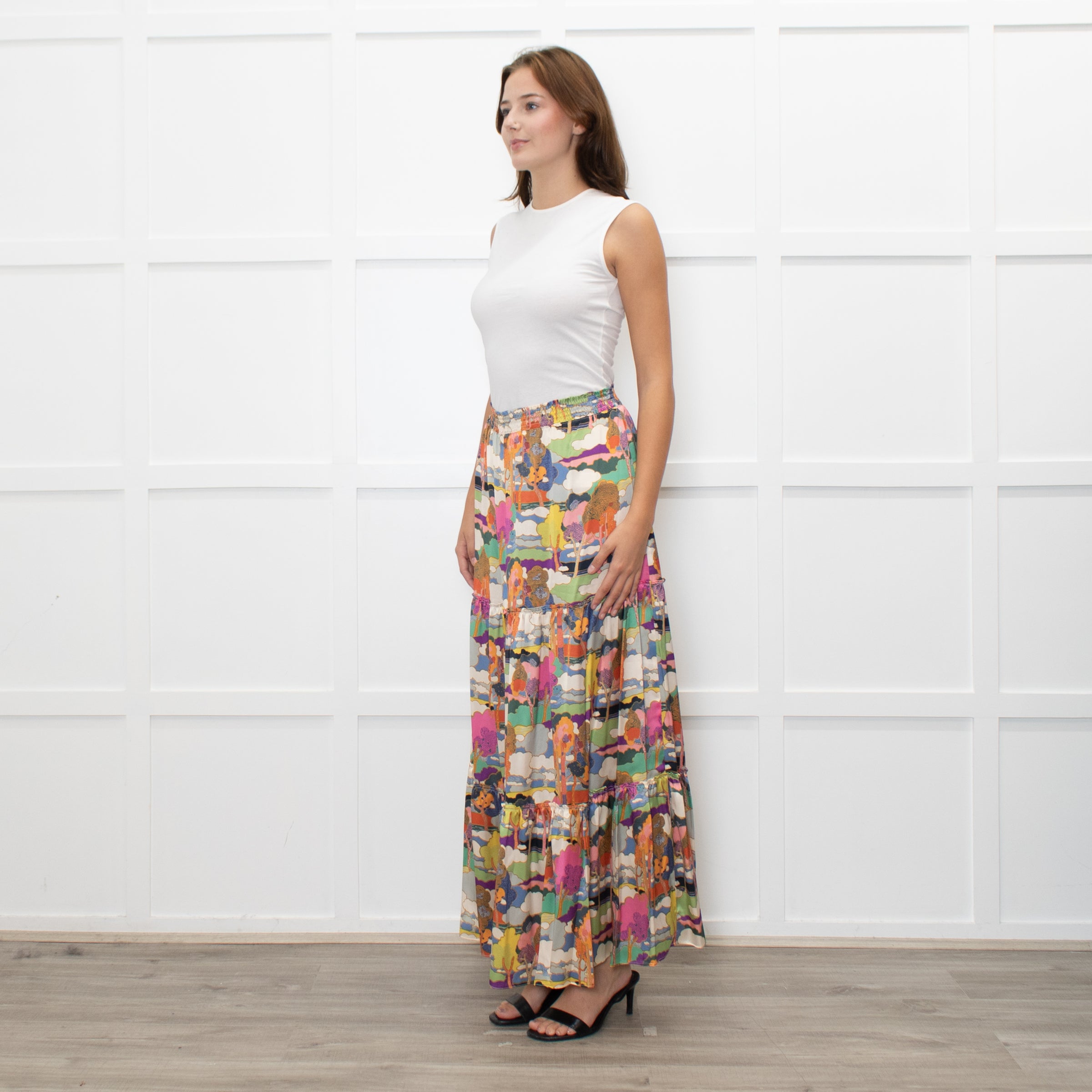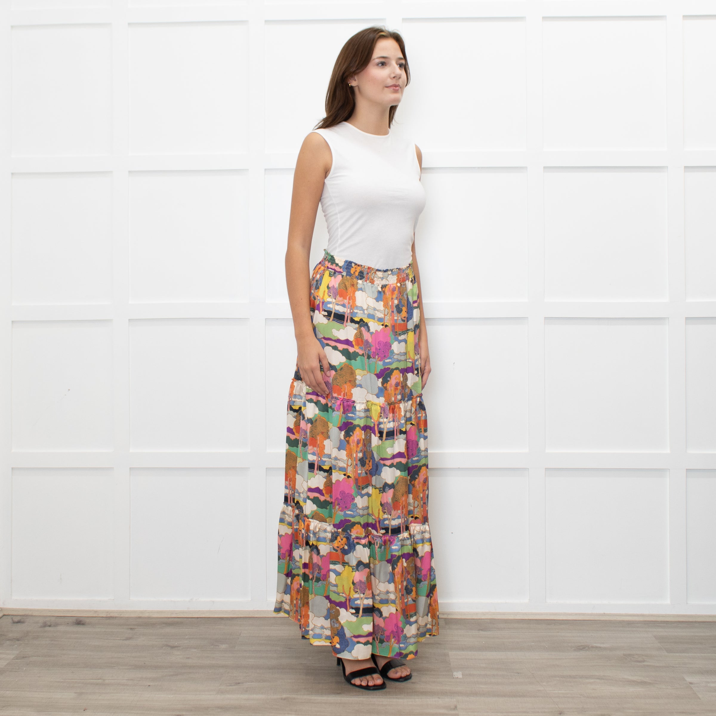 Ridley Multicolour Tree Print Silk Tiered Maxi Skirt