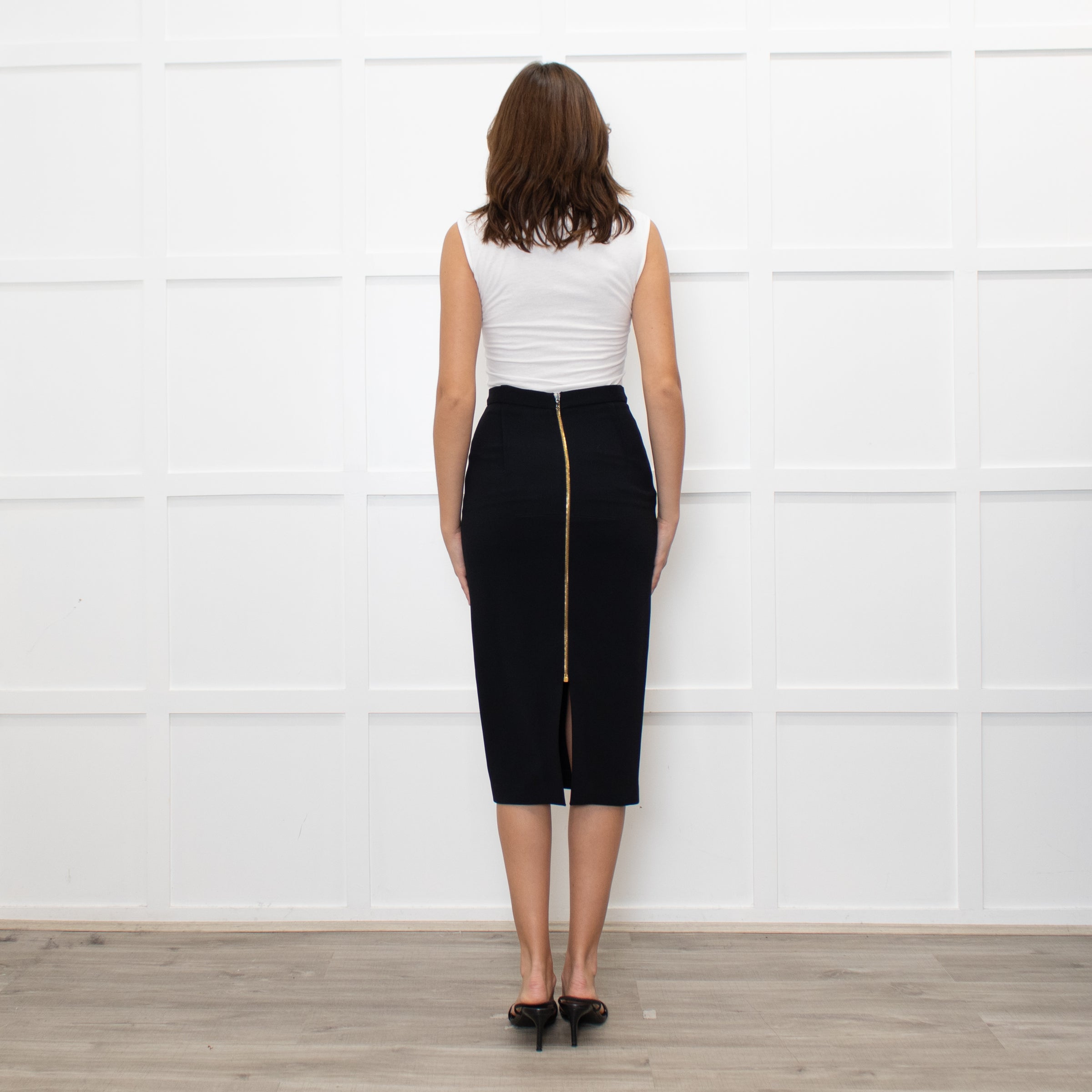 Roland Mouret Black Mid Penci Skirt With Back Gold Zip
