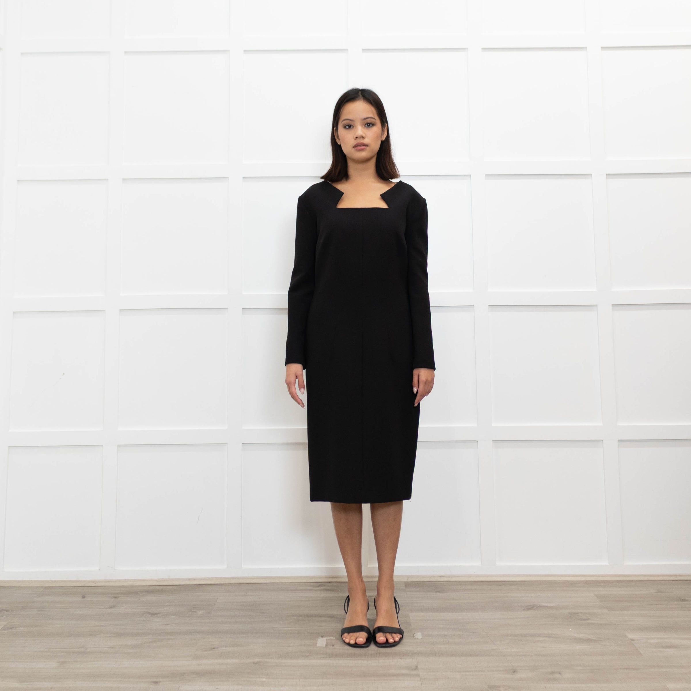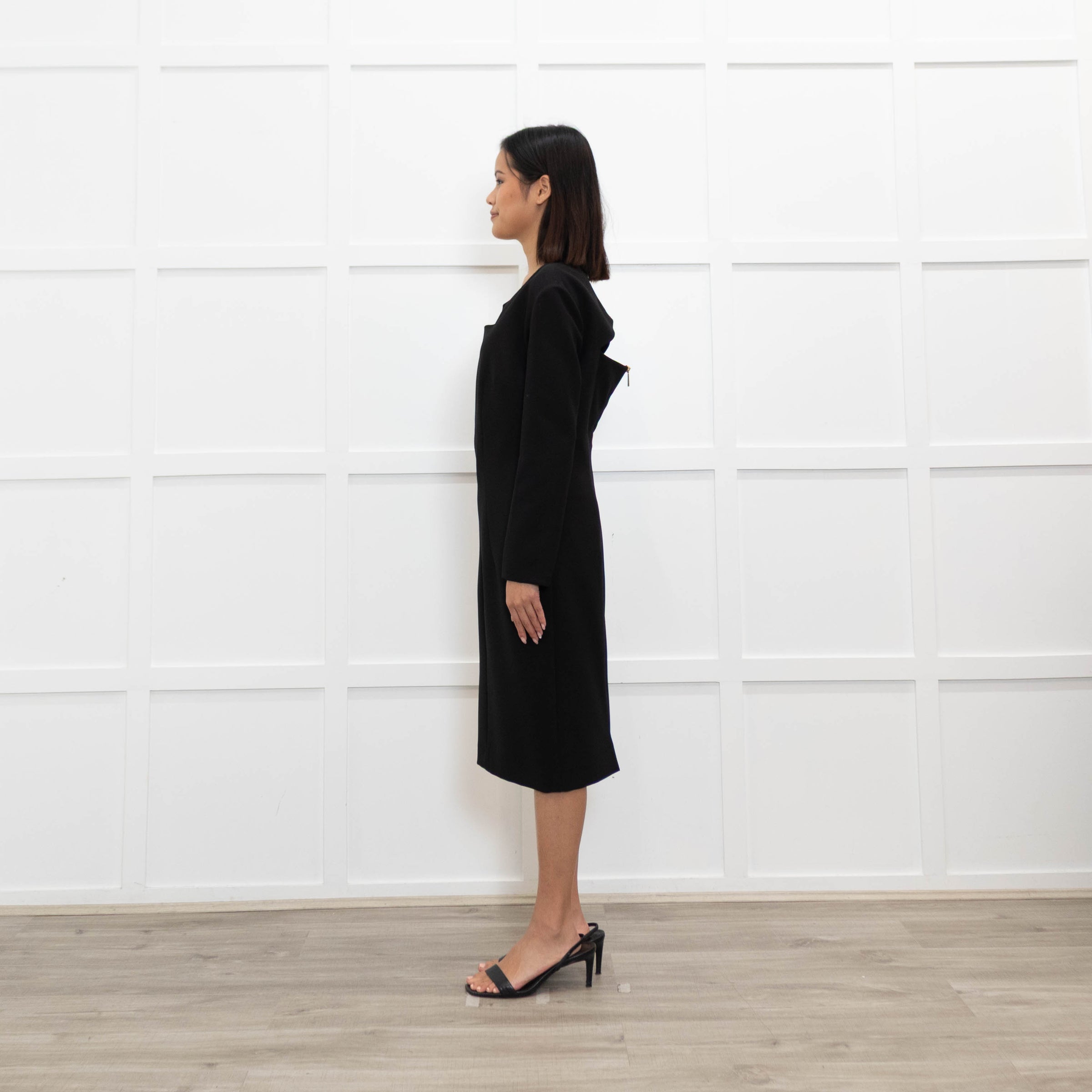 Safiyya Black Open Back Long Sleeve Shift Dress