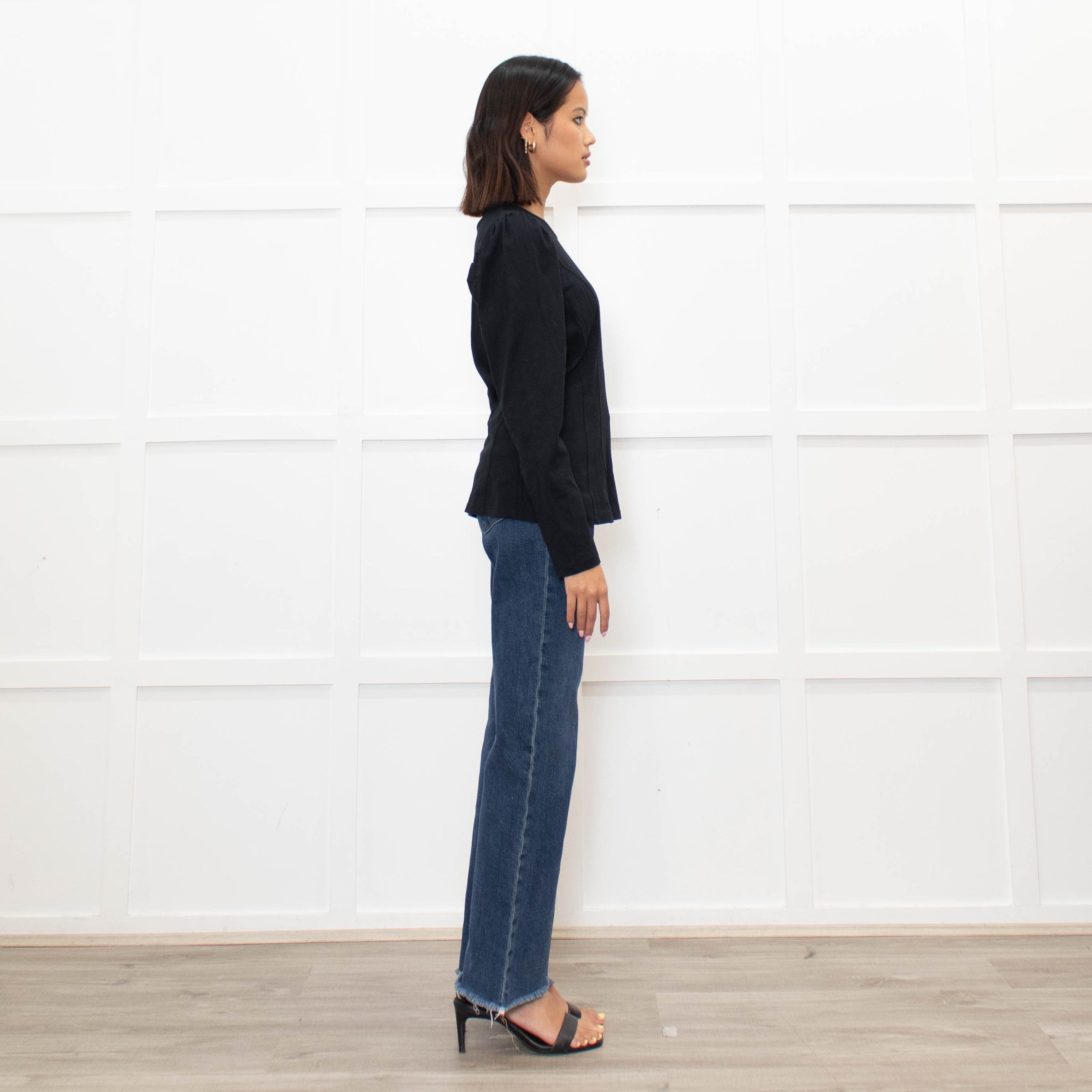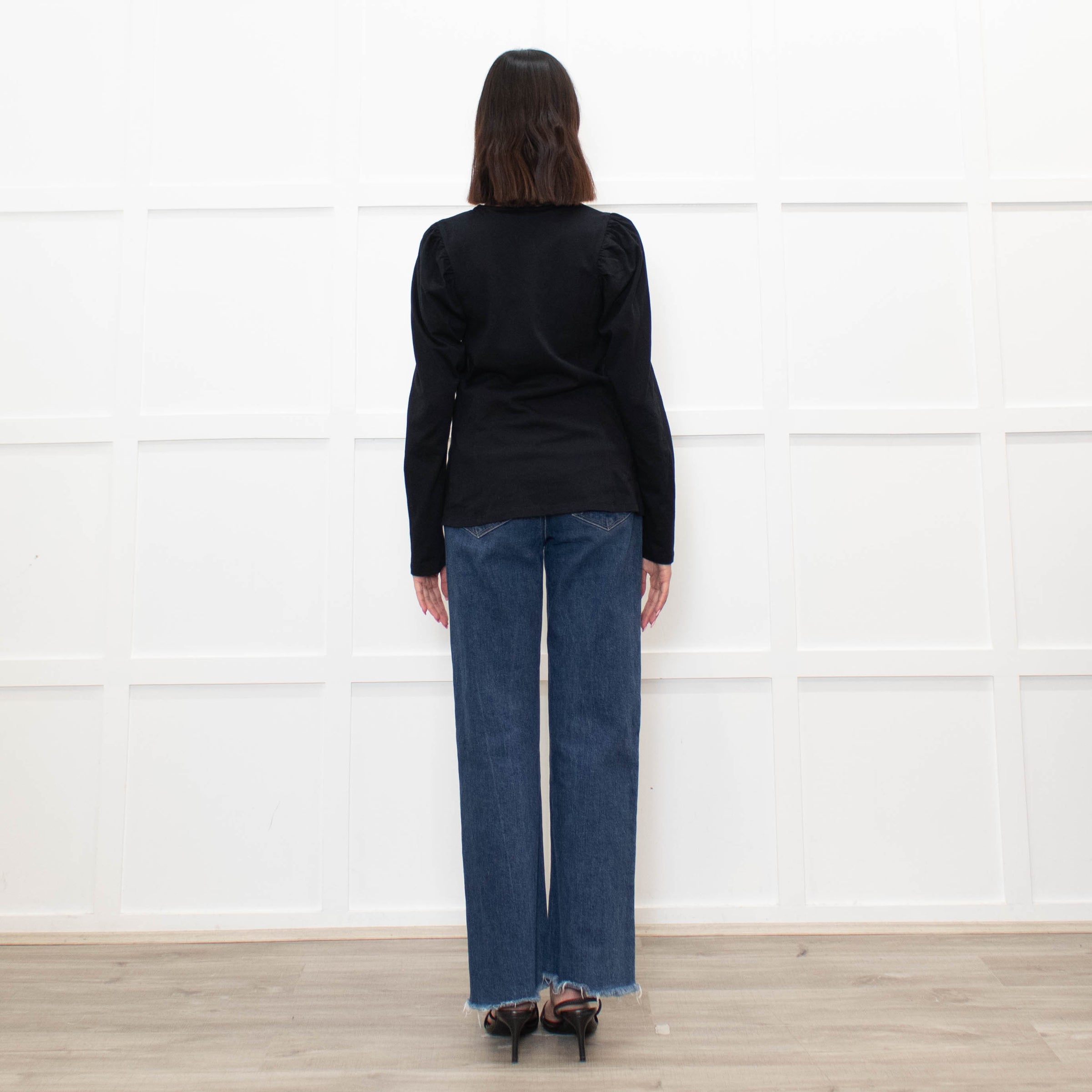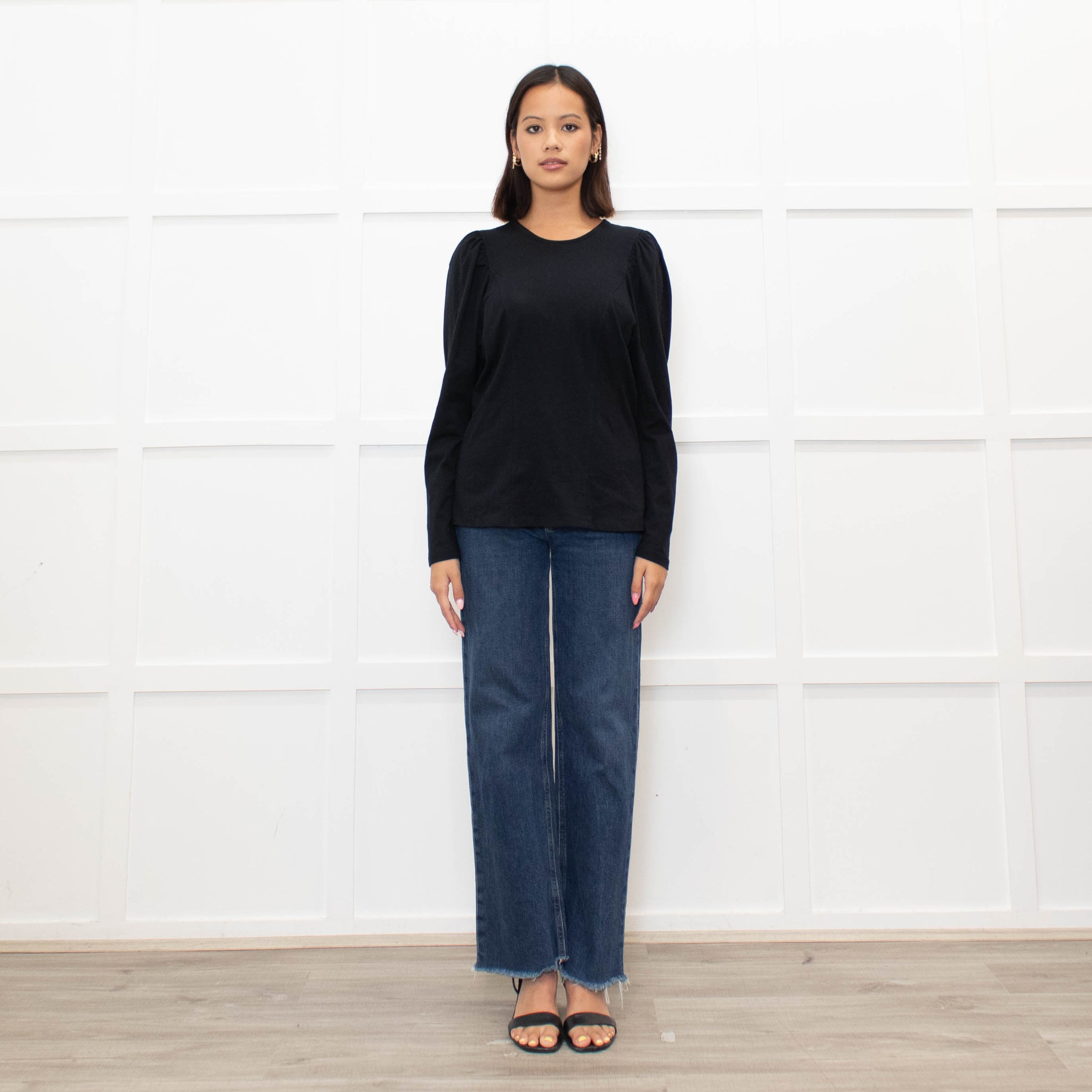 Sandro black puff sleeve top with a rounded neckline. New with tags.