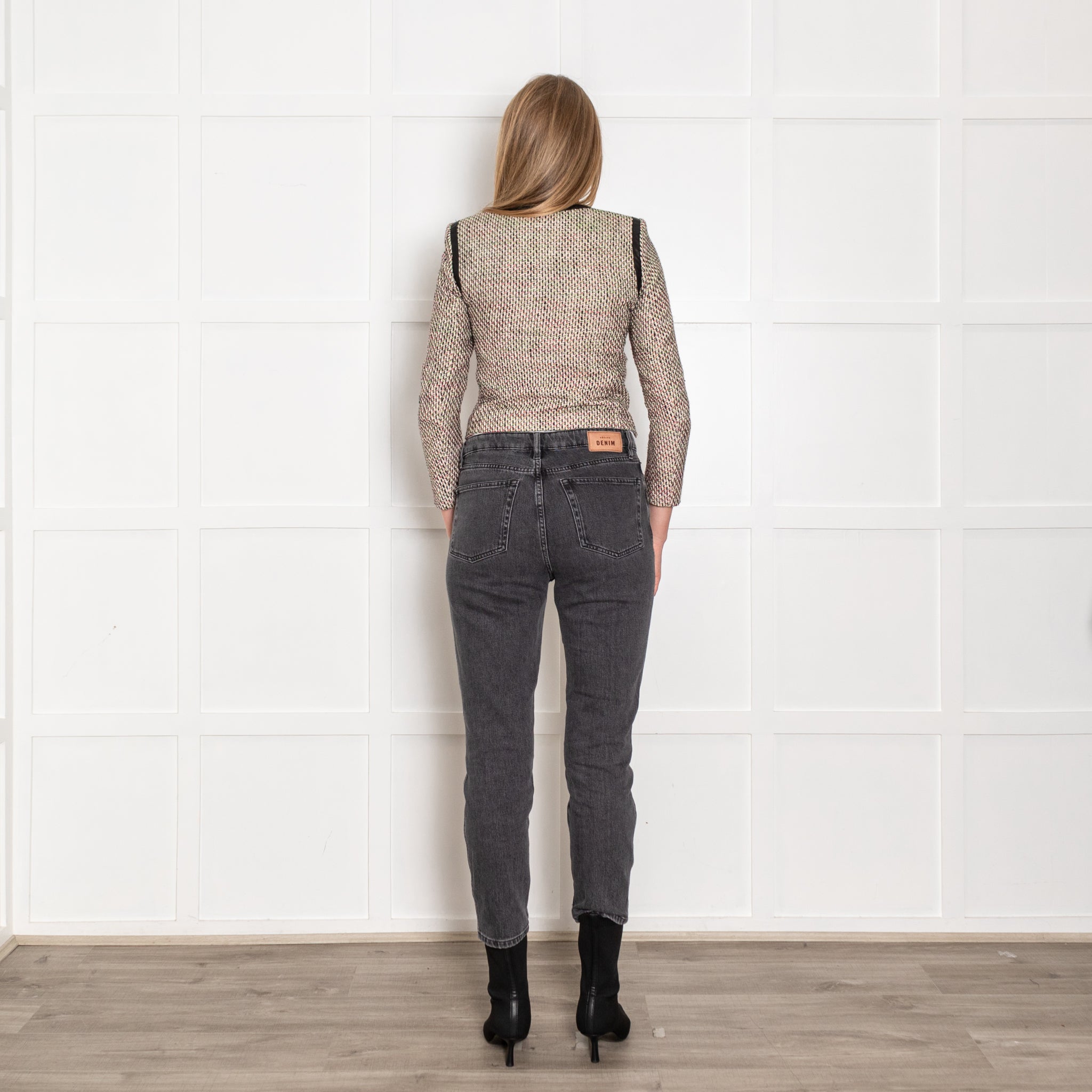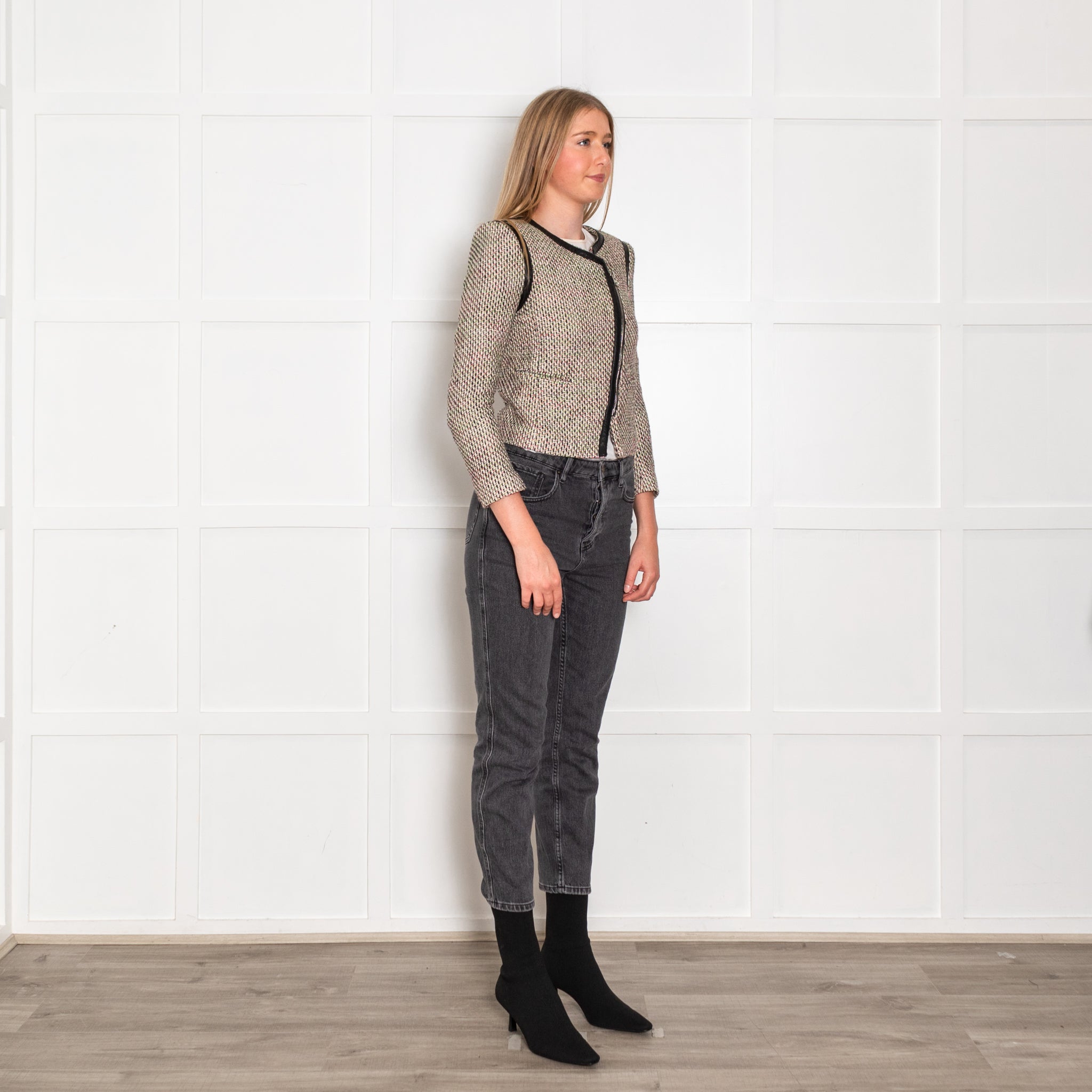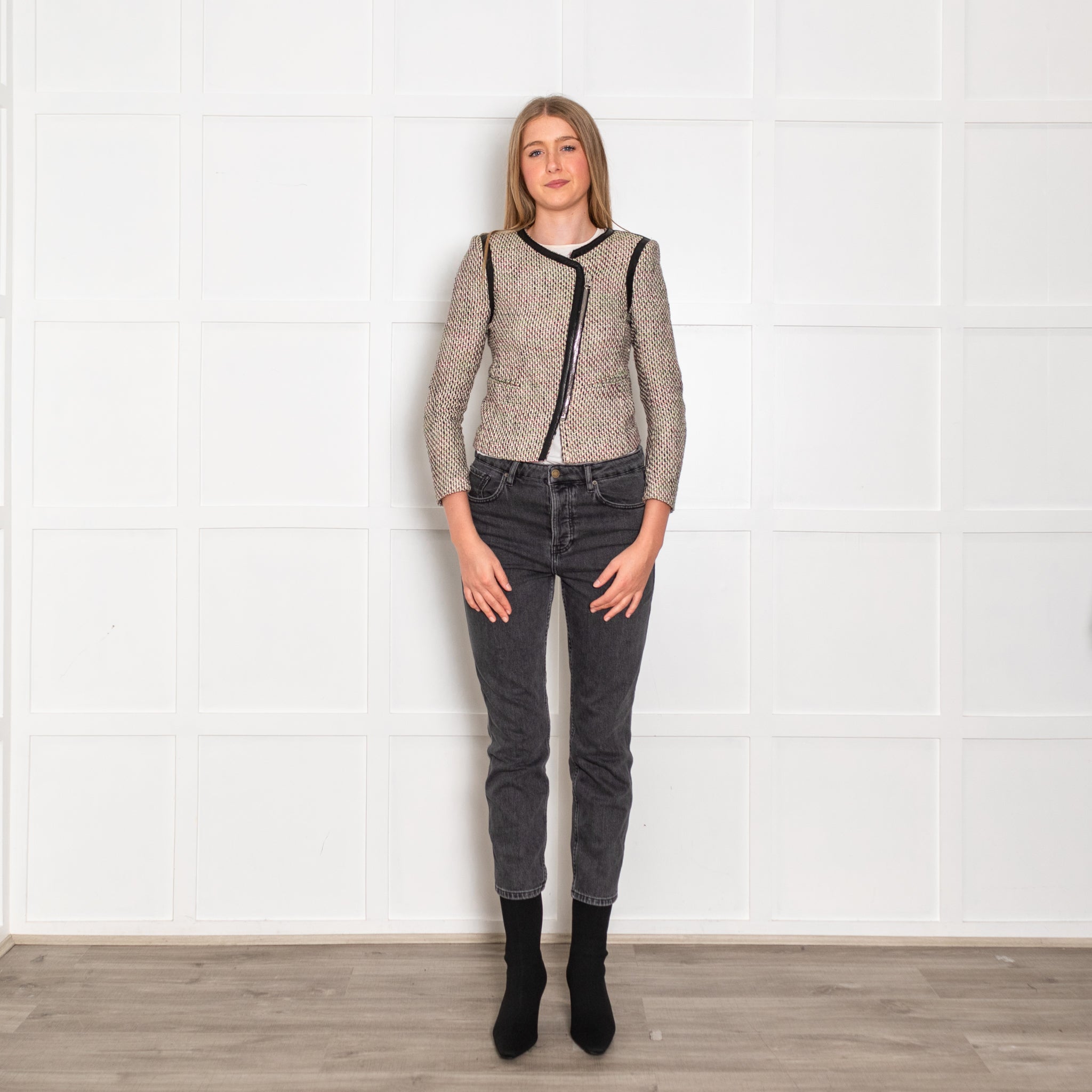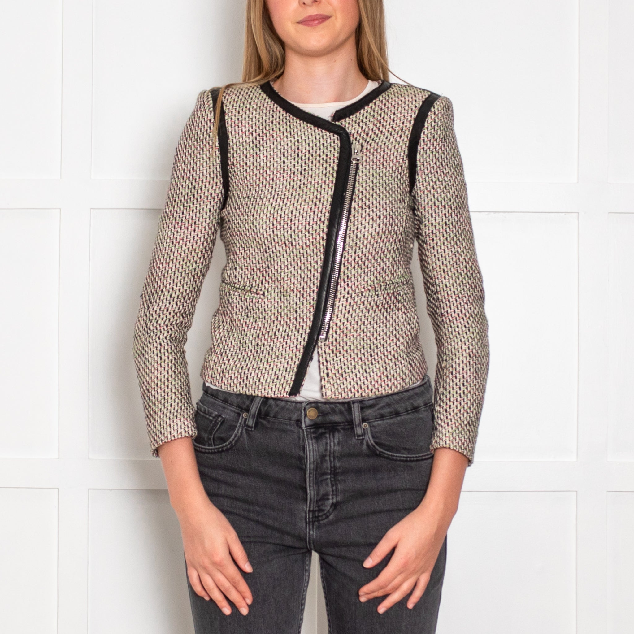 Sandro CreamBlack Green Tweedy Zip Up Jacket