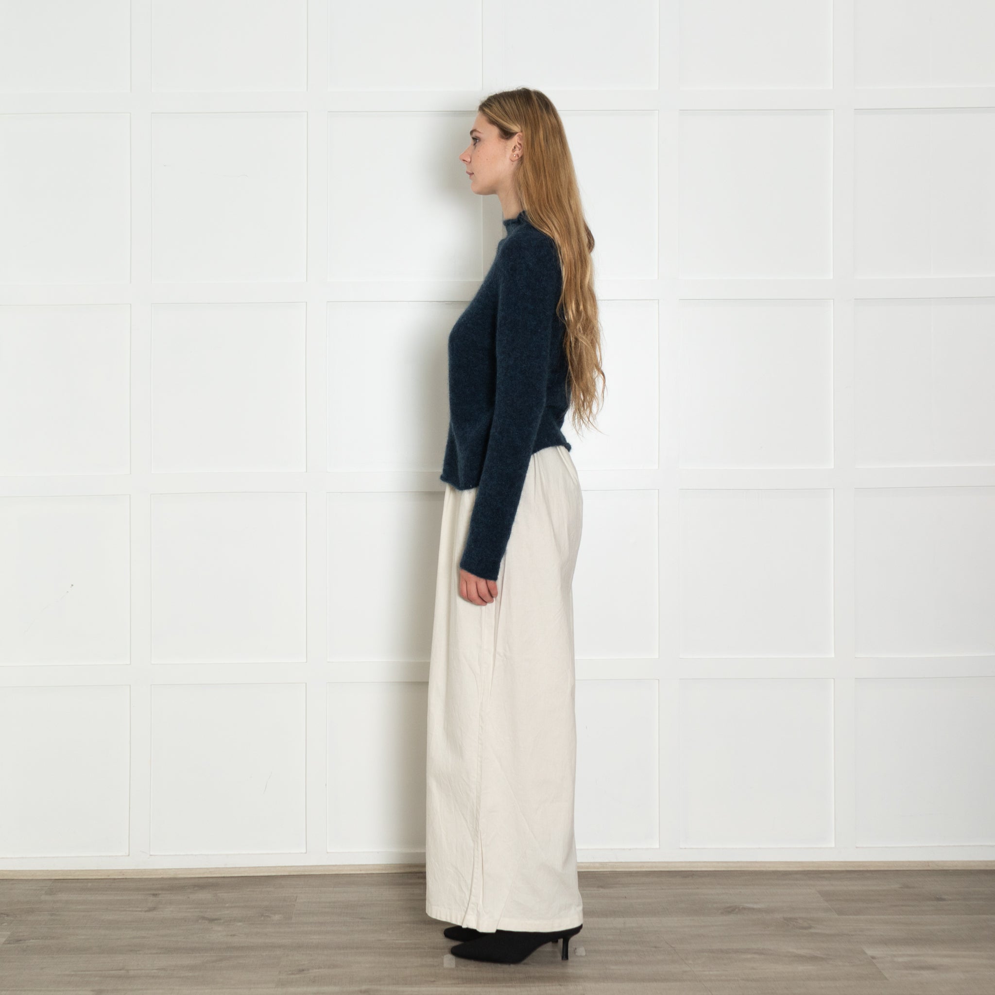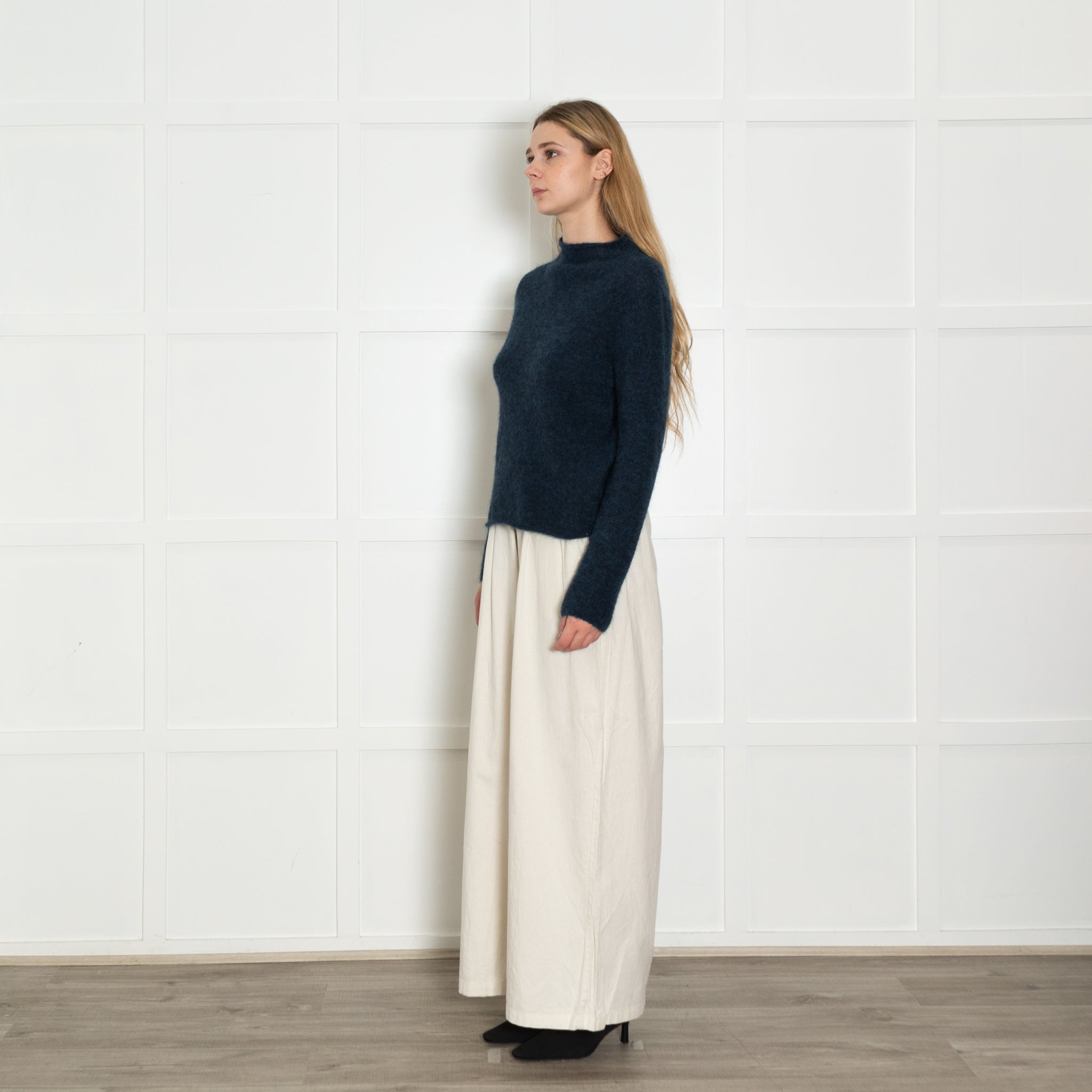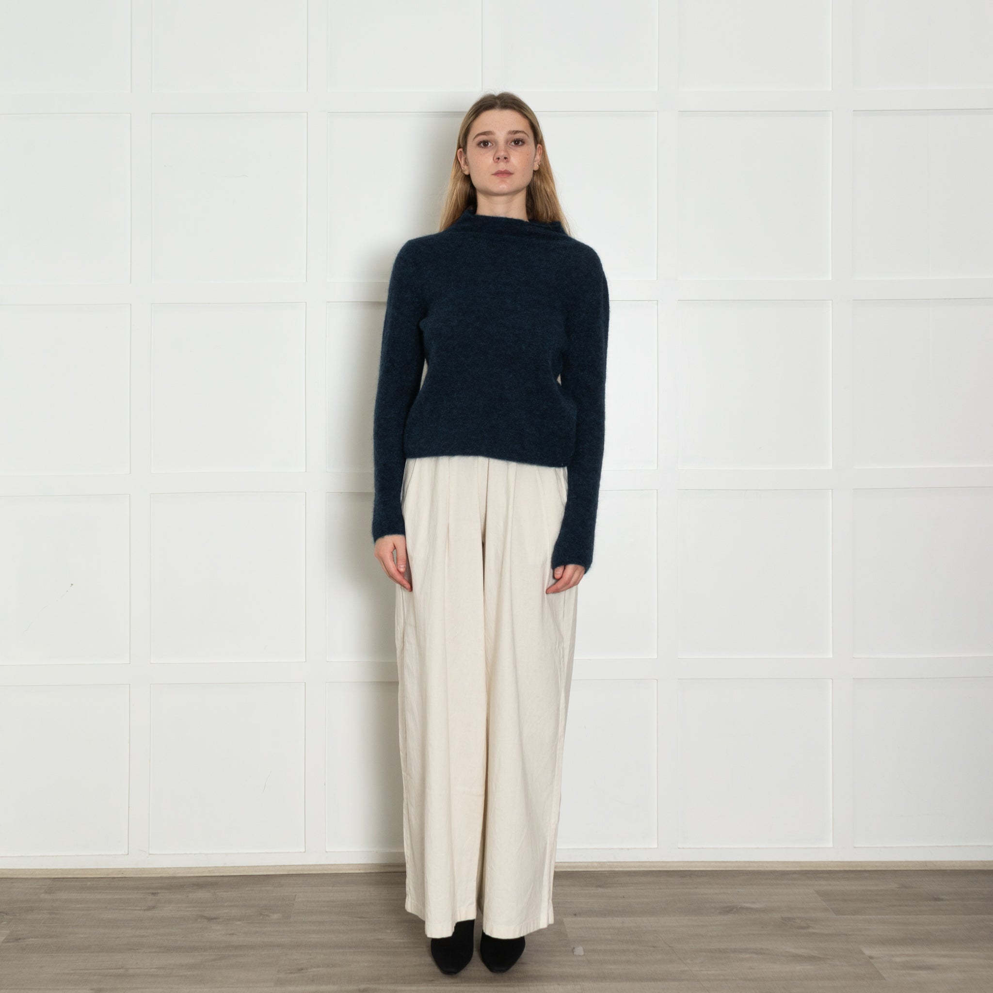 Sarah Pacini stunning long-sleeve midnight blue jumper, crafted with soft mohair wool fabric, features a high neckline.