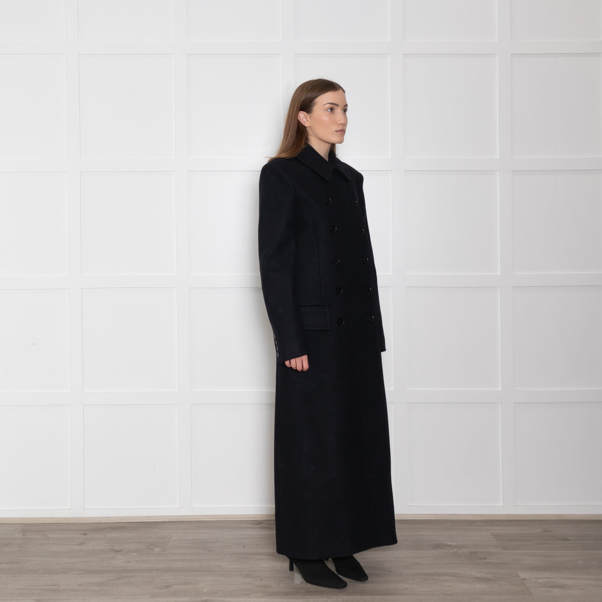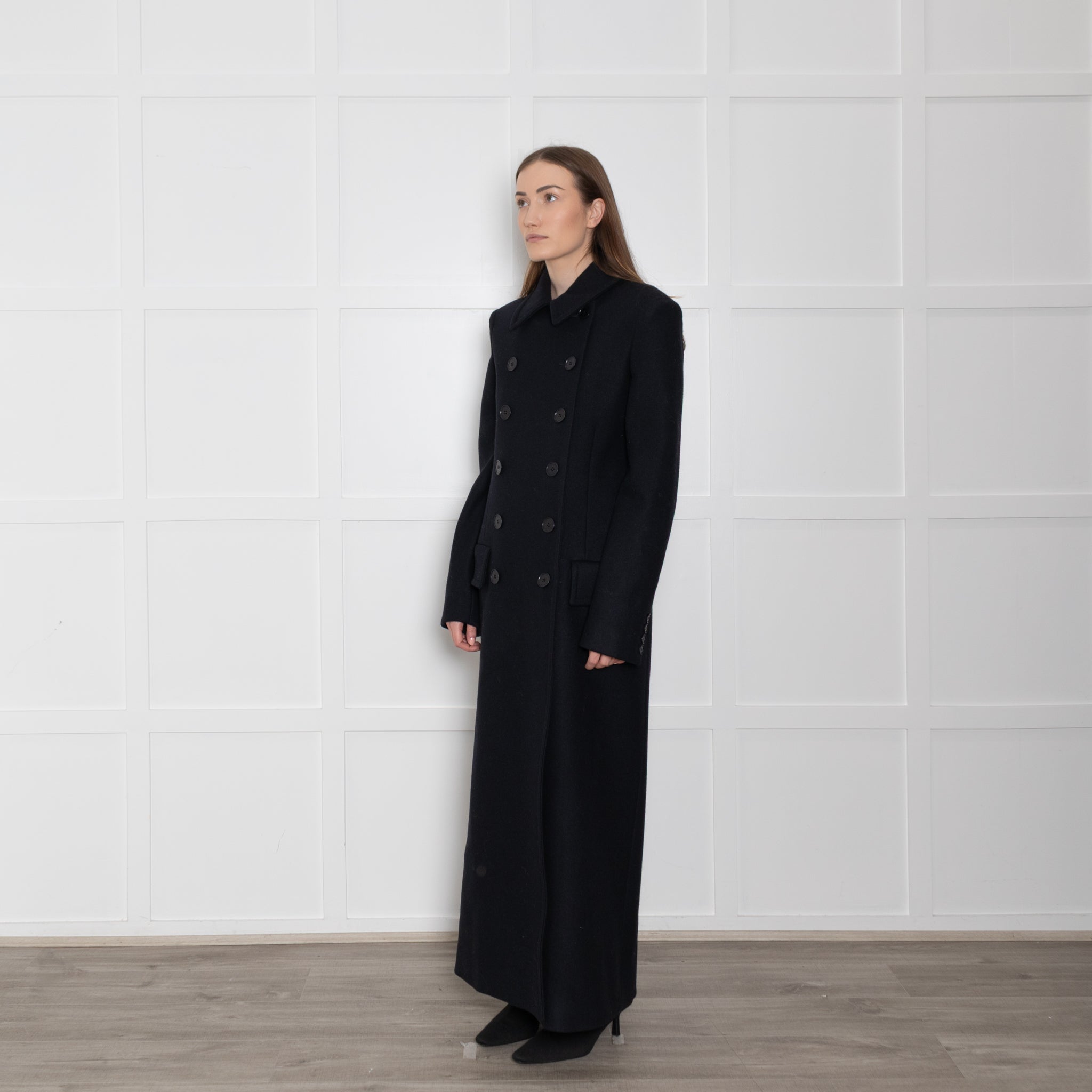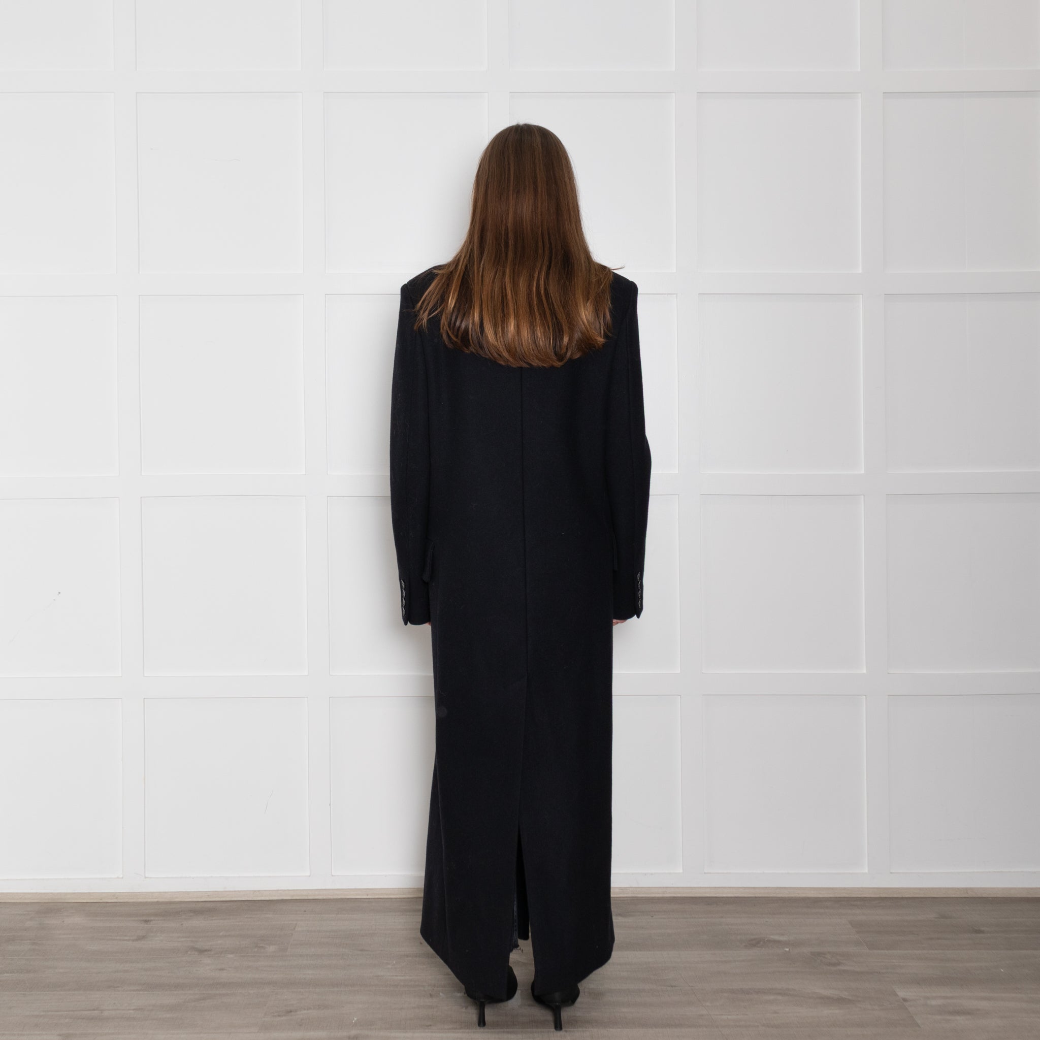 Stella McCartney Navy Blue Wool Double Breasted Maxi Coat
