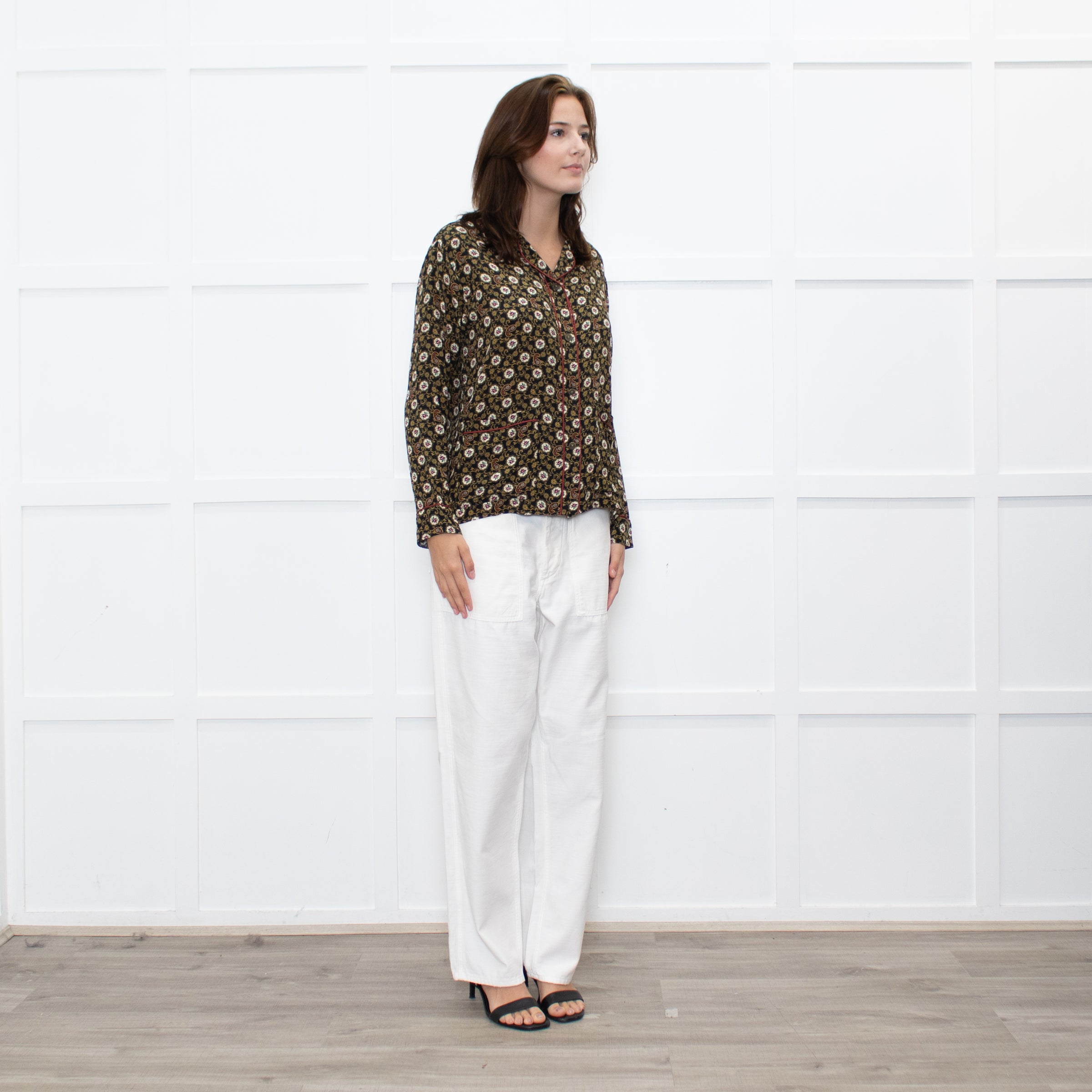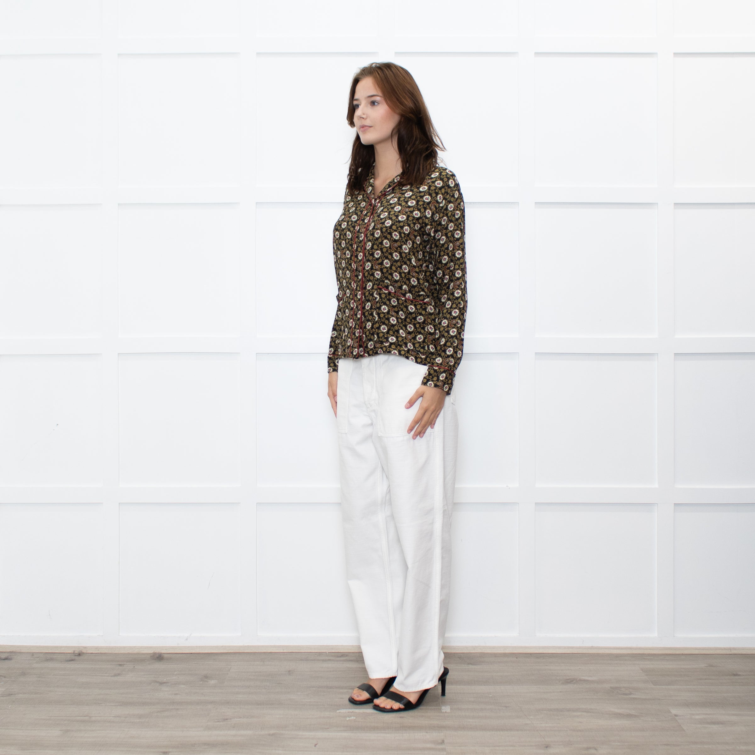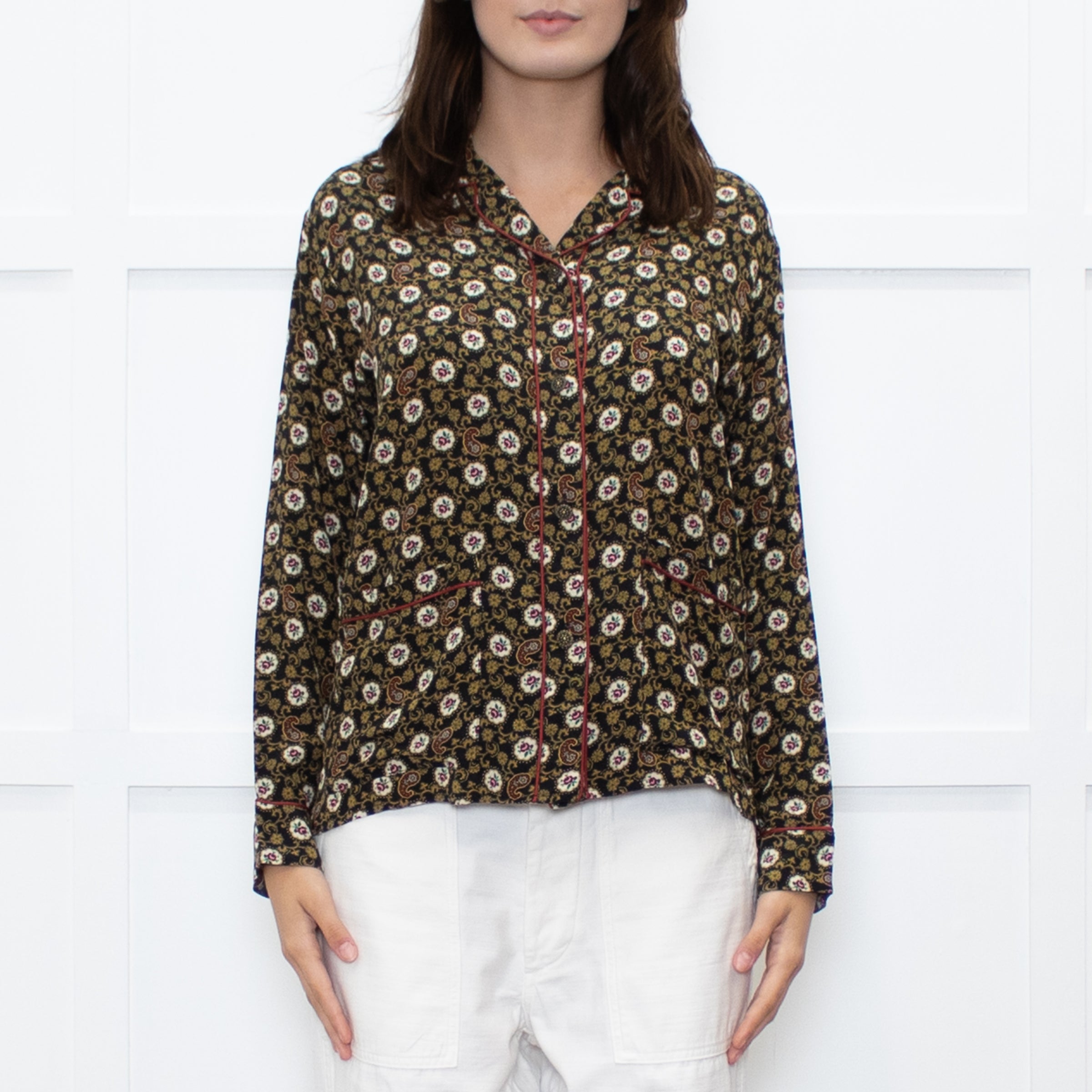 The Kooples Black Mustard Floral Red Trim Pyjama Style Shirt