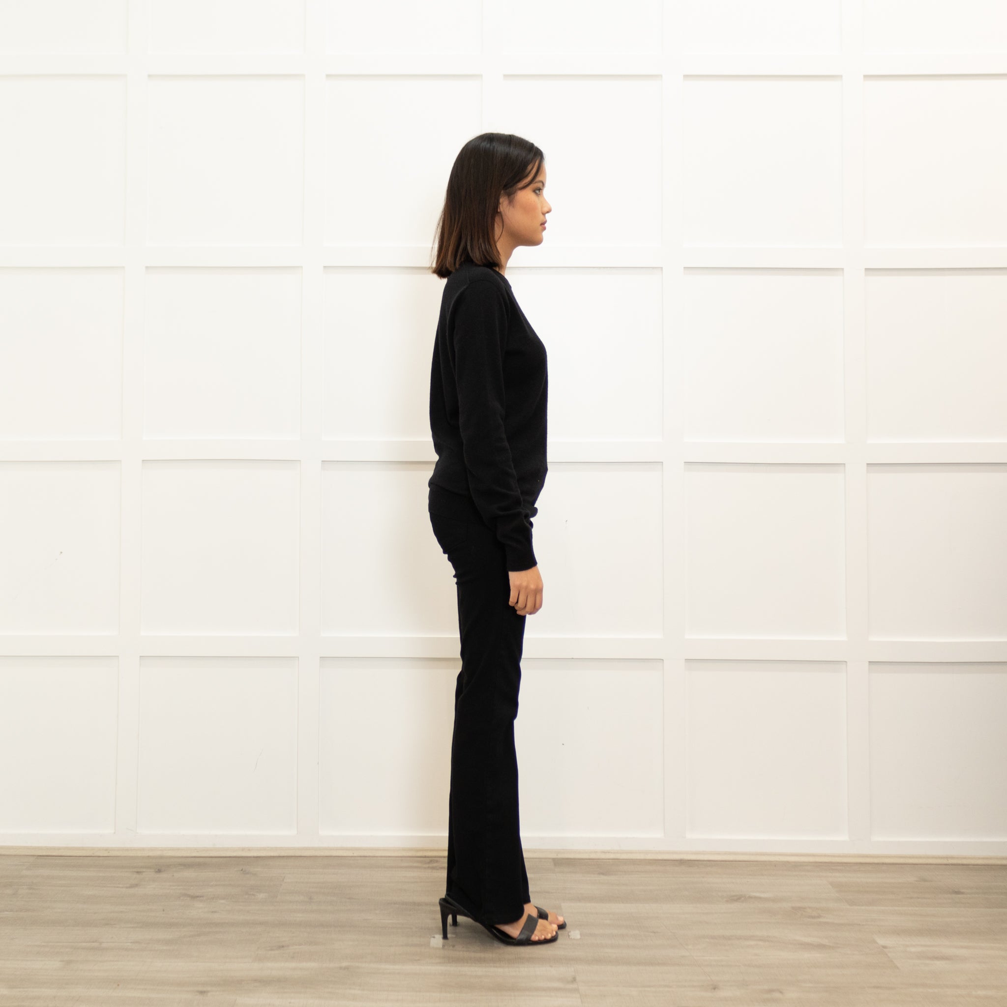 The Row black long-sleeve fine cashmere sweater features a rounded neckline.