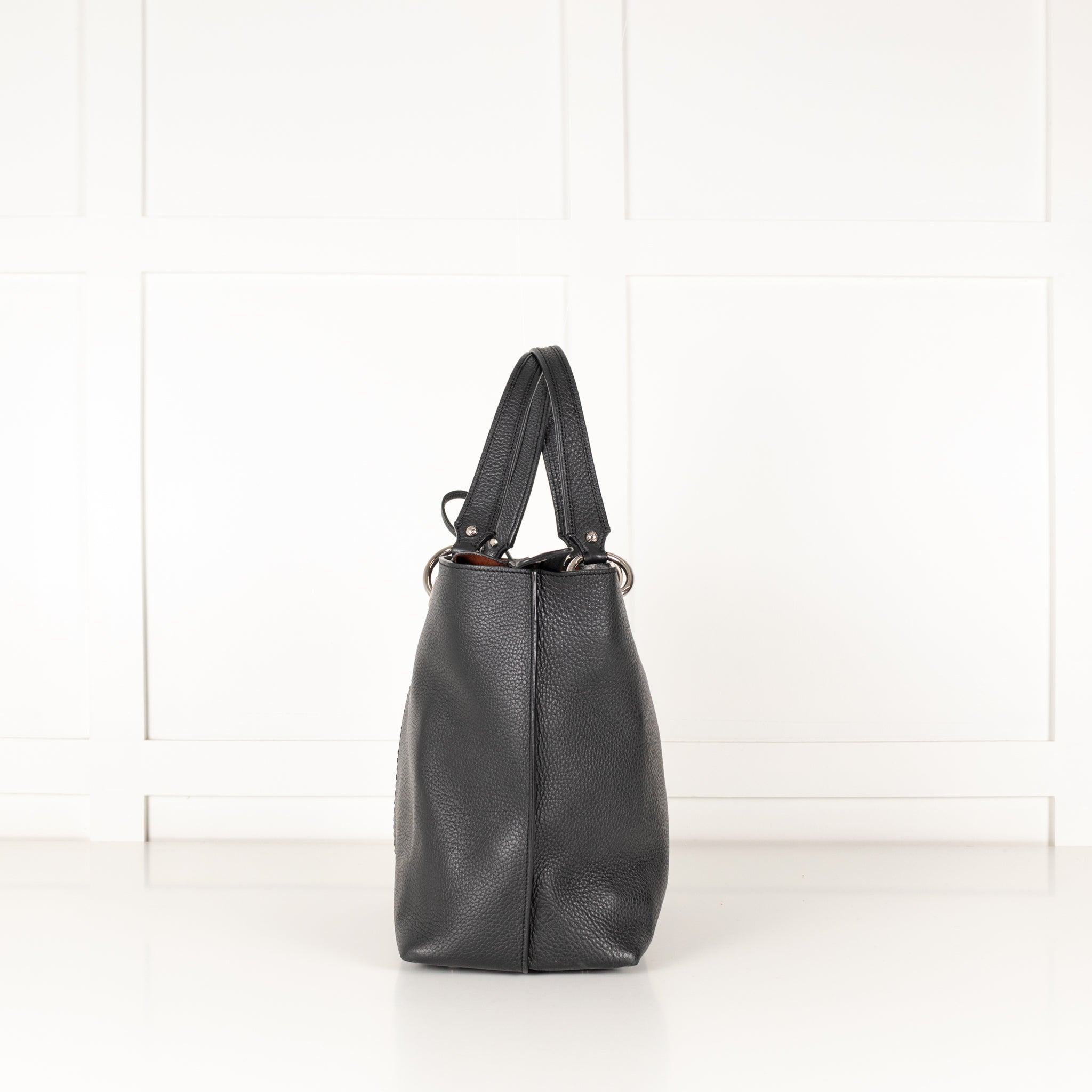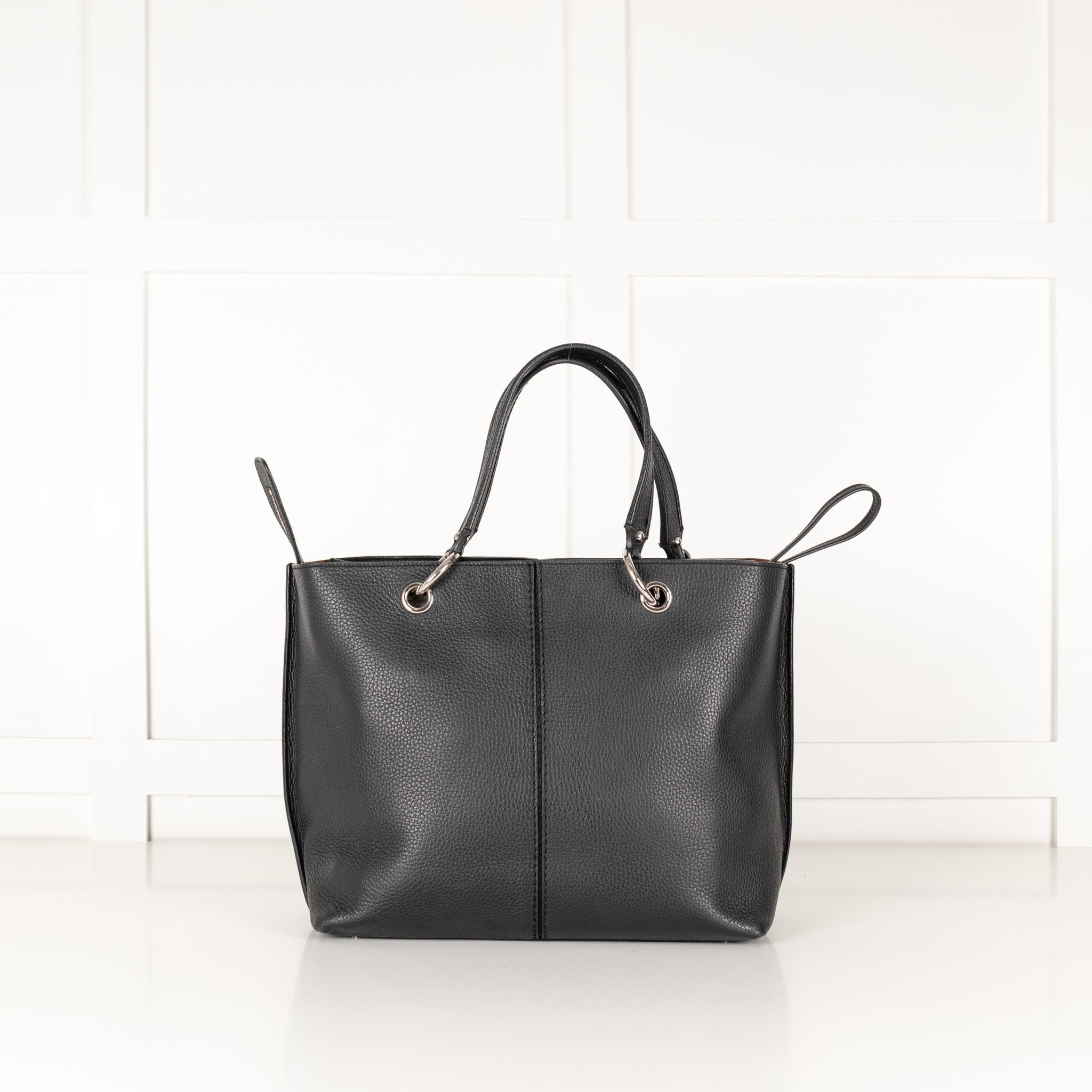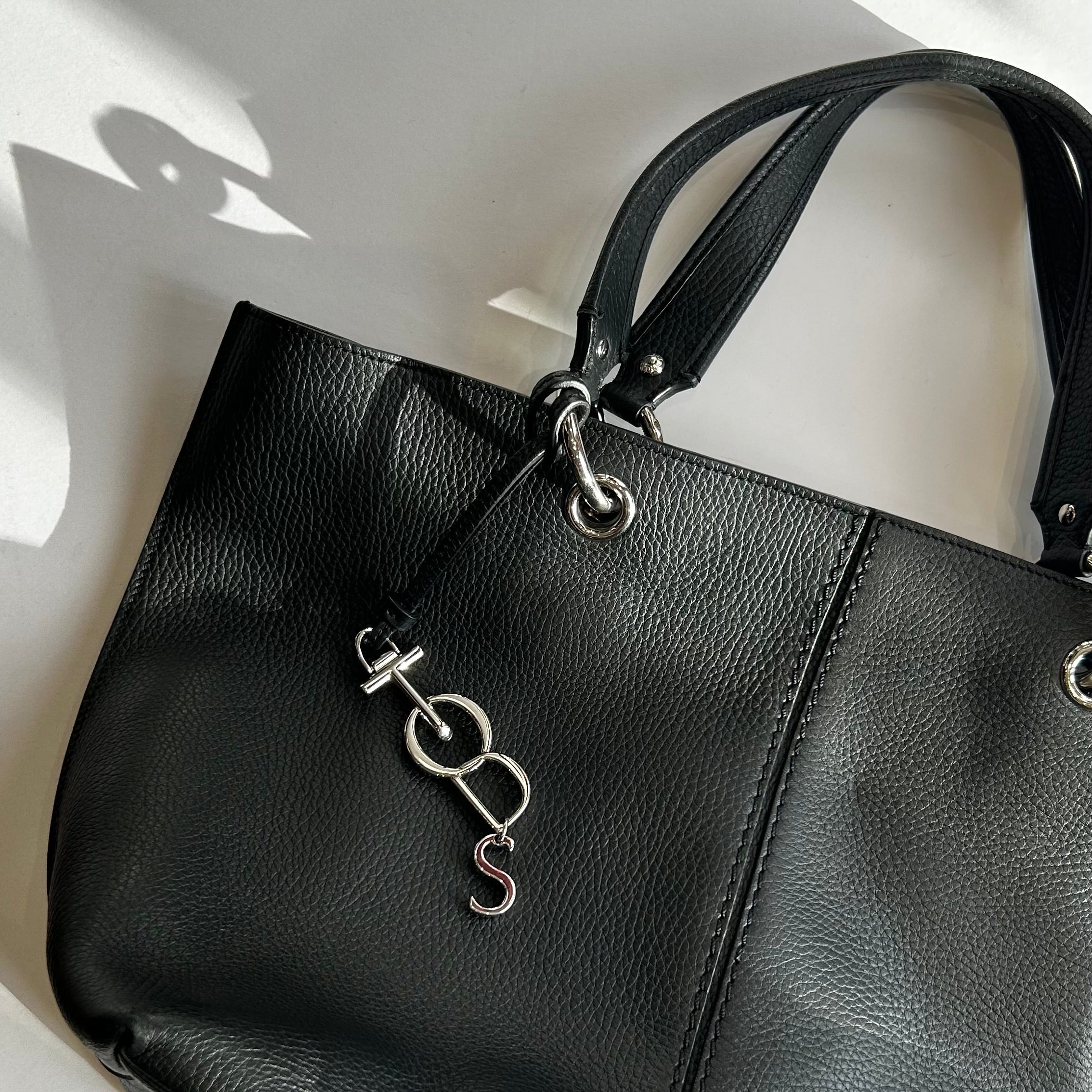 Tod's Black Pebble Leather Tote with Silver Pendant