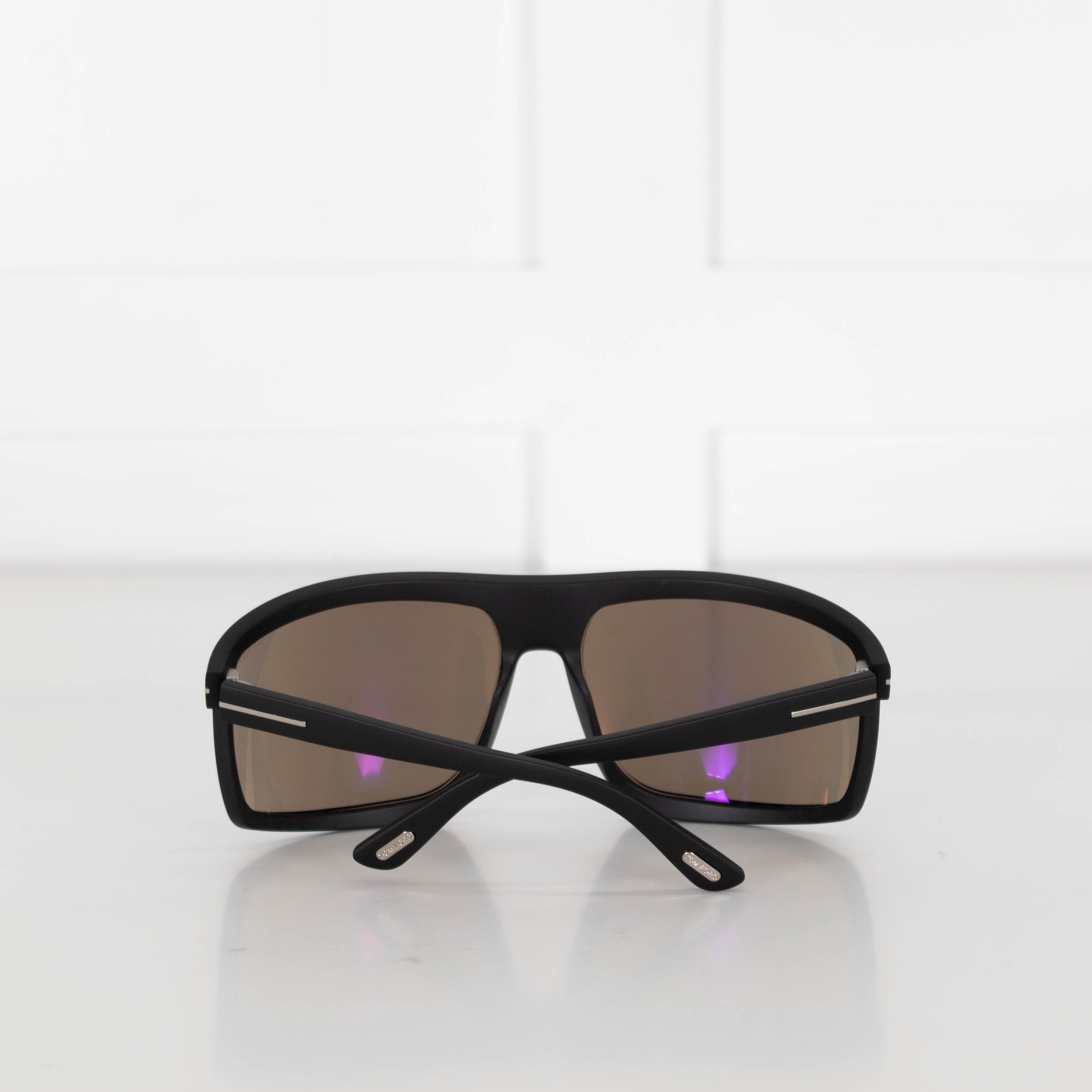 Tom Ford Clint sunglasses in black acetate with signature Tom Ford branding on the temples. Designed in a classic aviator-inspired shape with sturdy acetate frames. Offered with the original case and box.