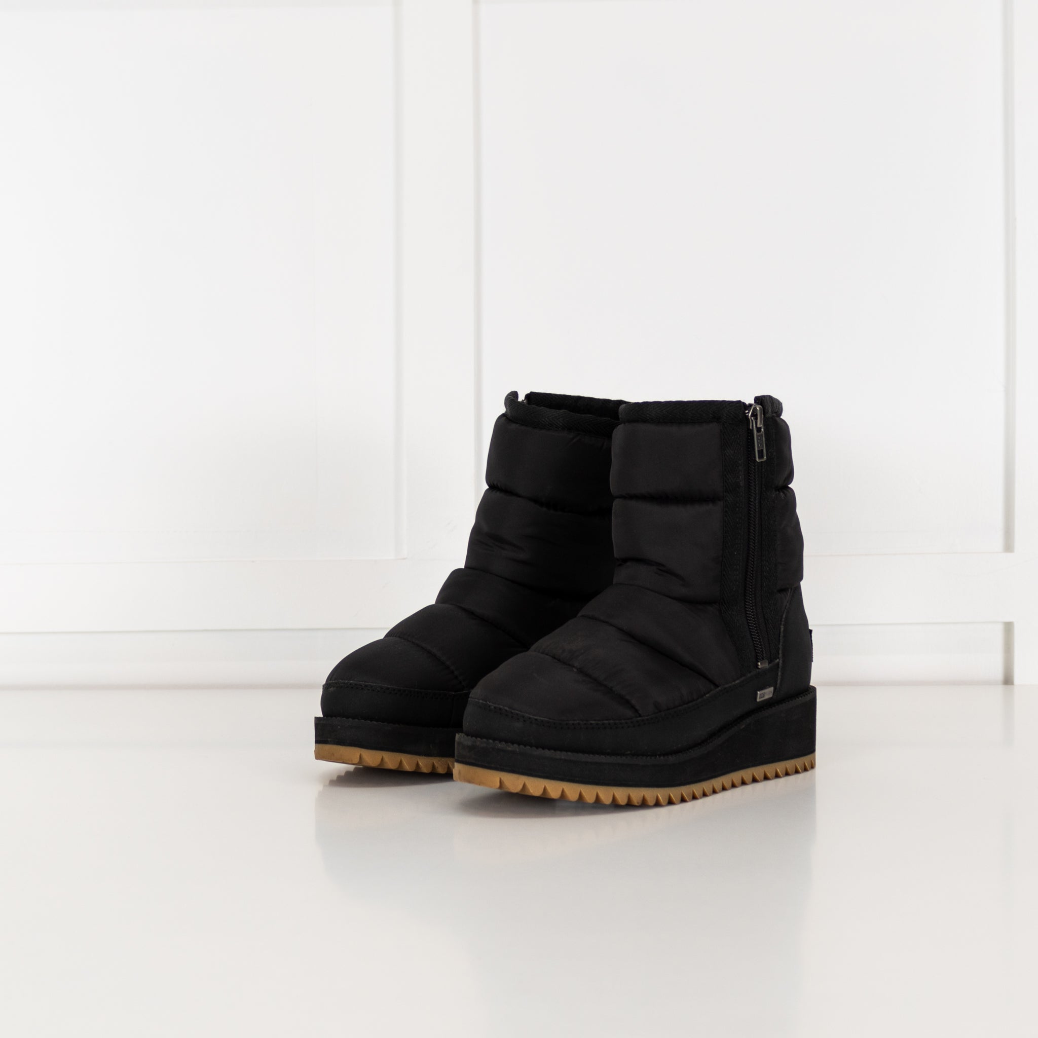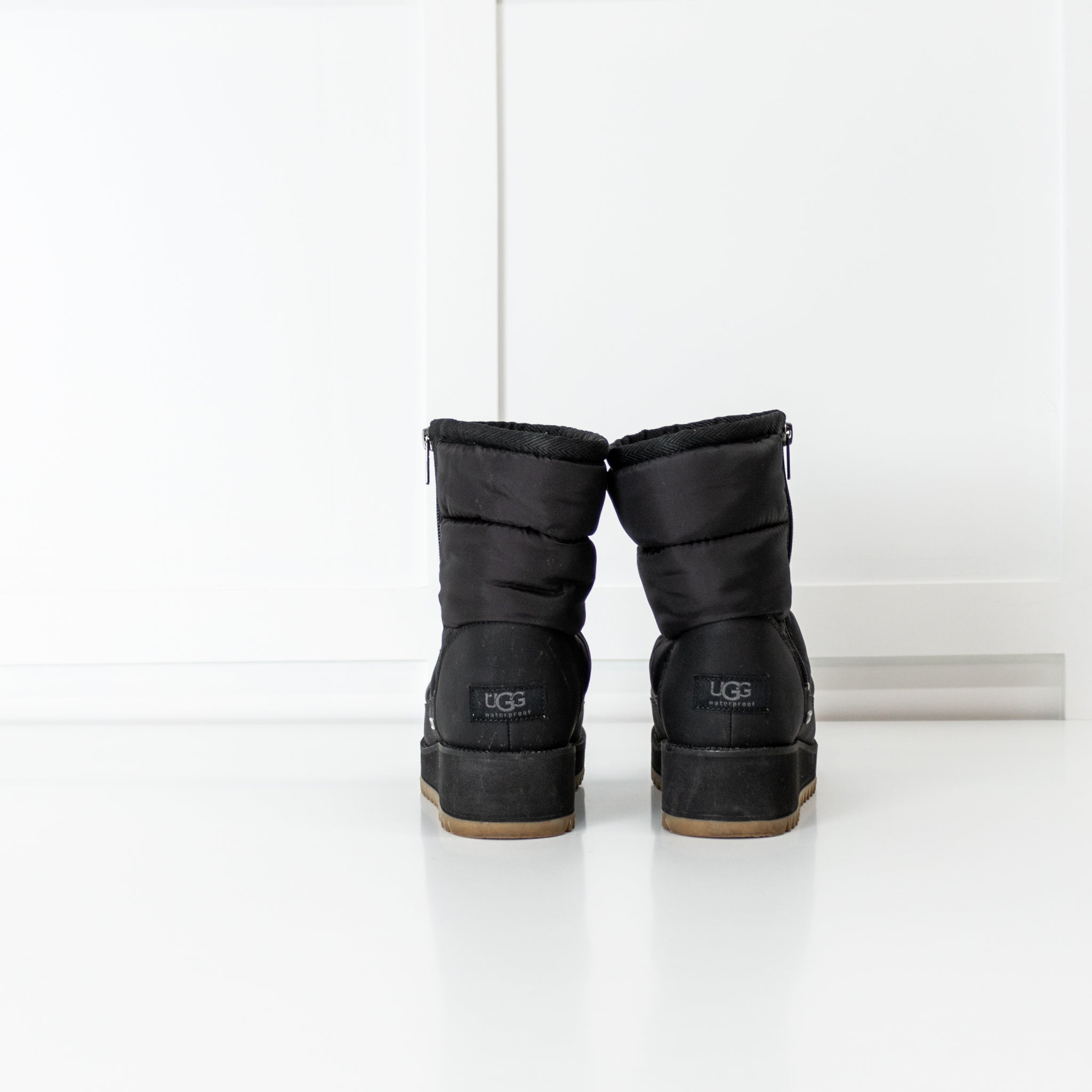 Ugg black ridge padded snow boot lined with wool. These boots feature a rubber wedge heel sole and side zip closure.
