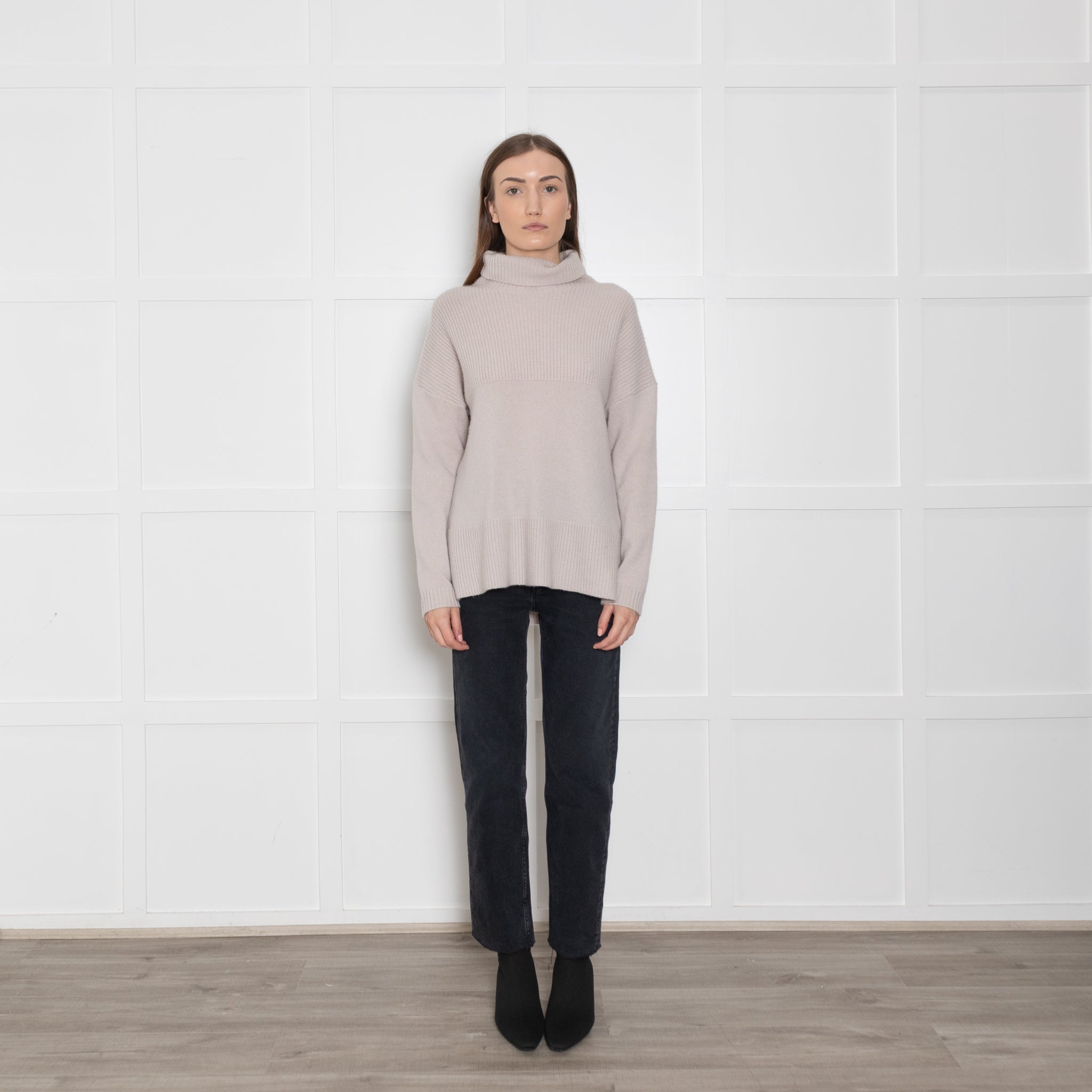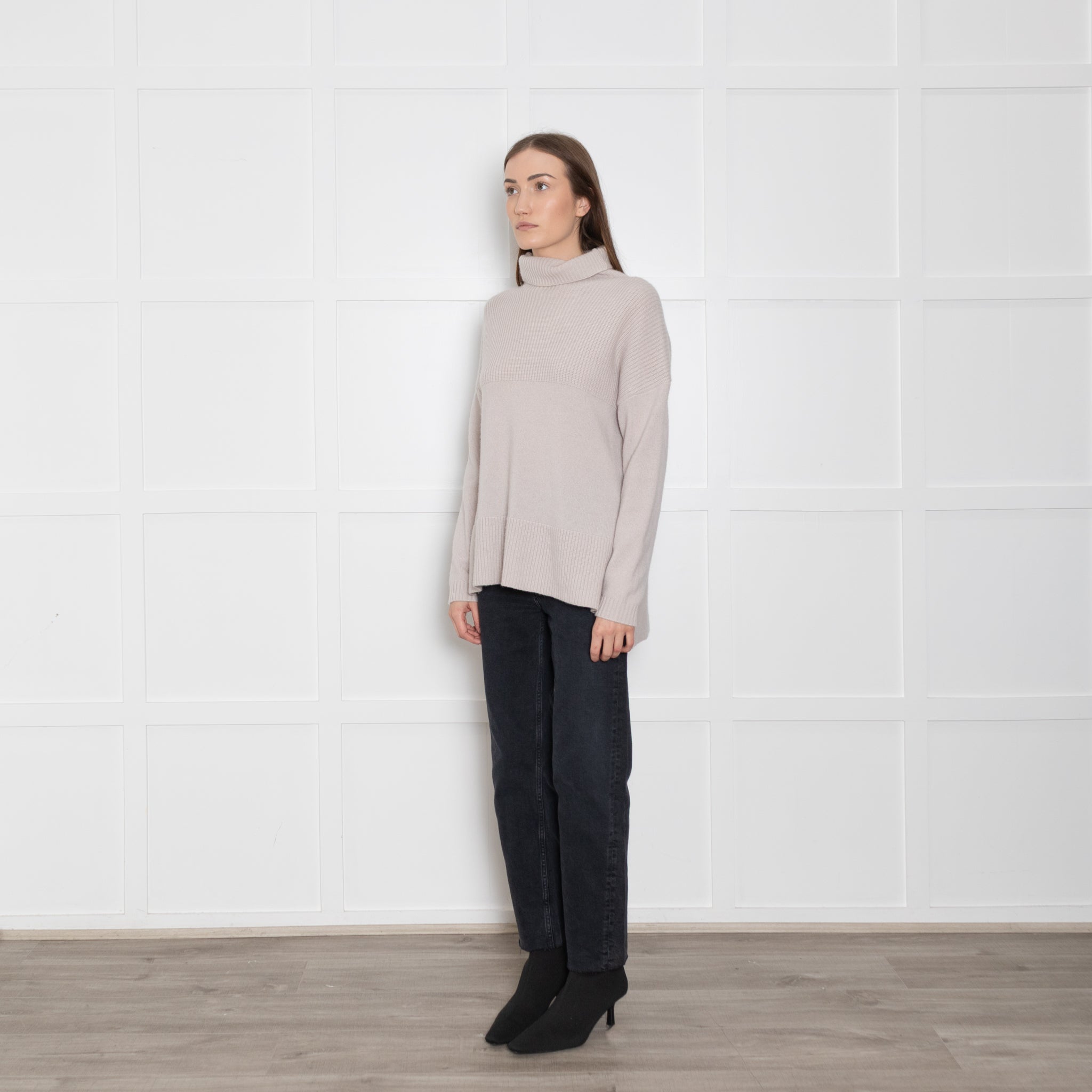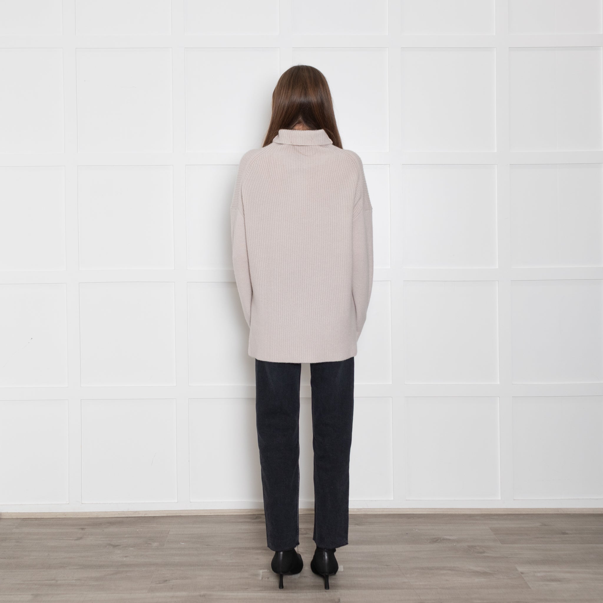 Van Kukil long sleeve beige jumper, crafted with a soft cashmere fabric, featuring a polo neckline and pleated design.