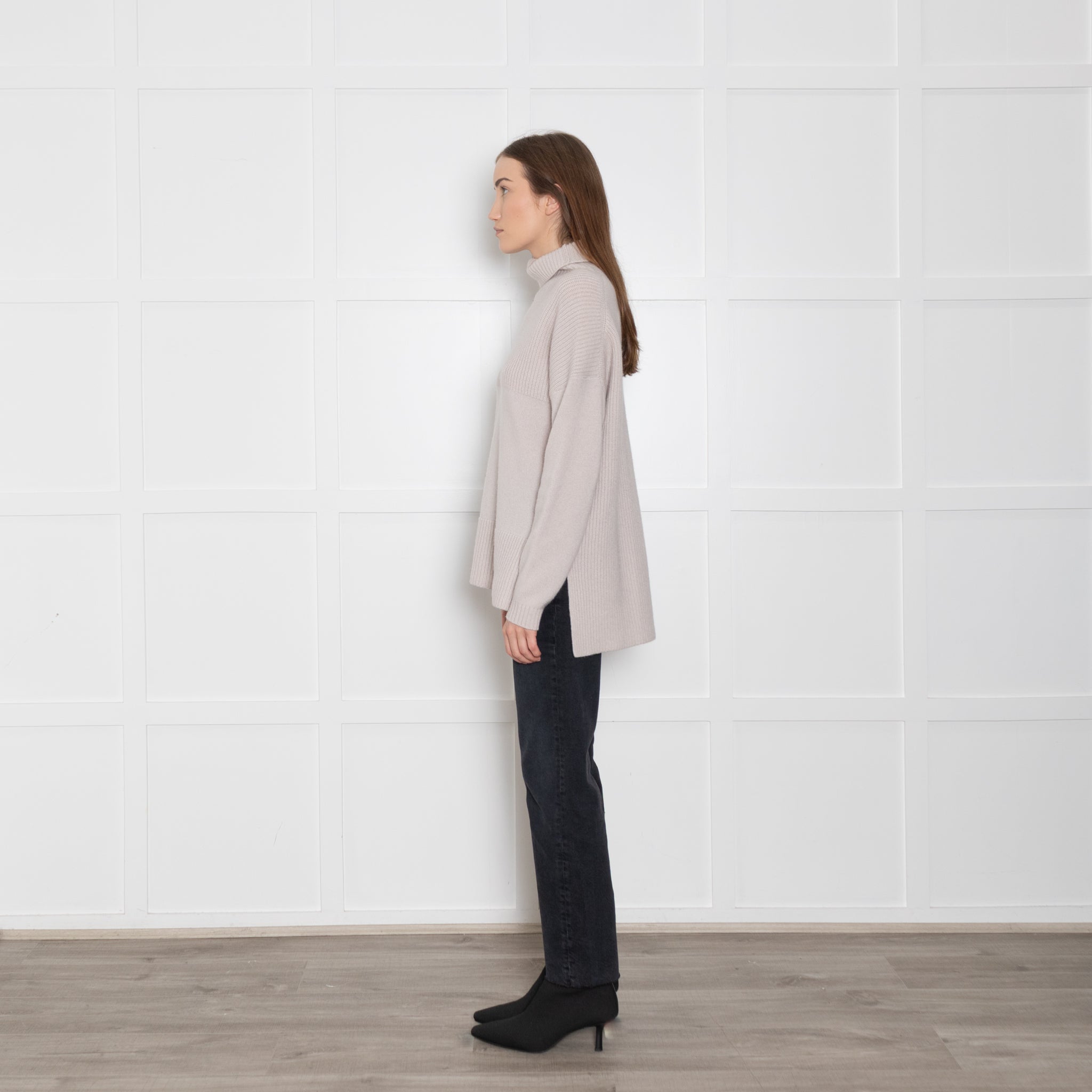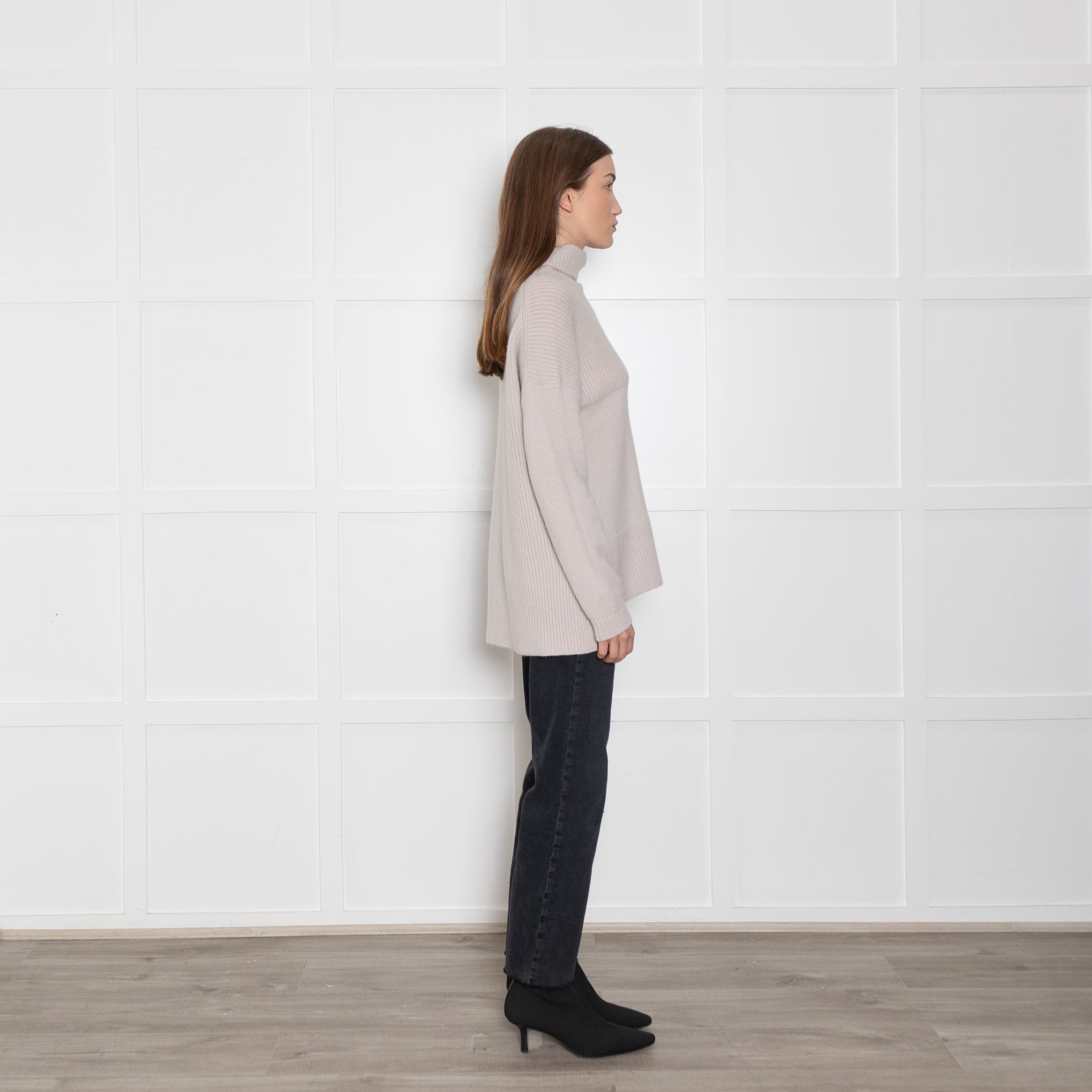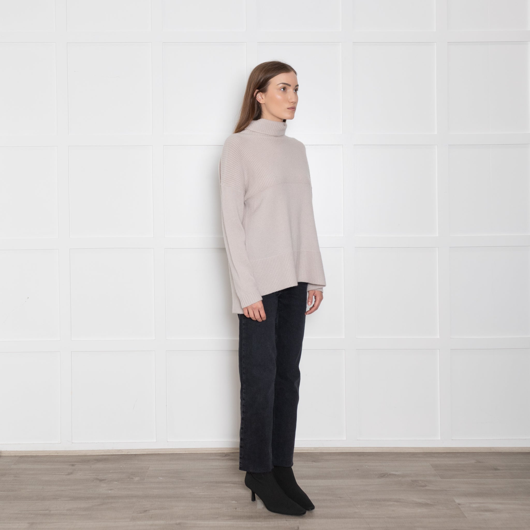 Van Kukil long sleeve beige jumper, crafted with a soft cashmere fabric, featuring a polo neckline and pleated design.
