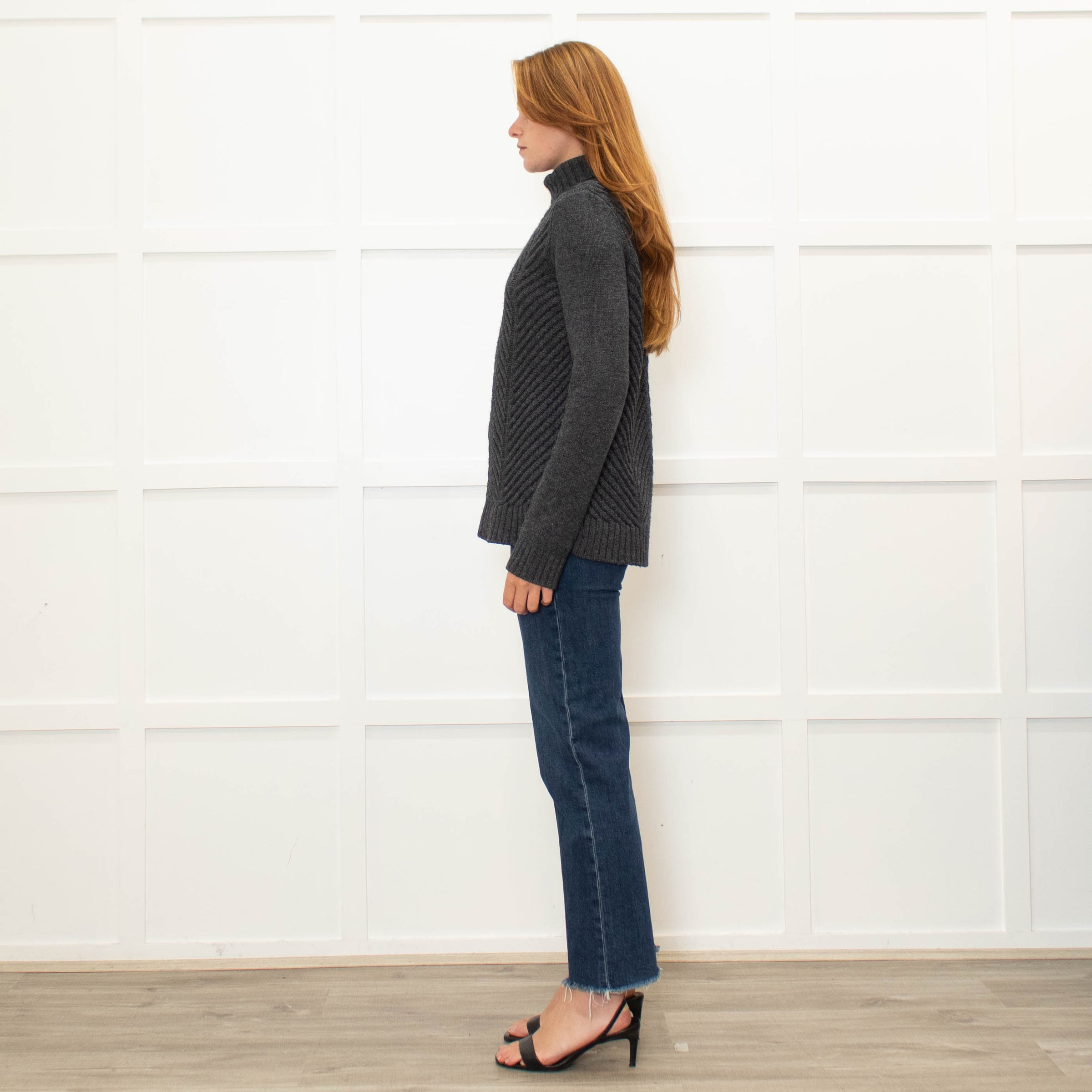 Vince grey ribbed wool blend roll-neck with ribbed trims.
