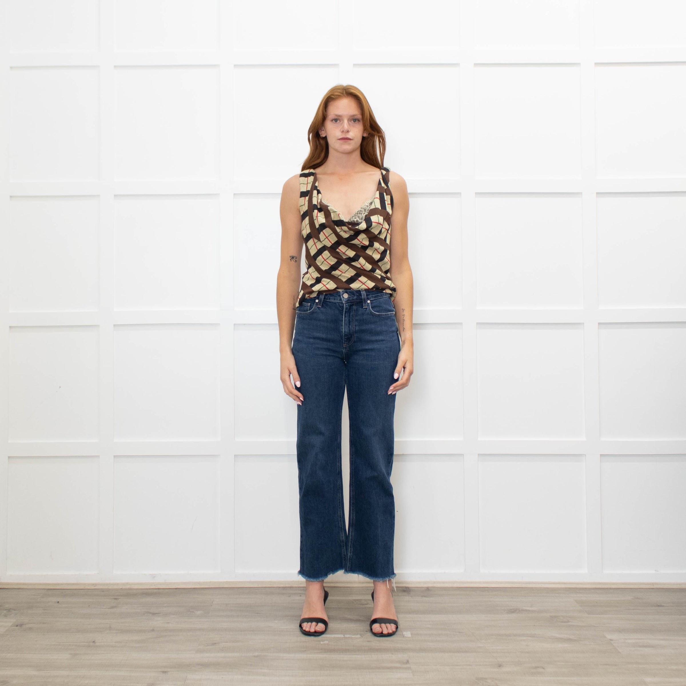 Vivienne Westwood Tattersall piquet brown check top. Sleeveless with a cowl neck and fitted cut.