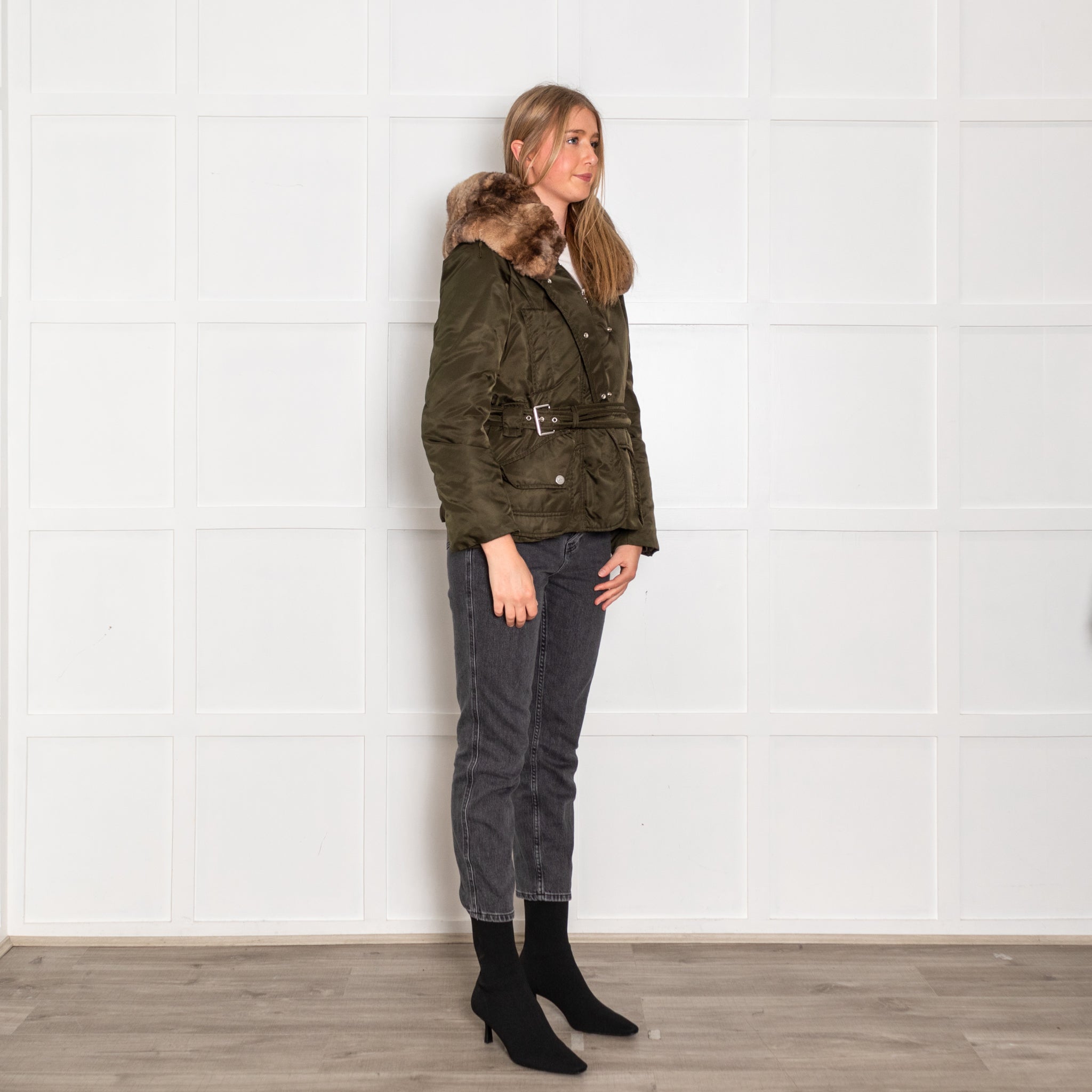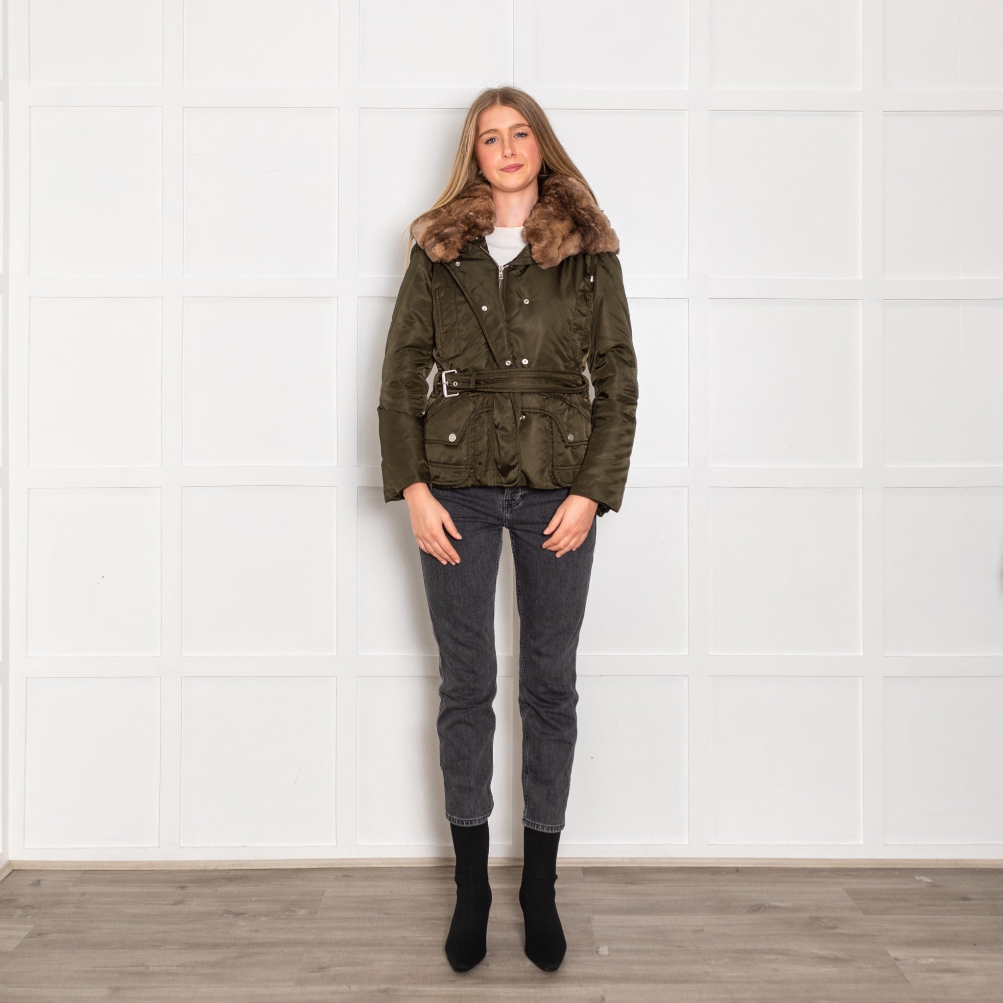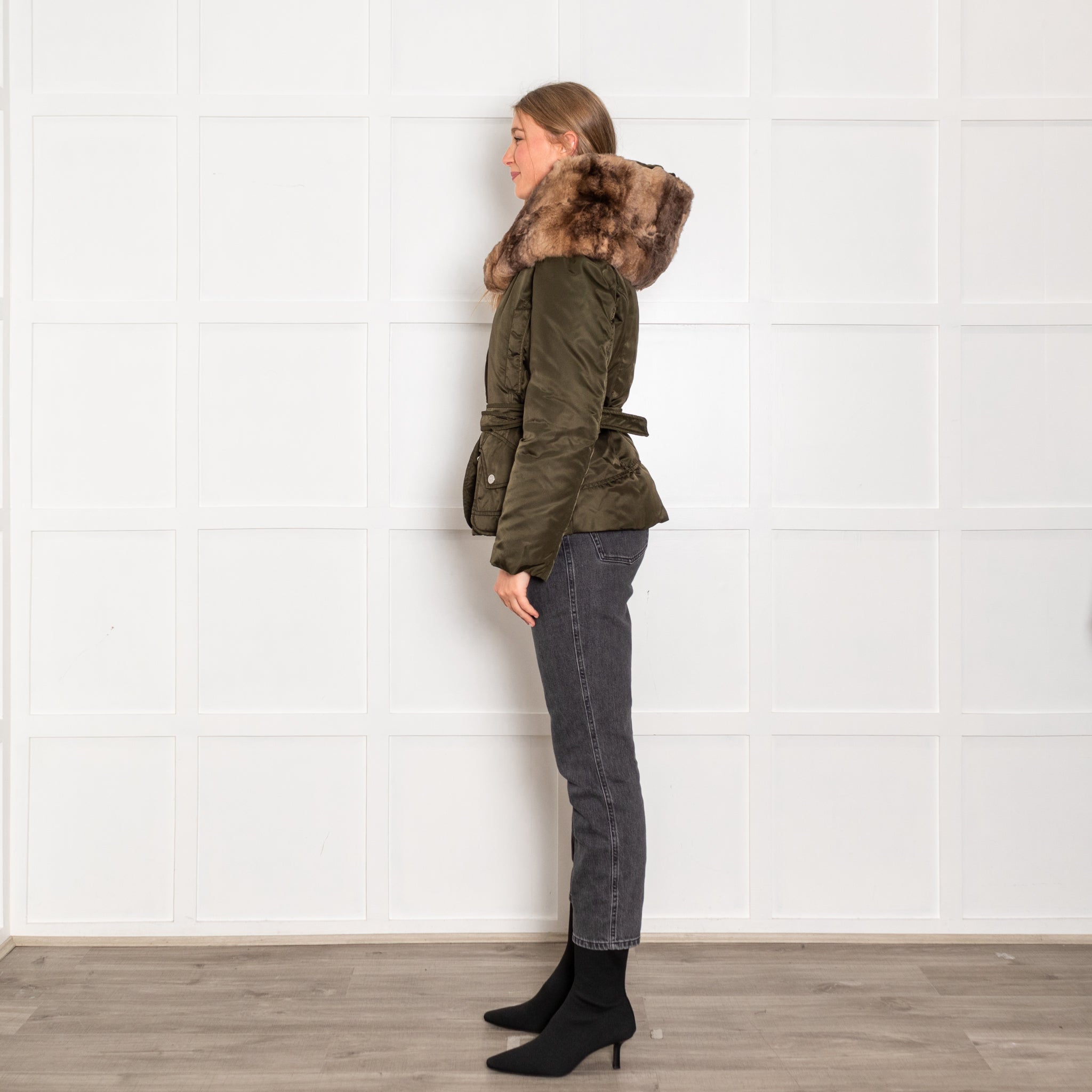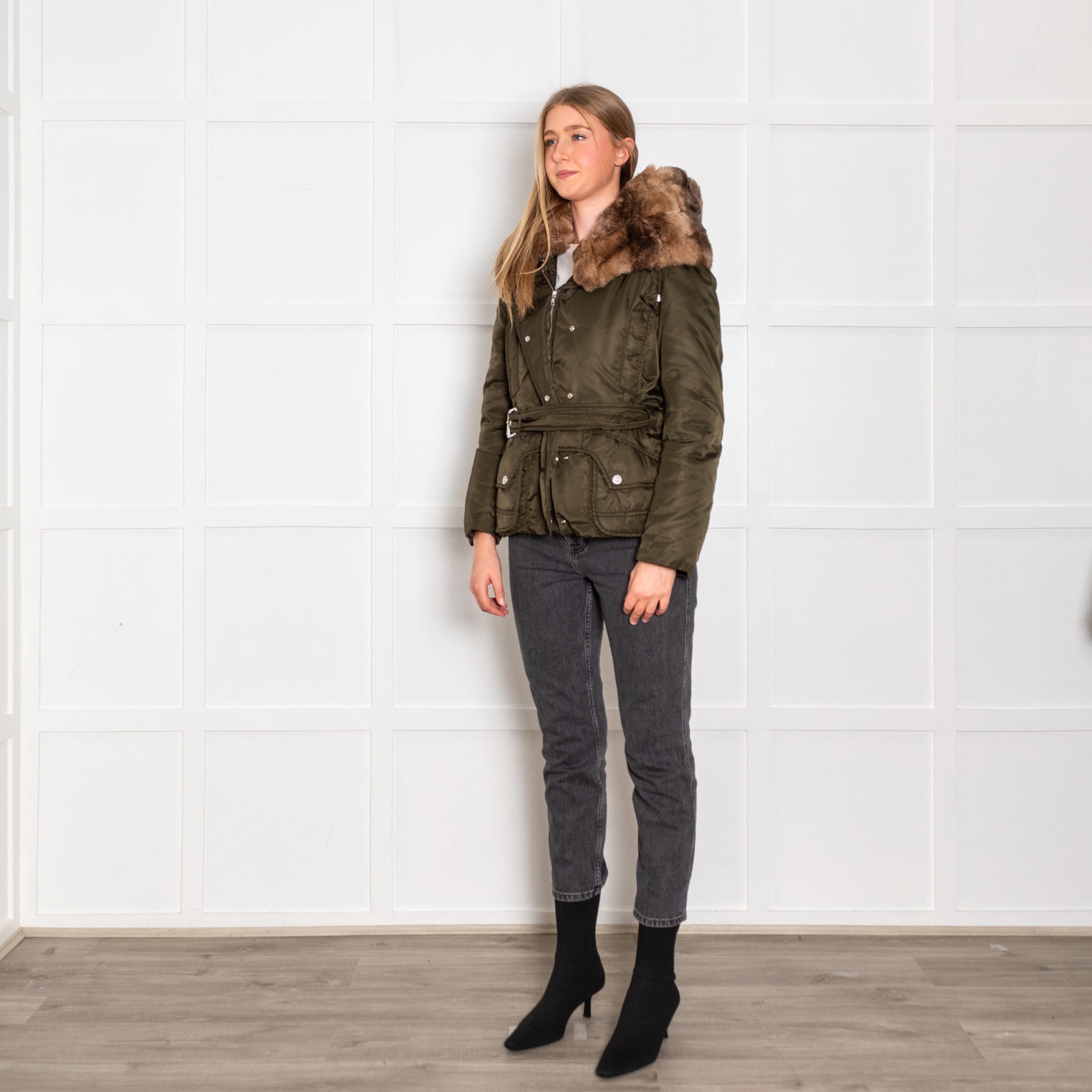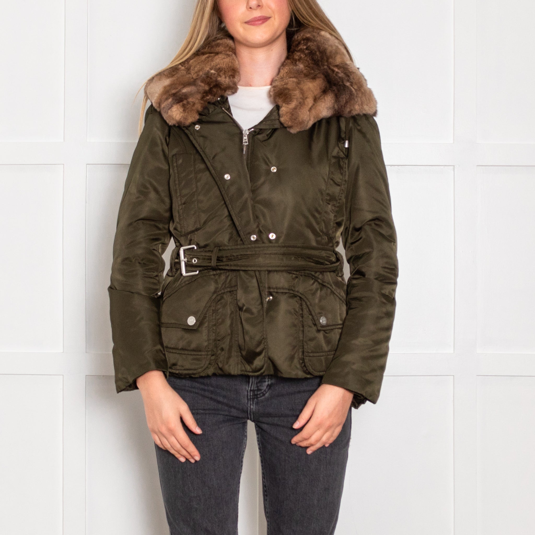 Weekend Max Mara Green Fur Trim Padded Short Jacket