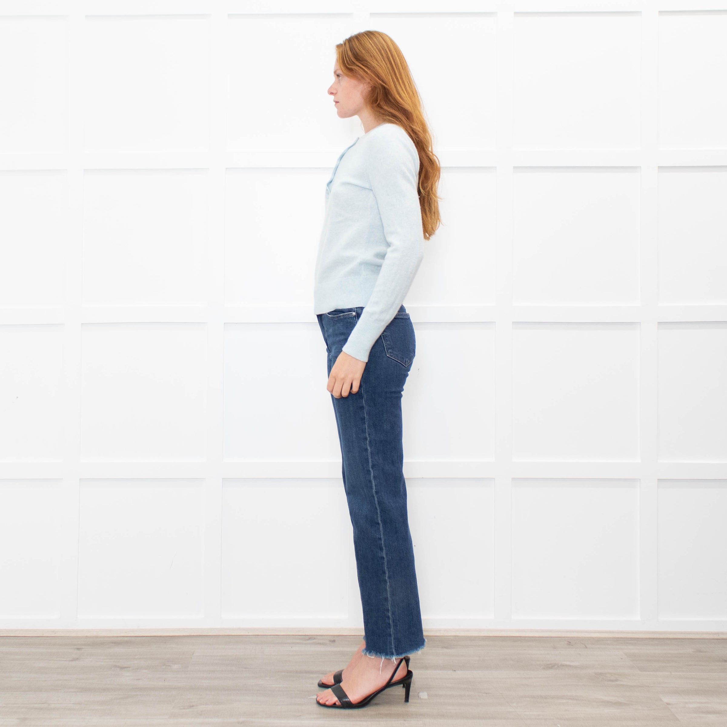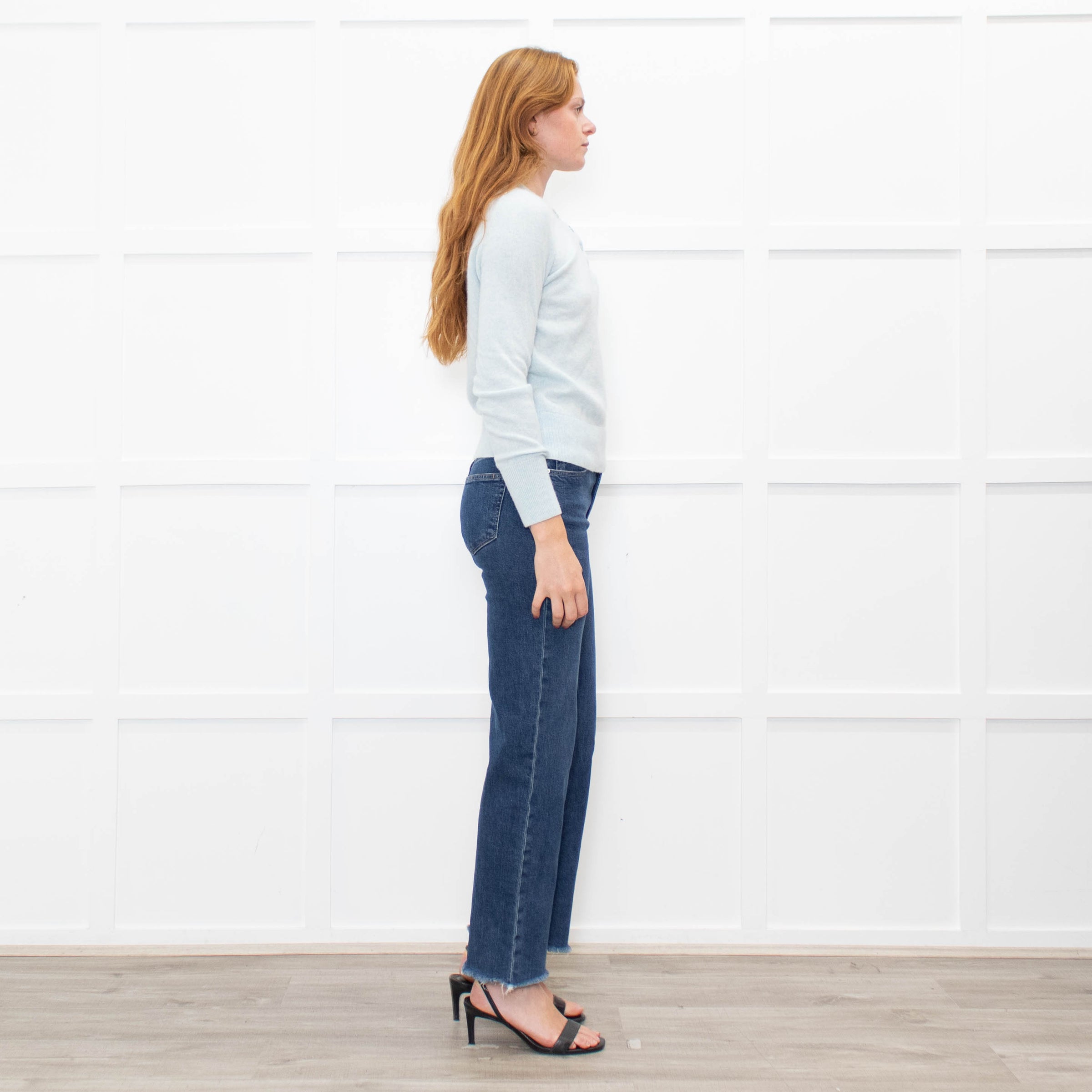 White + Warren Pastel Blue Cashmere Button V Neck Jumper