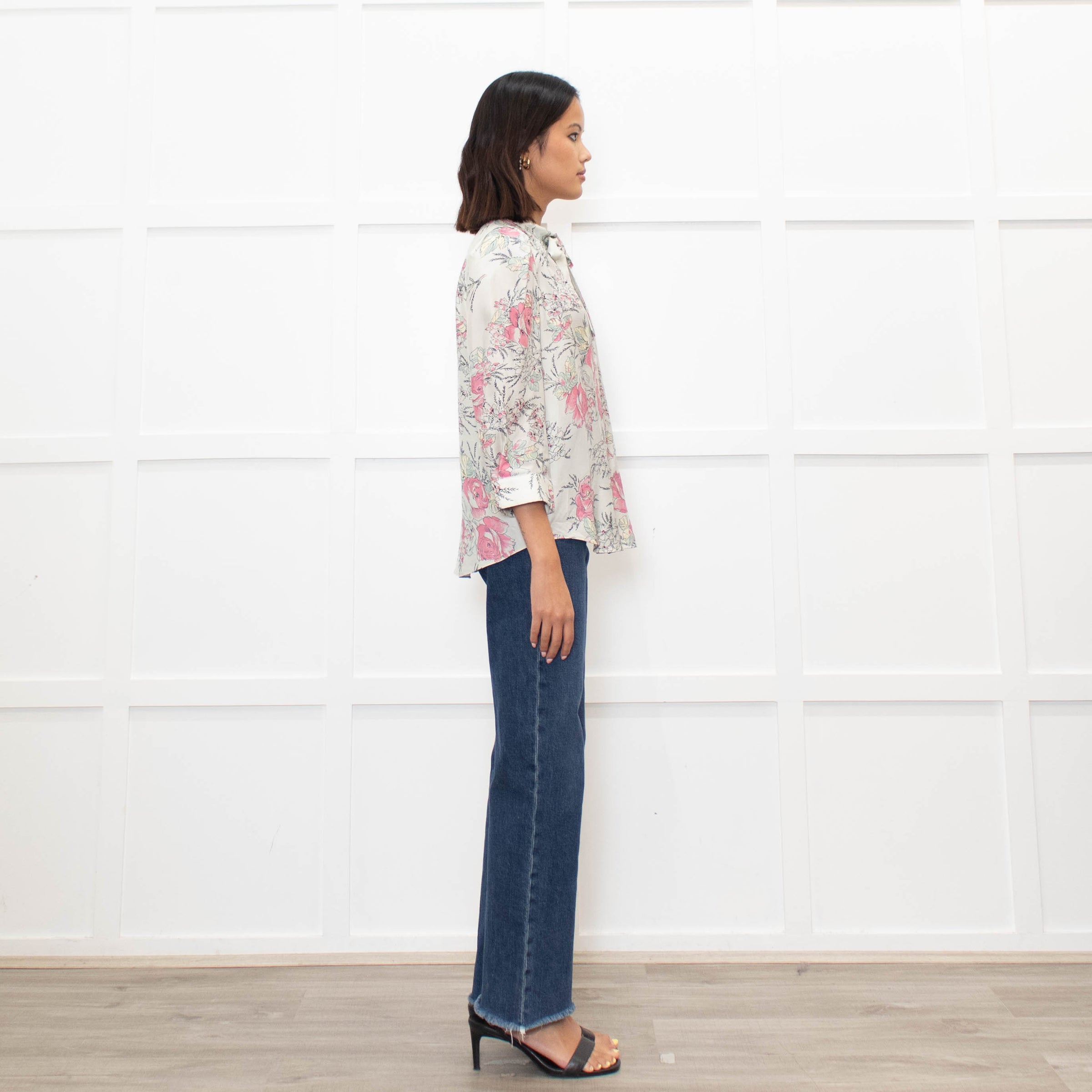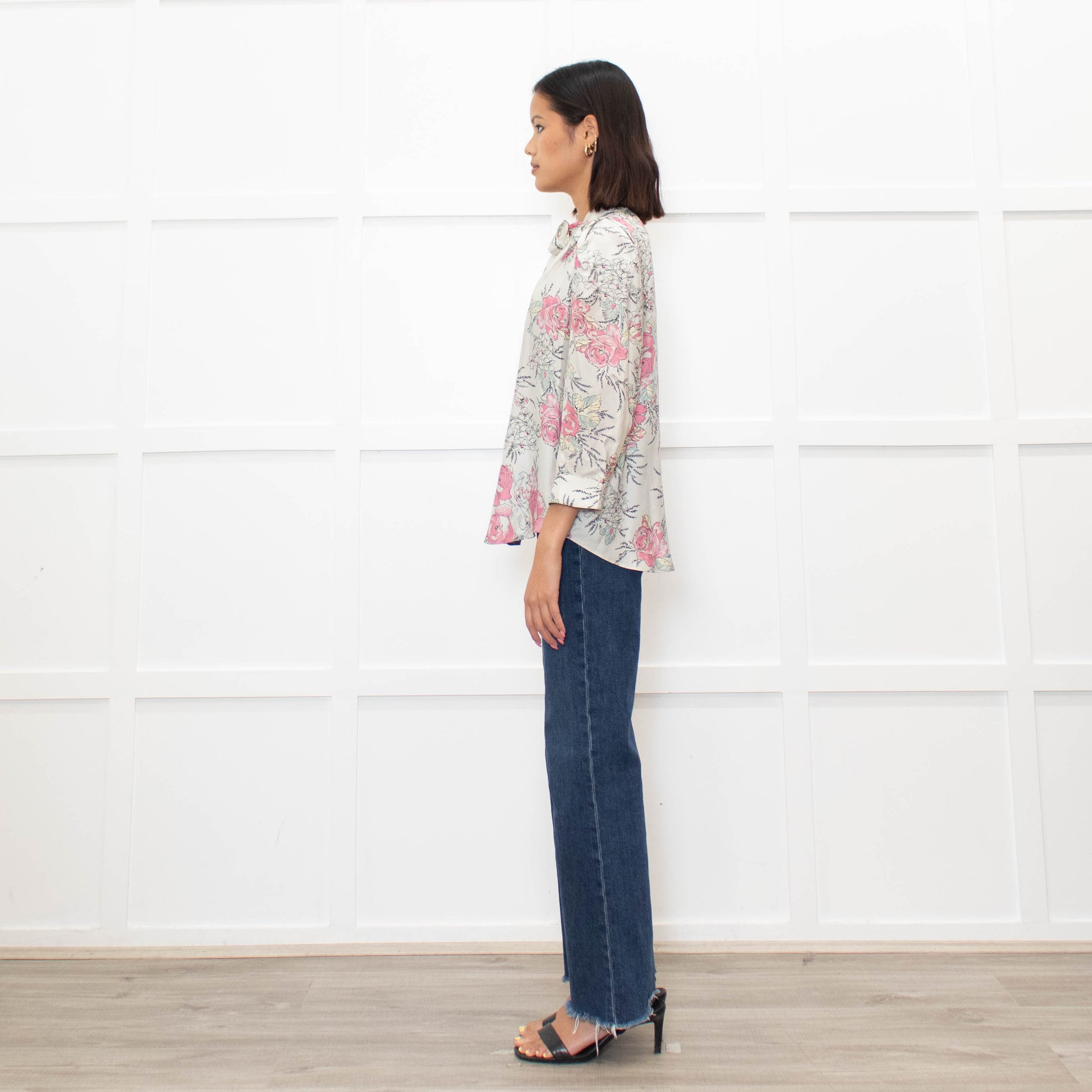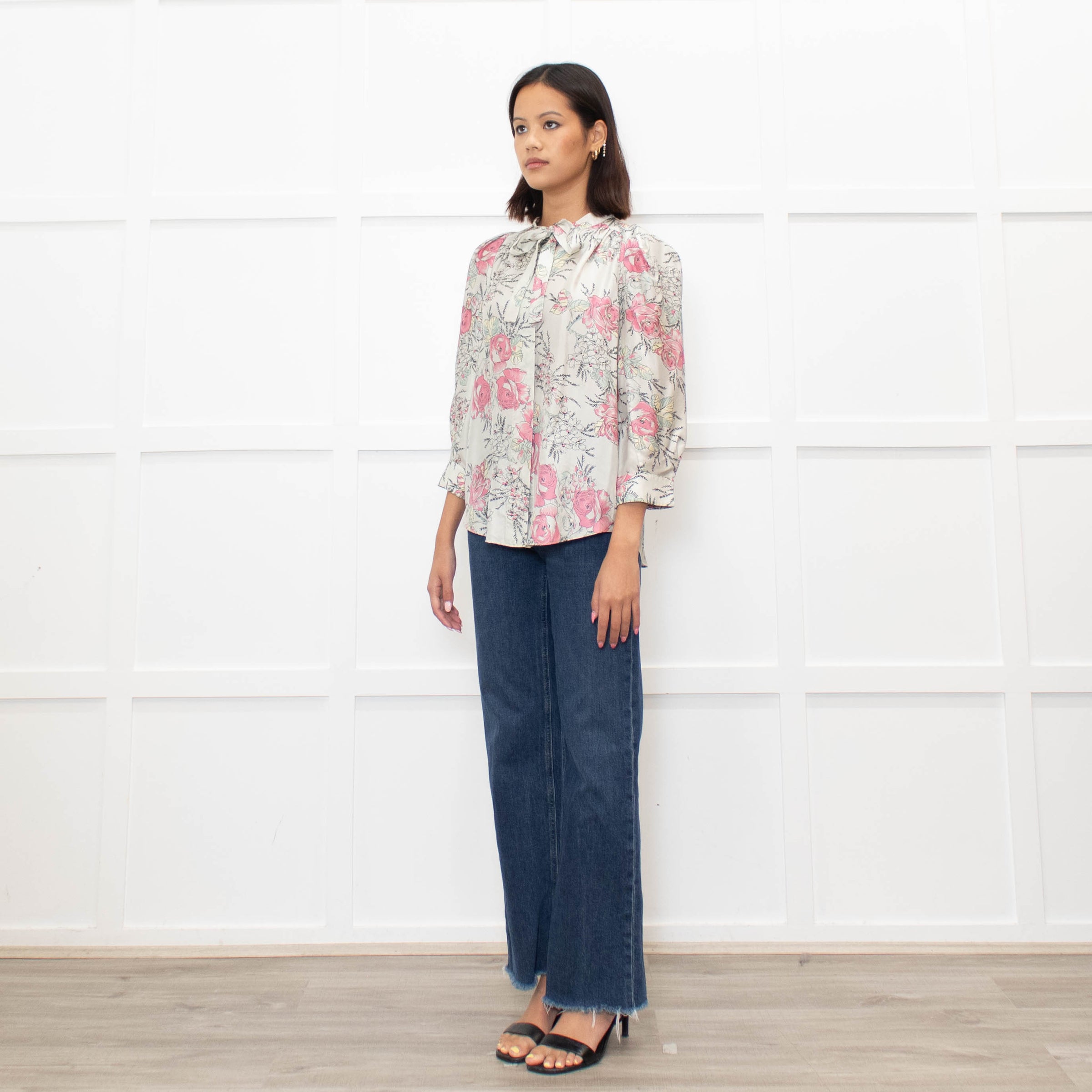 Zadig & Voltaire Pale Green and Pink Floral Tie Neck Blouse