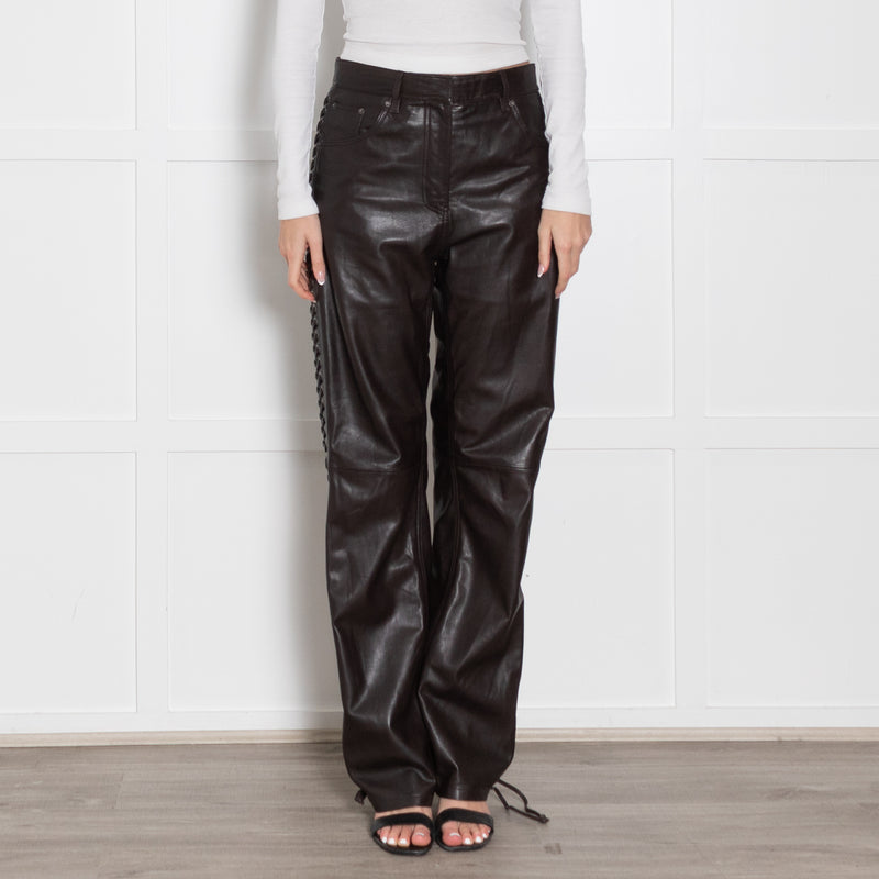 Rotate Brown Leather Eyelet Detail Trousers