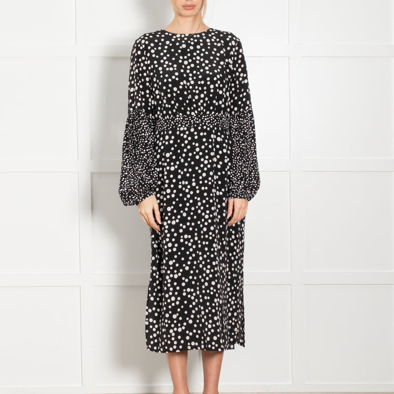 Rixo Pale Blue White Floral Puff Sleeve Midi Dress
