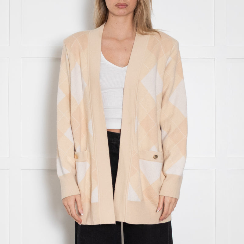 Sandro Pale Peach Argyle Wool And Cashmere Open Cardigan