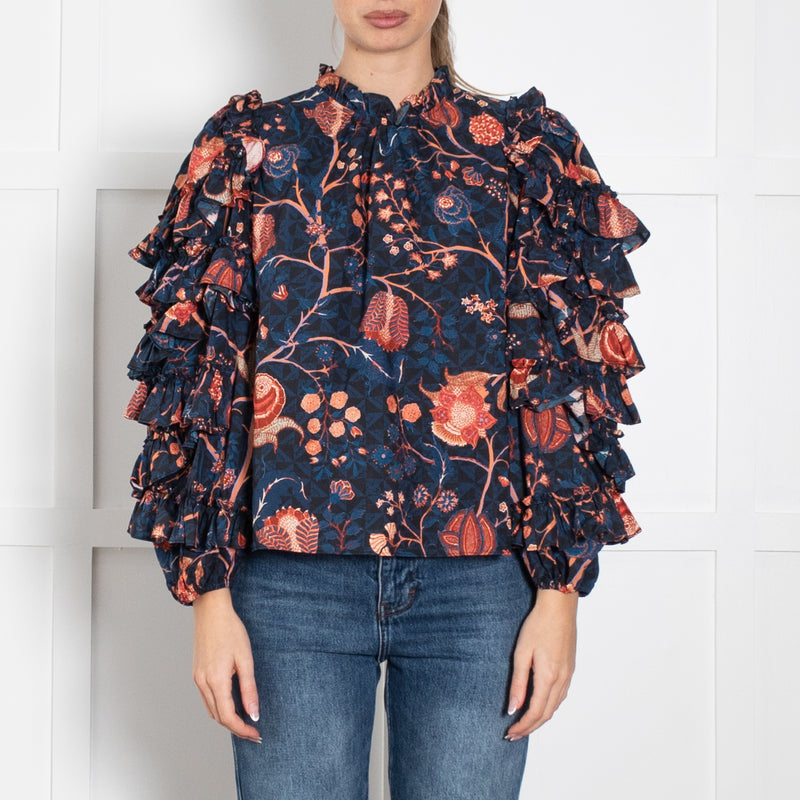 Ulla Johnson Pippa Navy Blouse Orange Floral