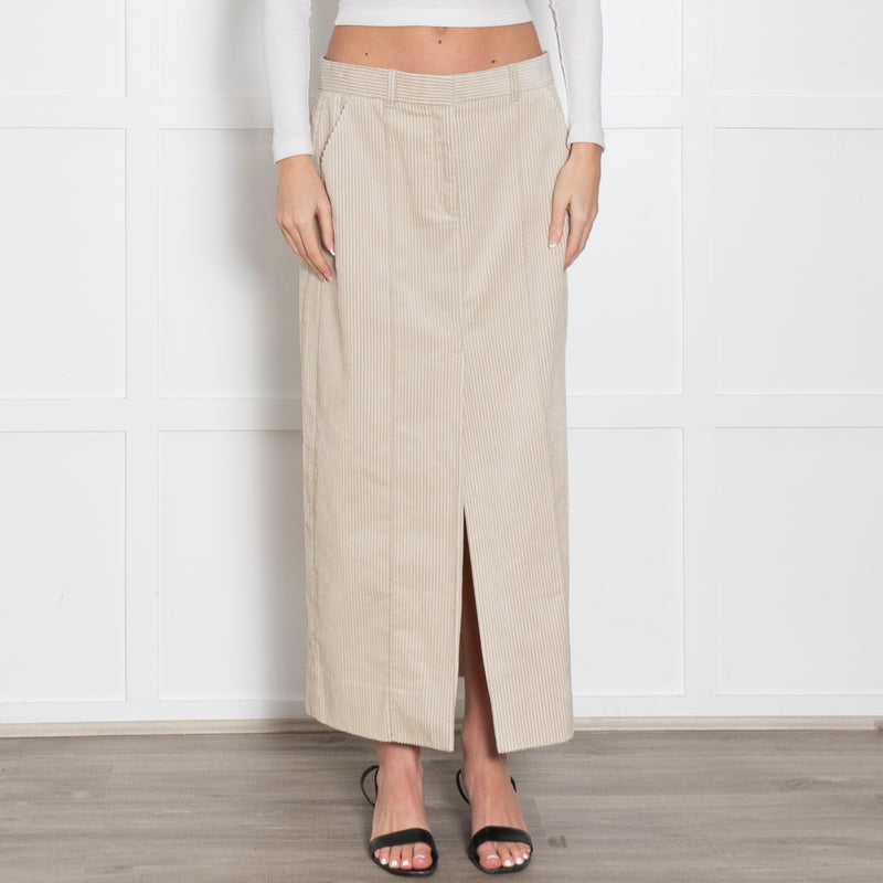 Me + Em Cream Corduroy Front Slit Long Skirt