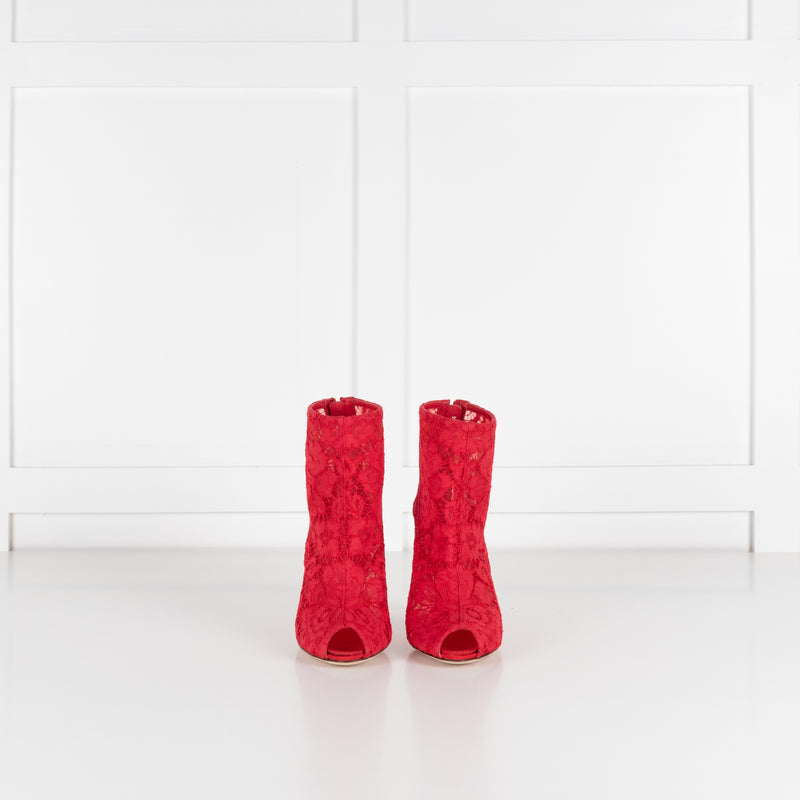 Dolce & Gabbana Red Lace Peep Toe Heeled Booties
