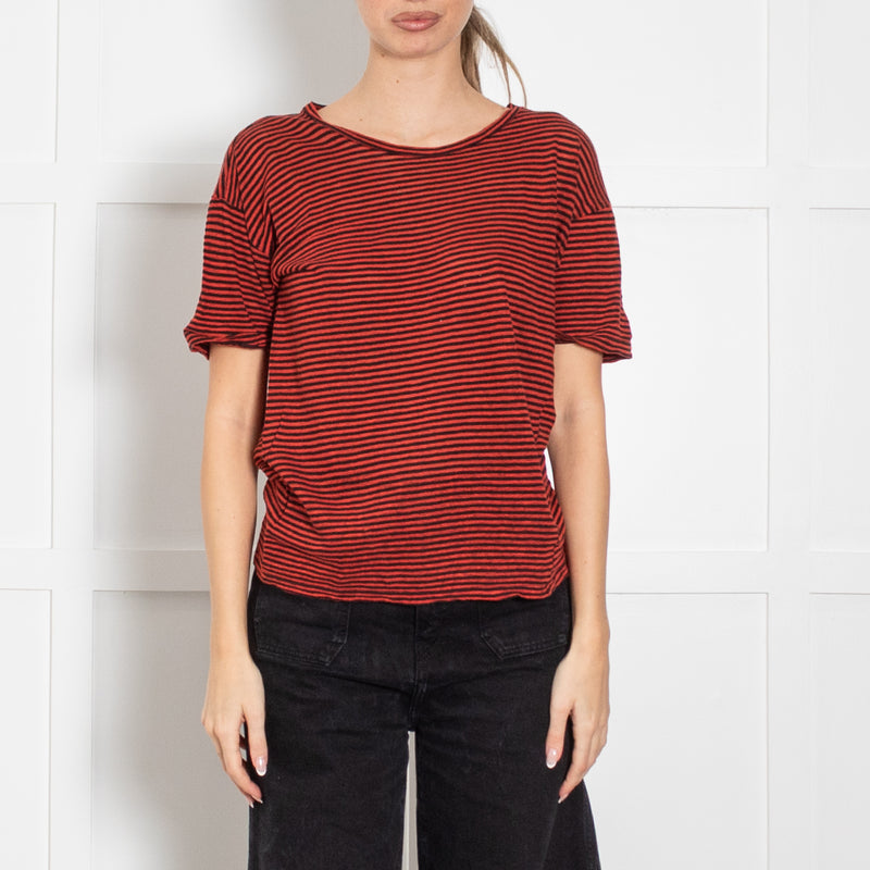 Isabel Marant Etoile Red & Black Striped Short Sleeve Top