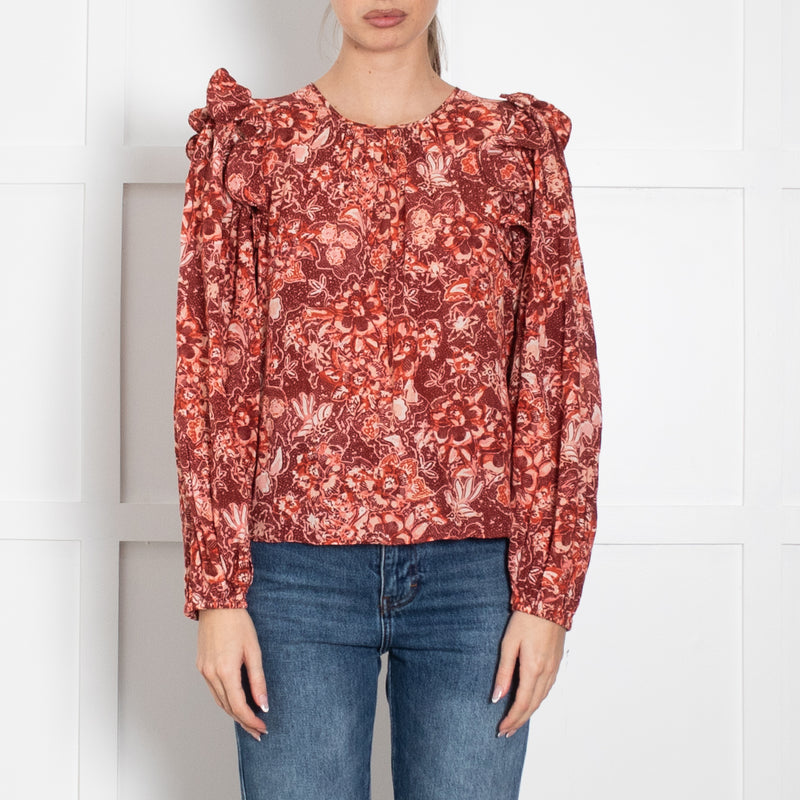 Zadig & Voltaire Red and Navy Floral Long Sleeve Blouse
