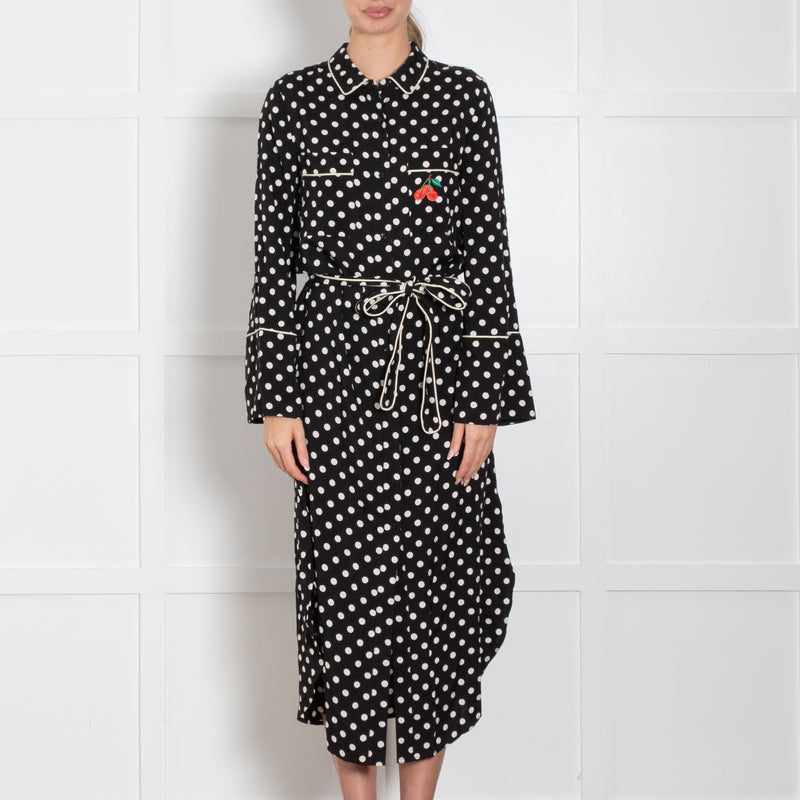 Essentiel Antwerp Black & White Spotted Dress With Cherry Motif & Belt