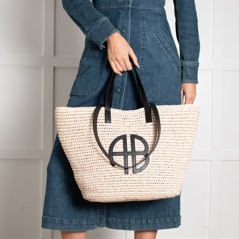 Anine Bing Raffia Palermo Tote with AB Logo