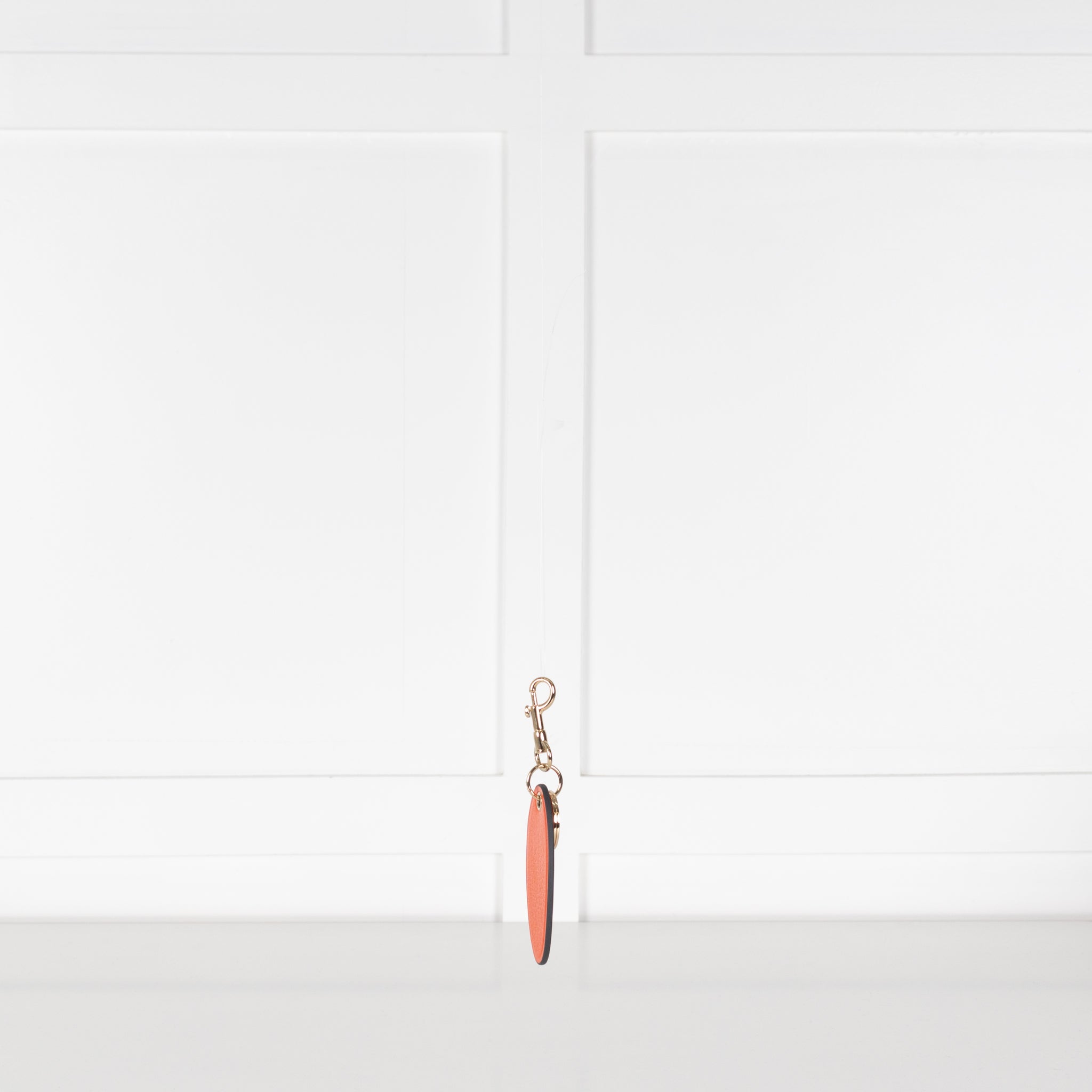 Anya Hindmarch orange medium keyring, finely crafted from capra leather and fitted with gold-tone hardware. Featuring a gorgoues long oval-shaped deisgn.