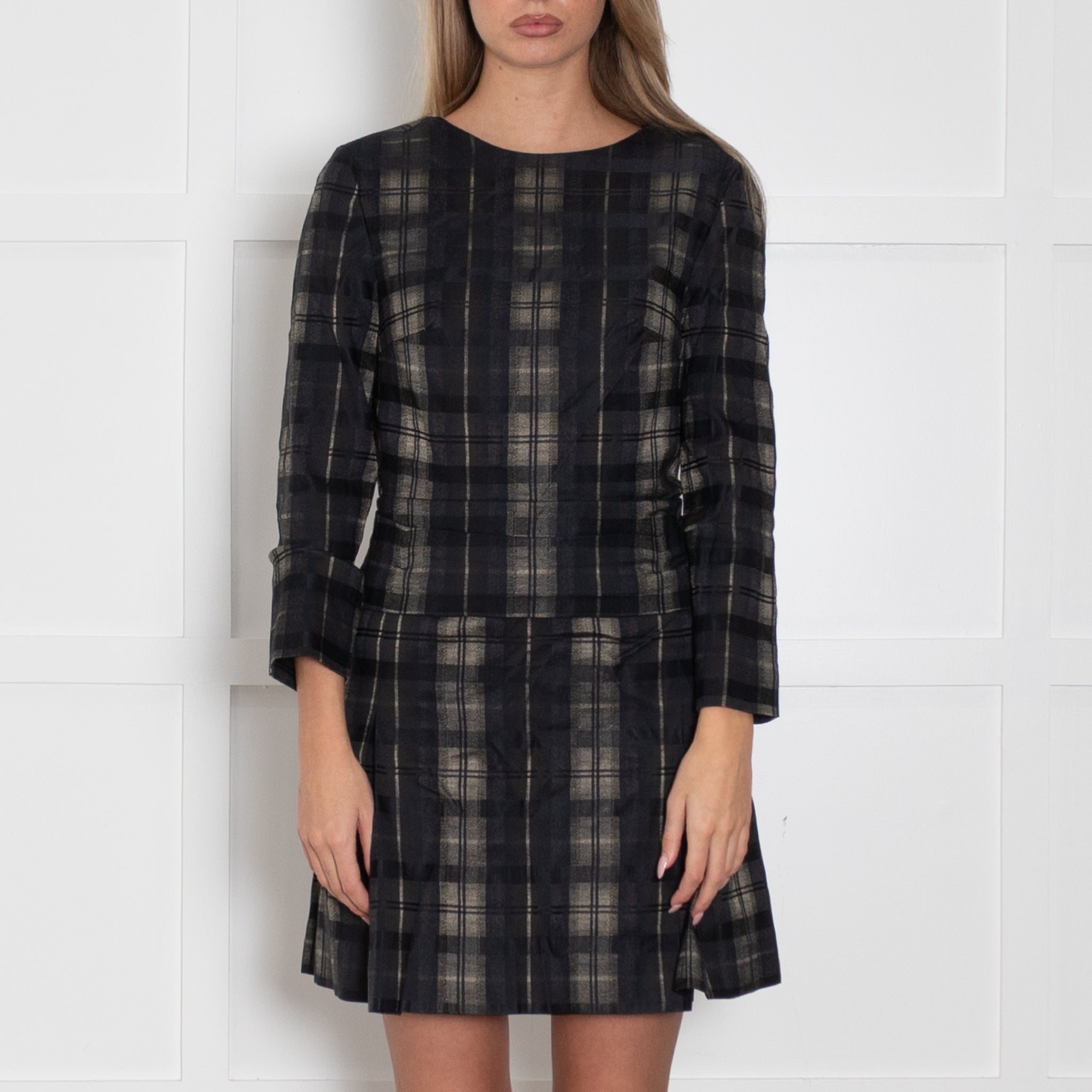 Chloe Black Gold Check Wool+Silk Blend Mini Dress