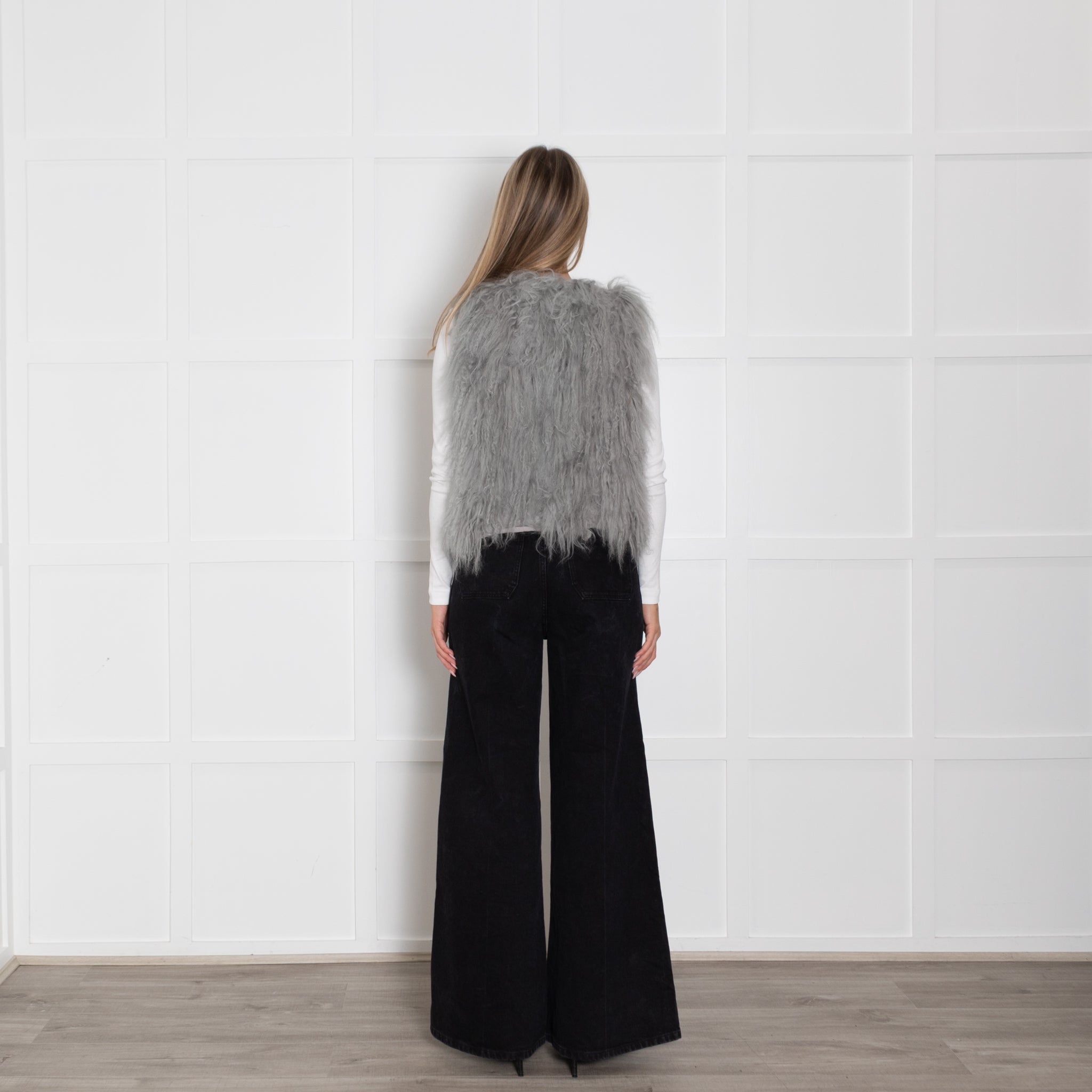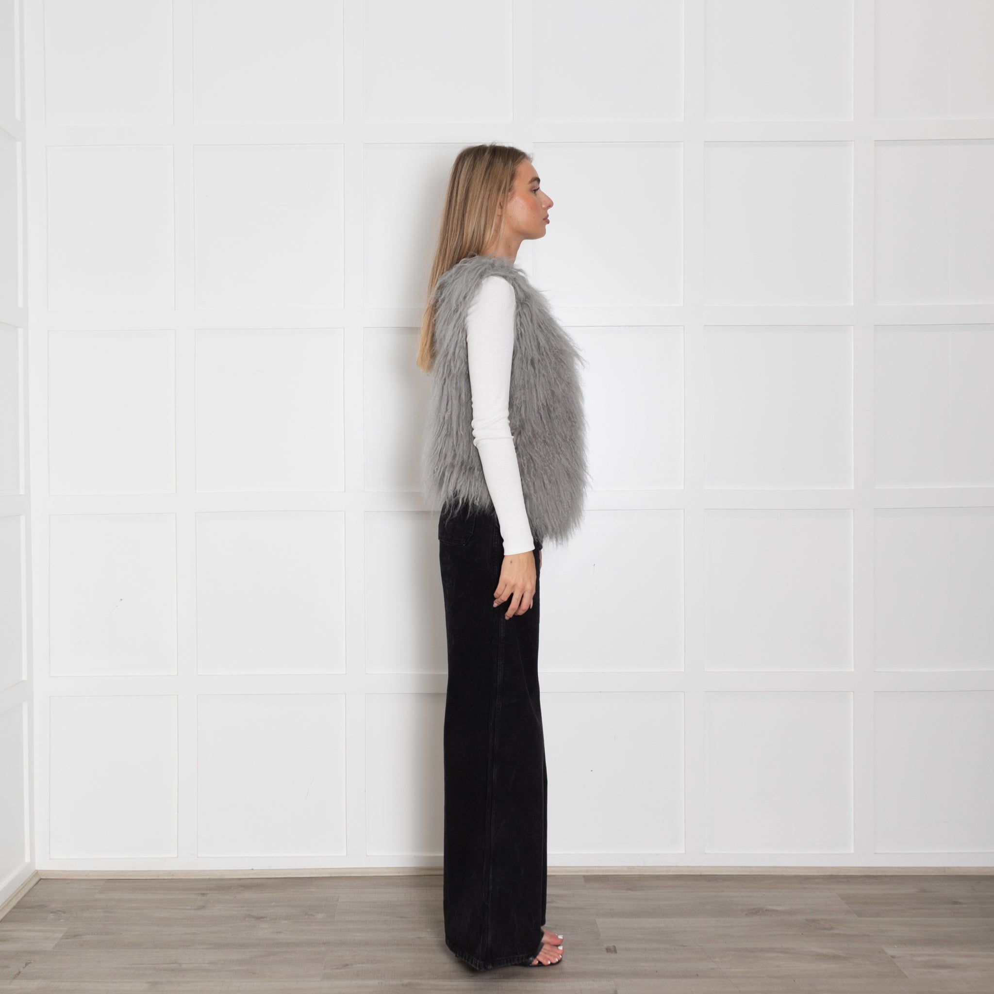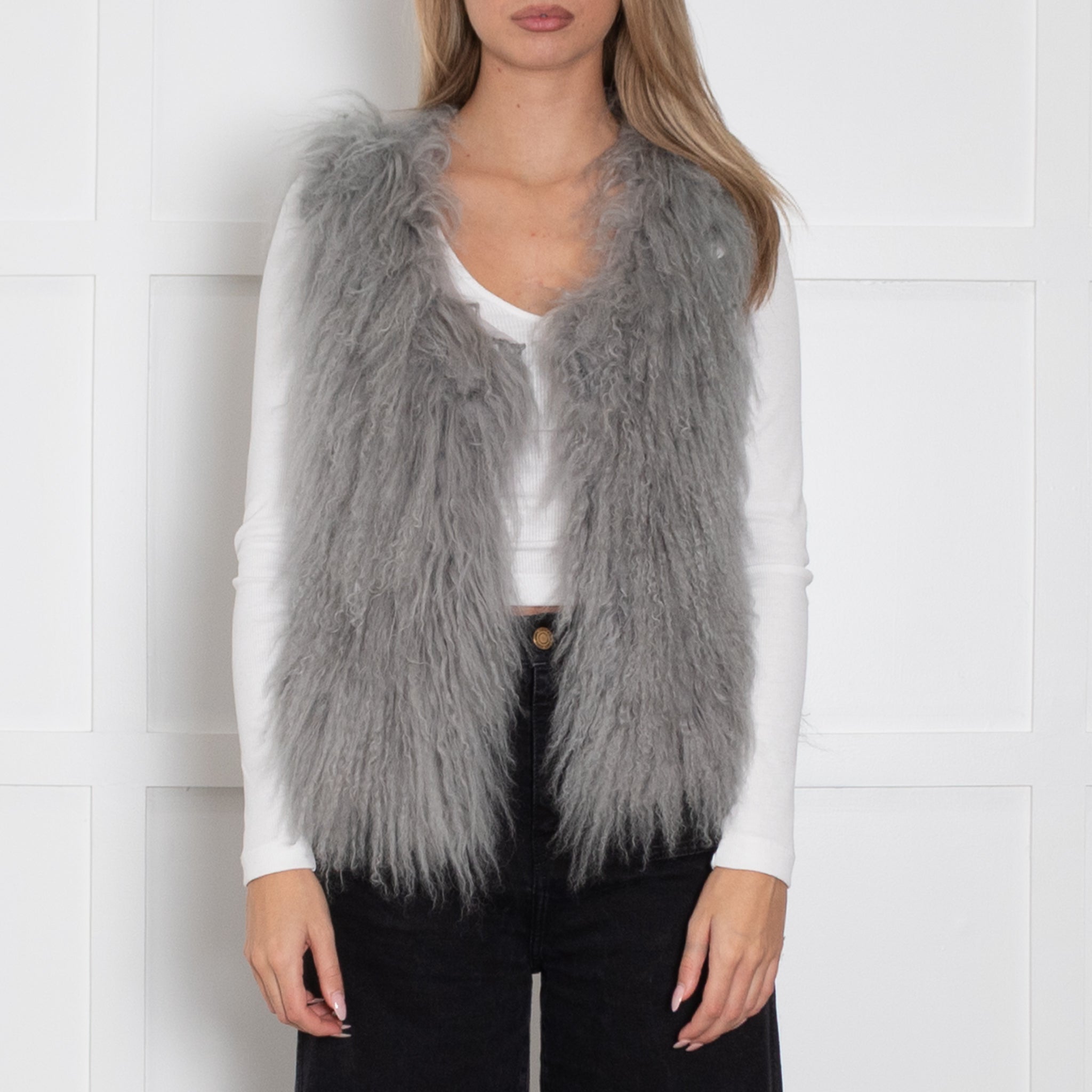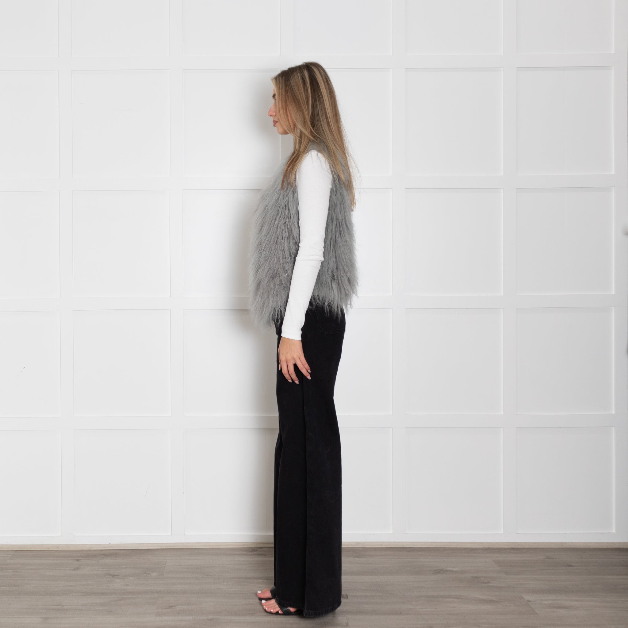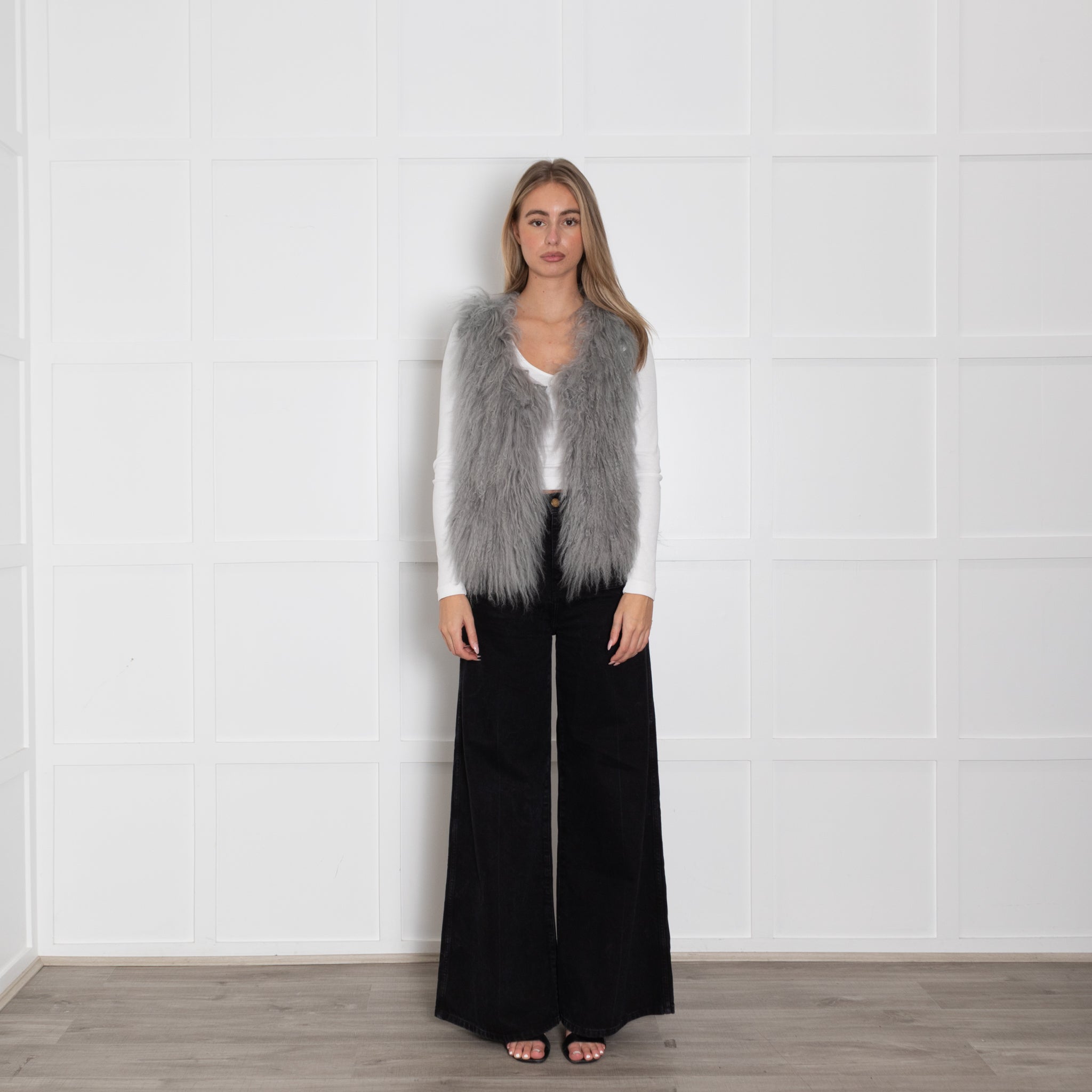 IRO Antea mongolian fur grey gilet with hook and eye closure.