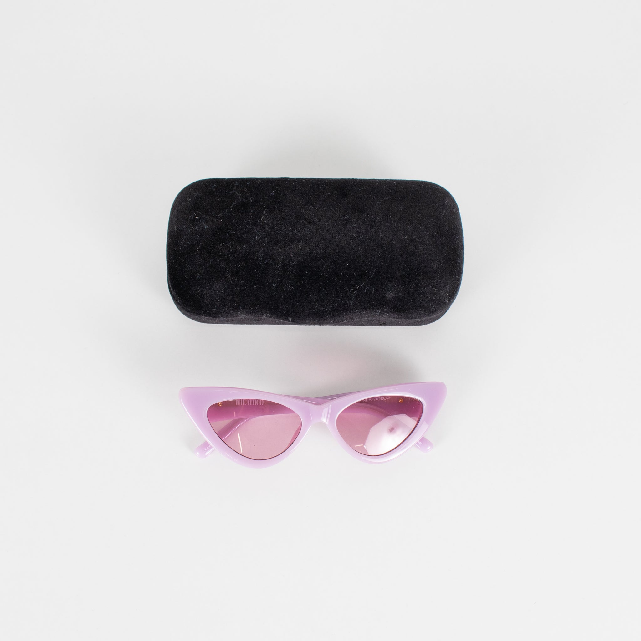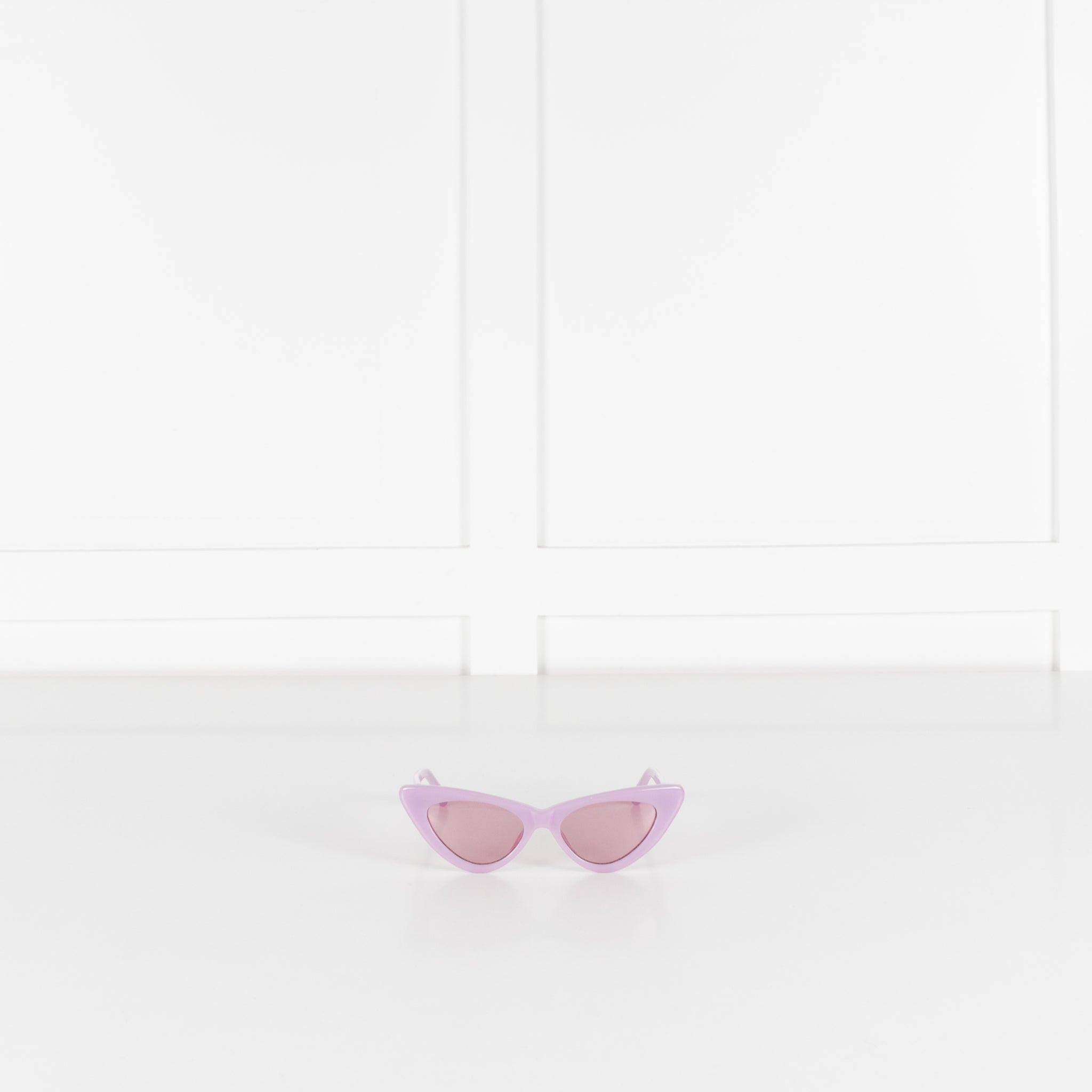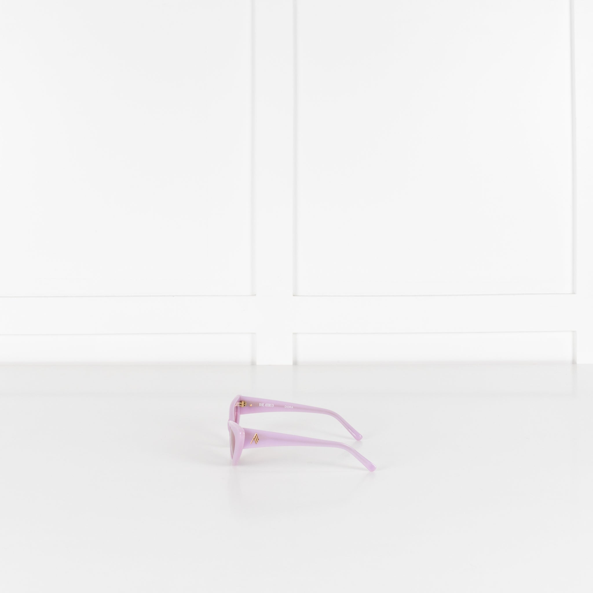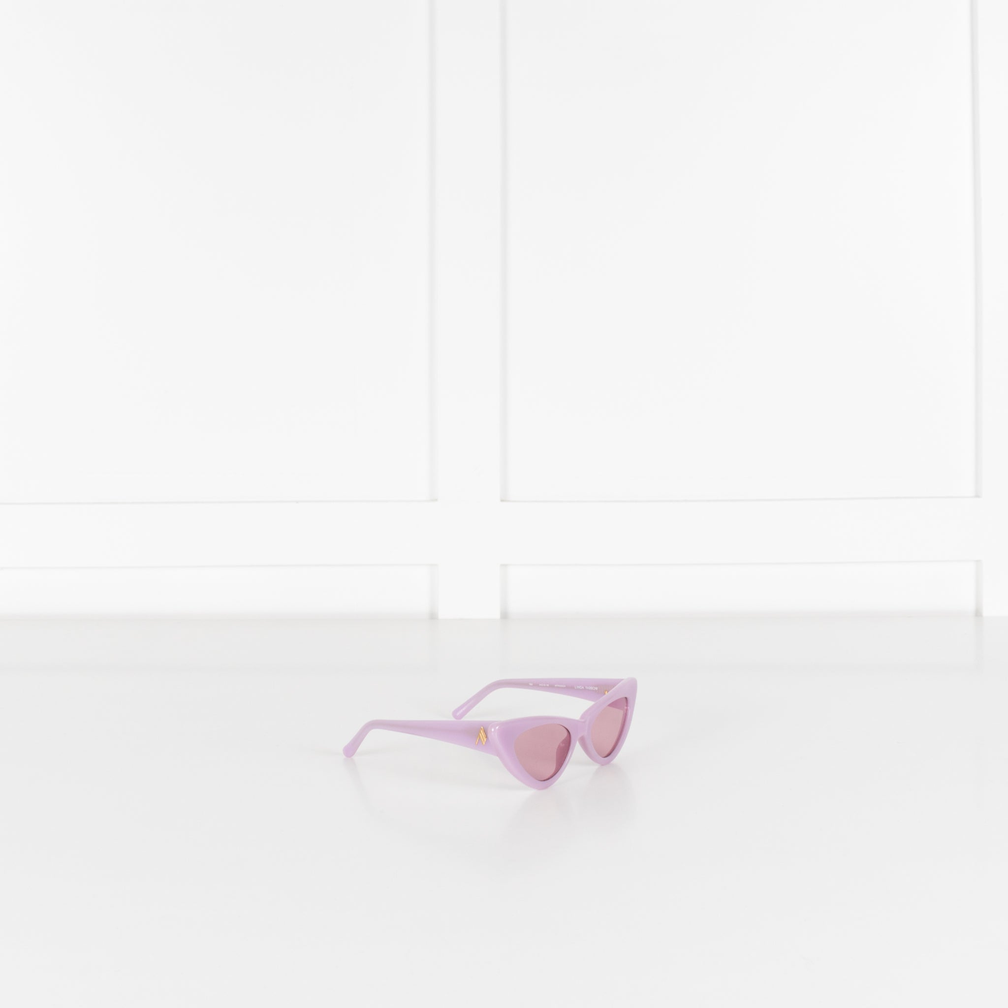 Linda Farrow x The Attico Dora Sunglasses in violet acetate featuring a bold cat-eye silhouette. One size, pre-loved in good condition, complete with the original case.