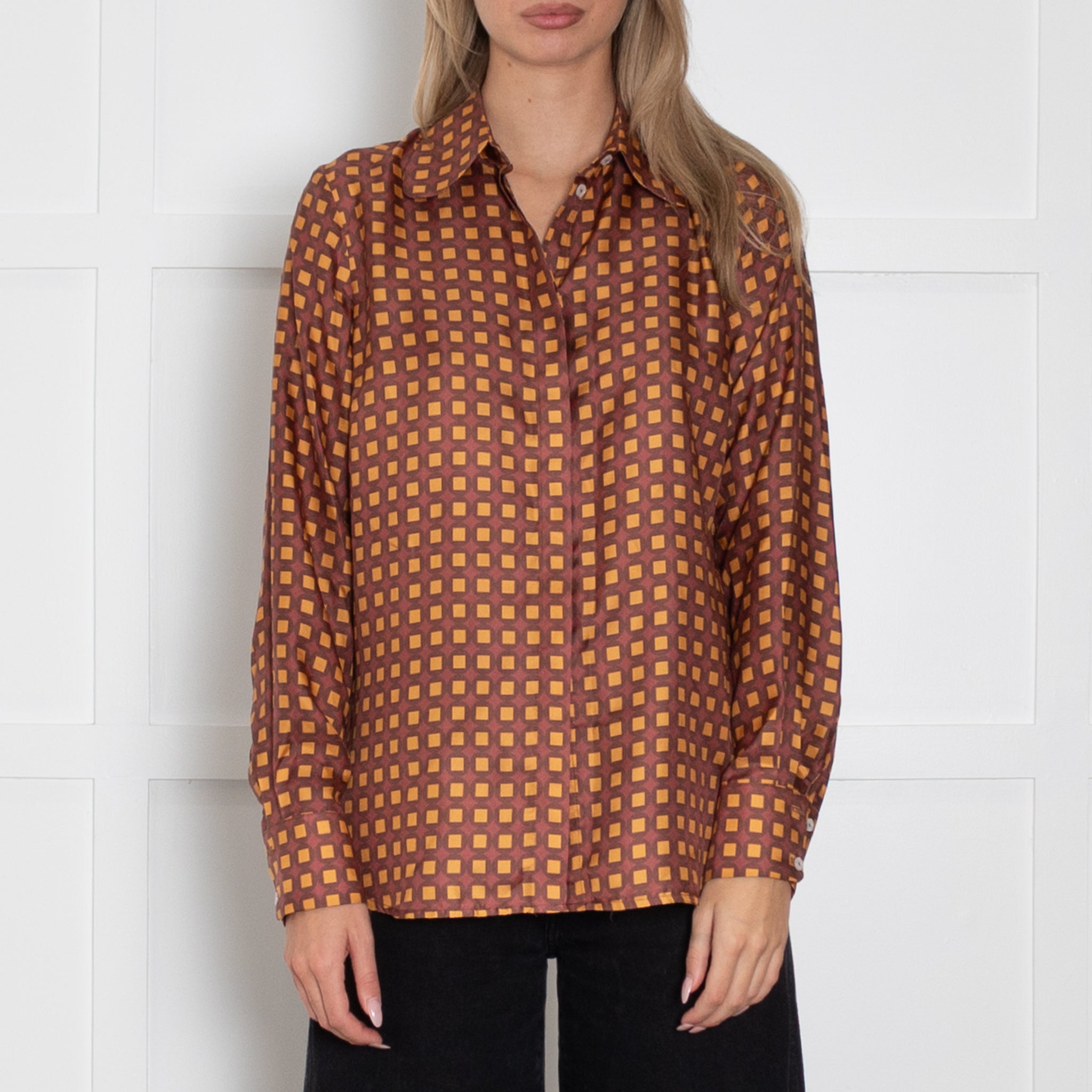 Lisou Burgundy, Yellow Patterned Silk Blouse